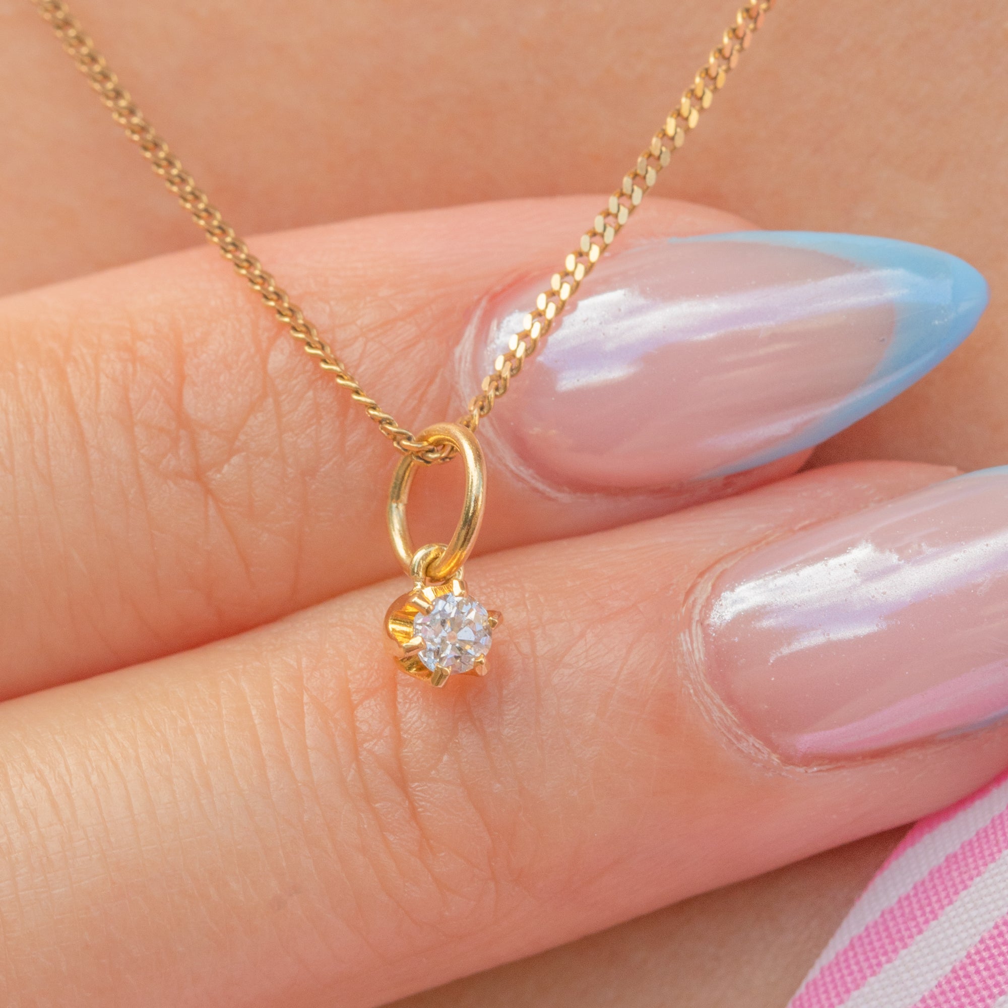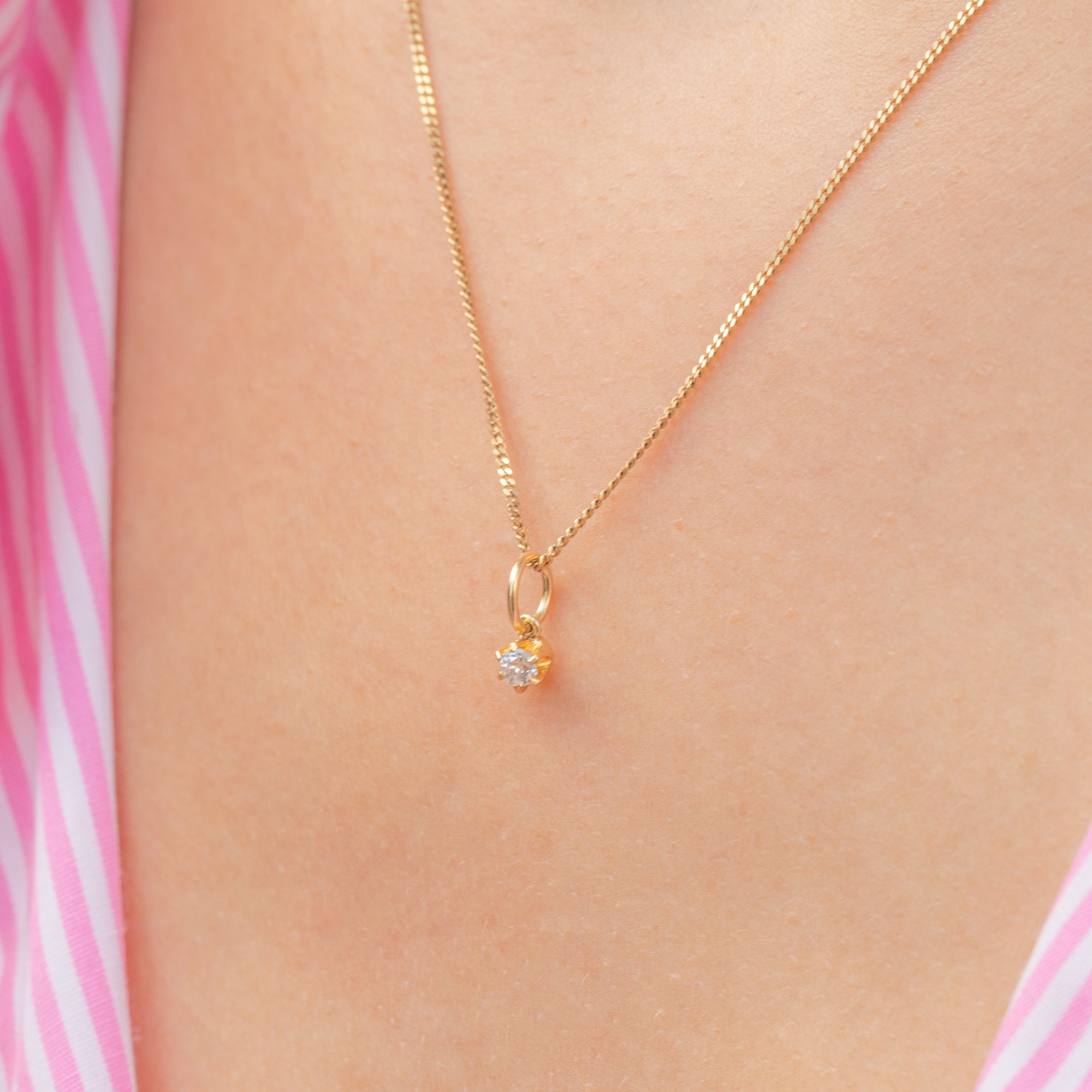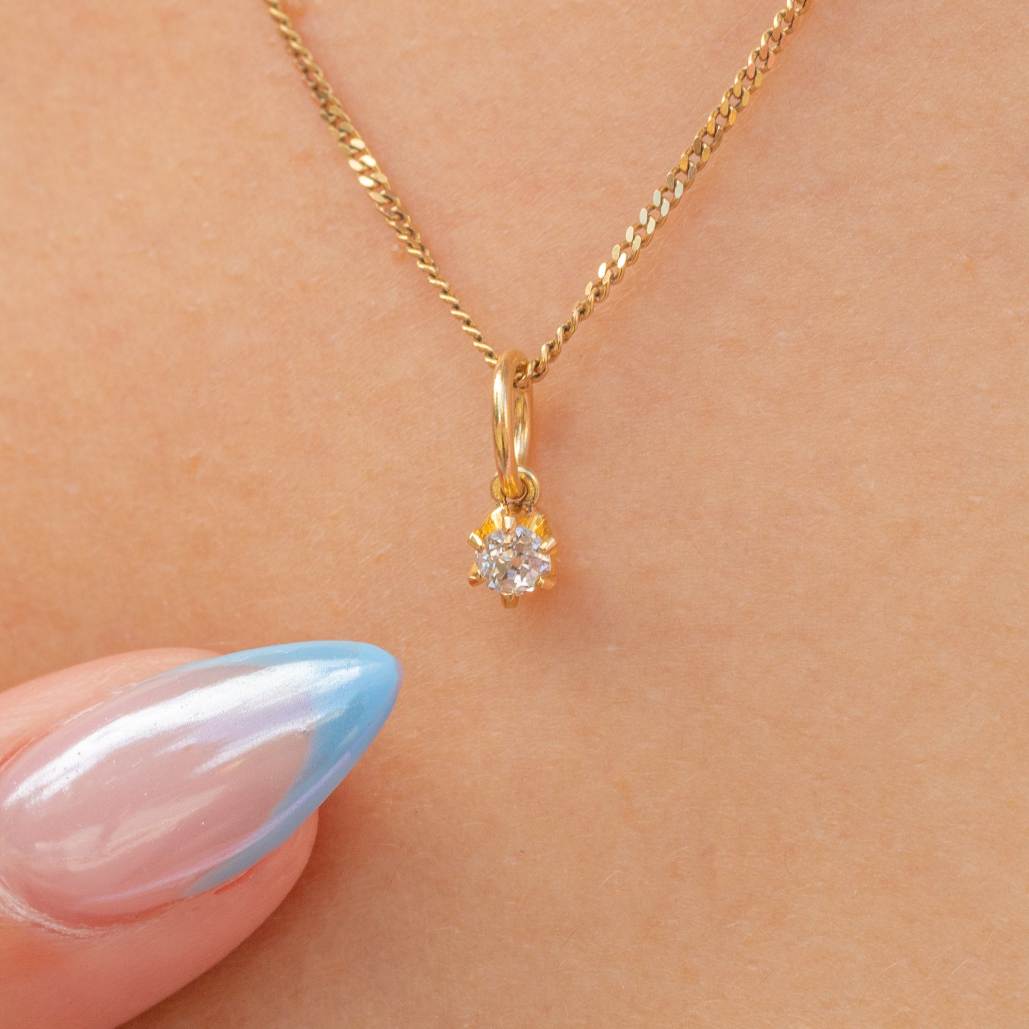 A superb Victorian old European-cut Diamond charm for your attire! A quintessentially antique piece, the 0.10ct old European Diamond is set in classic buttery 18ct Gold claws radiating charm and elegance.