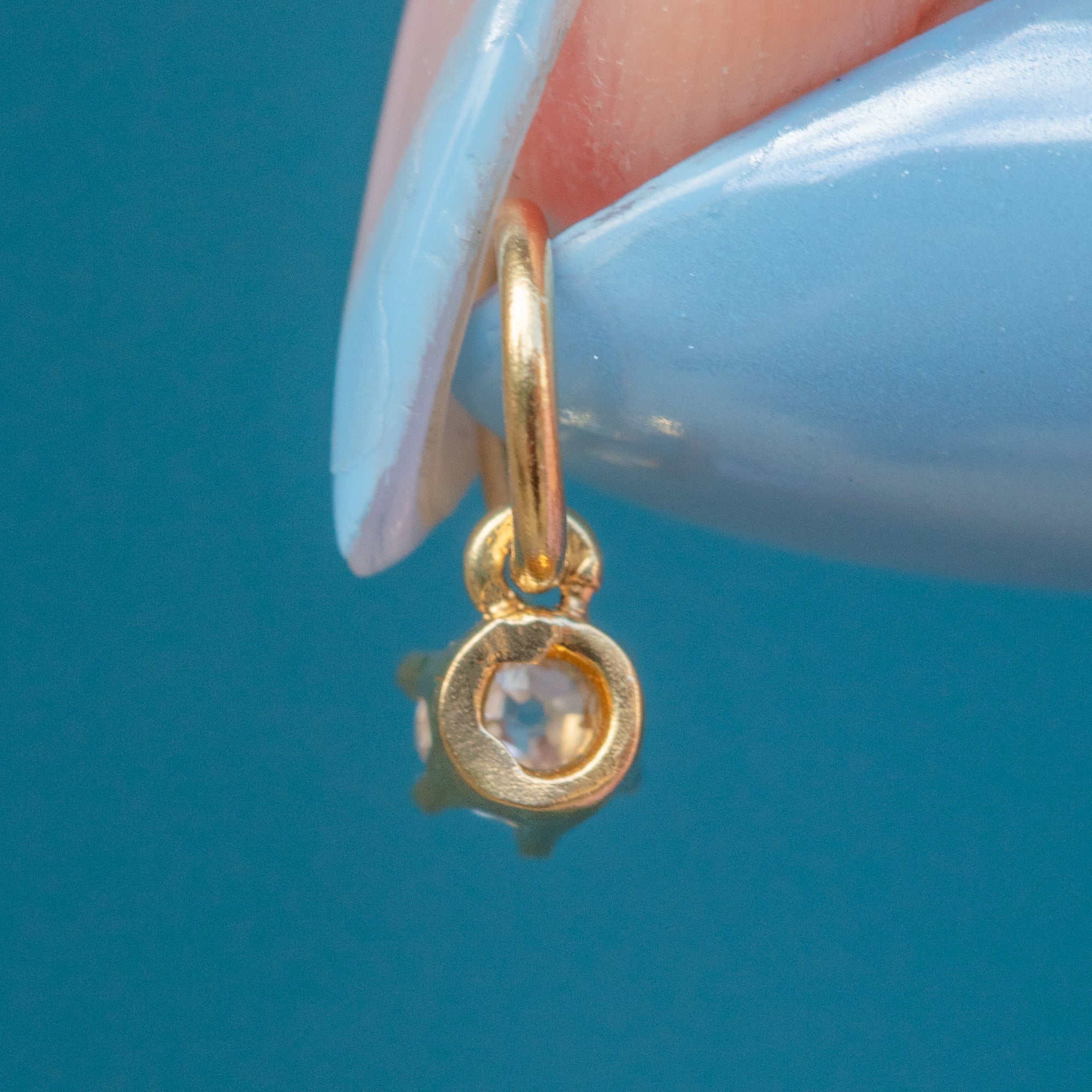 Suspended from a large jump ring, this sparkly petite charm is a fabulous way to effortlessly incorporate some antique splendour and twinkle into your attire!