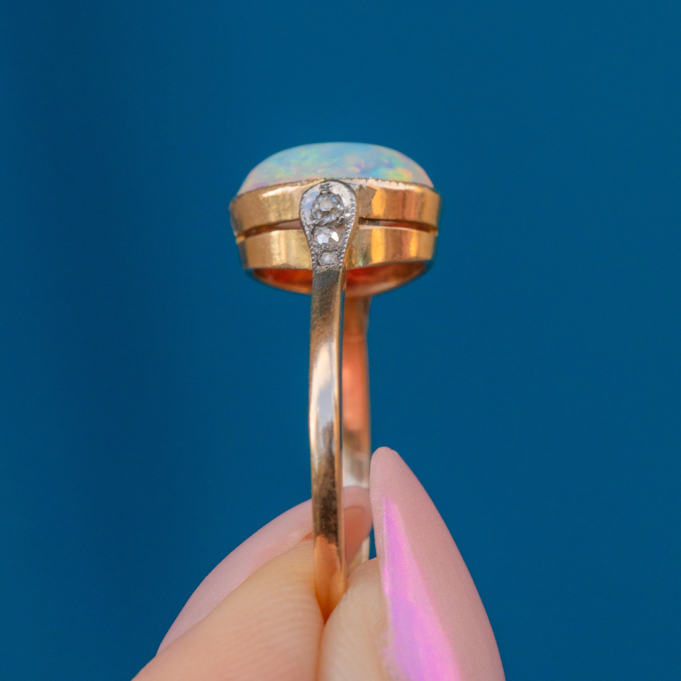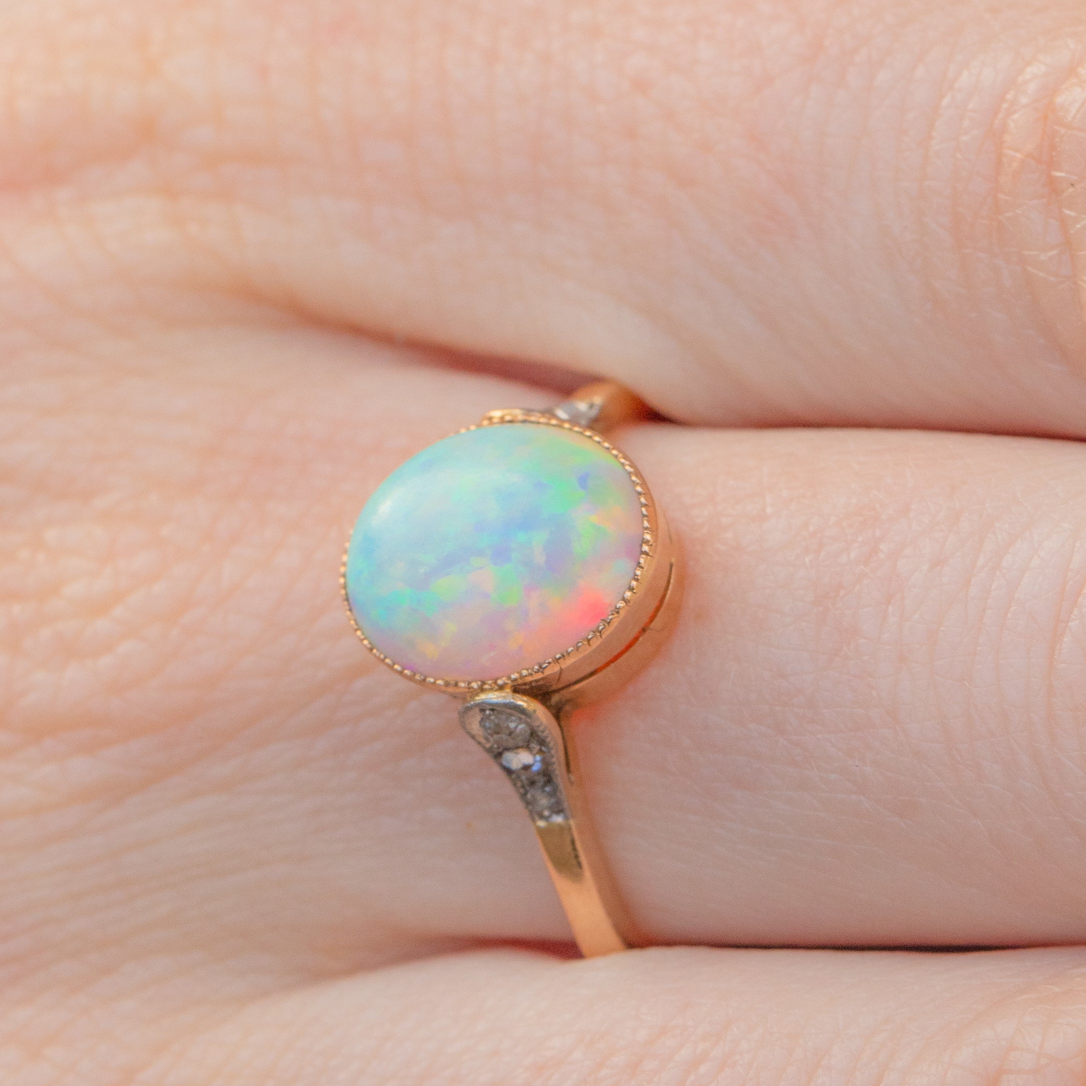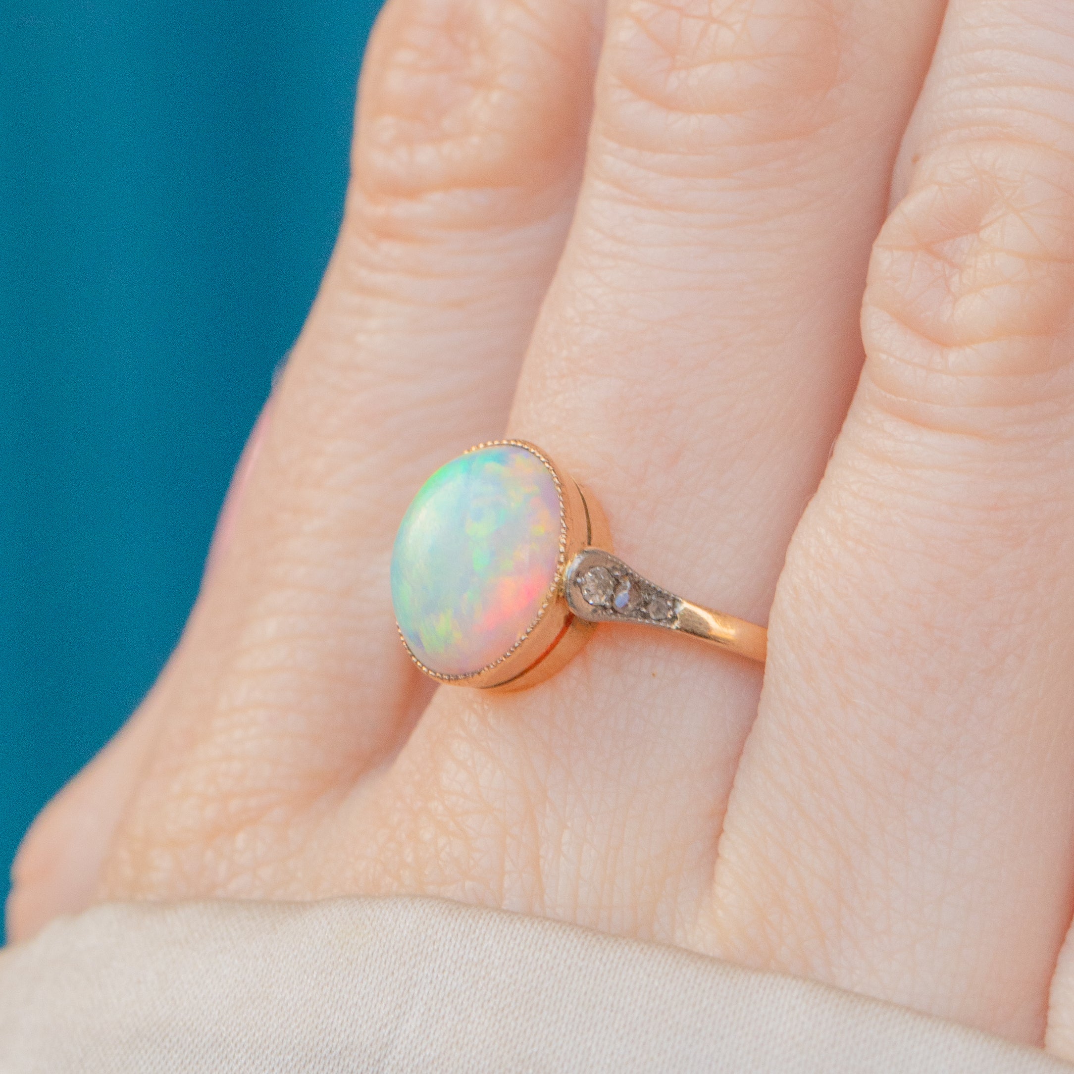 Antique 18ct Gold Opal Cabochon Ring with Diamond Shoulders