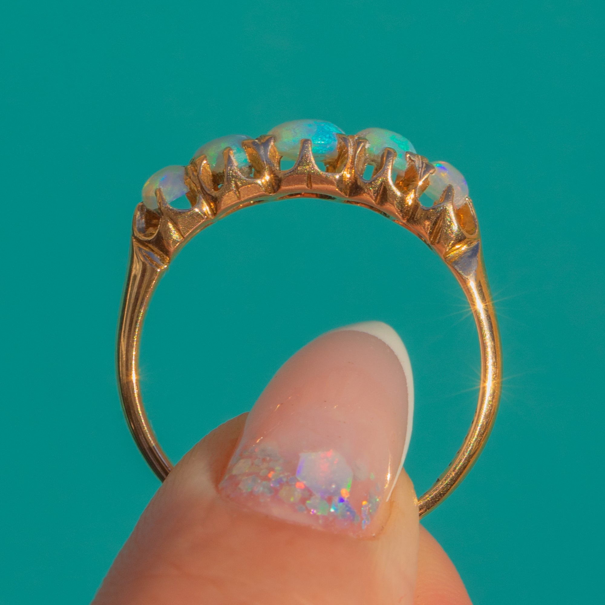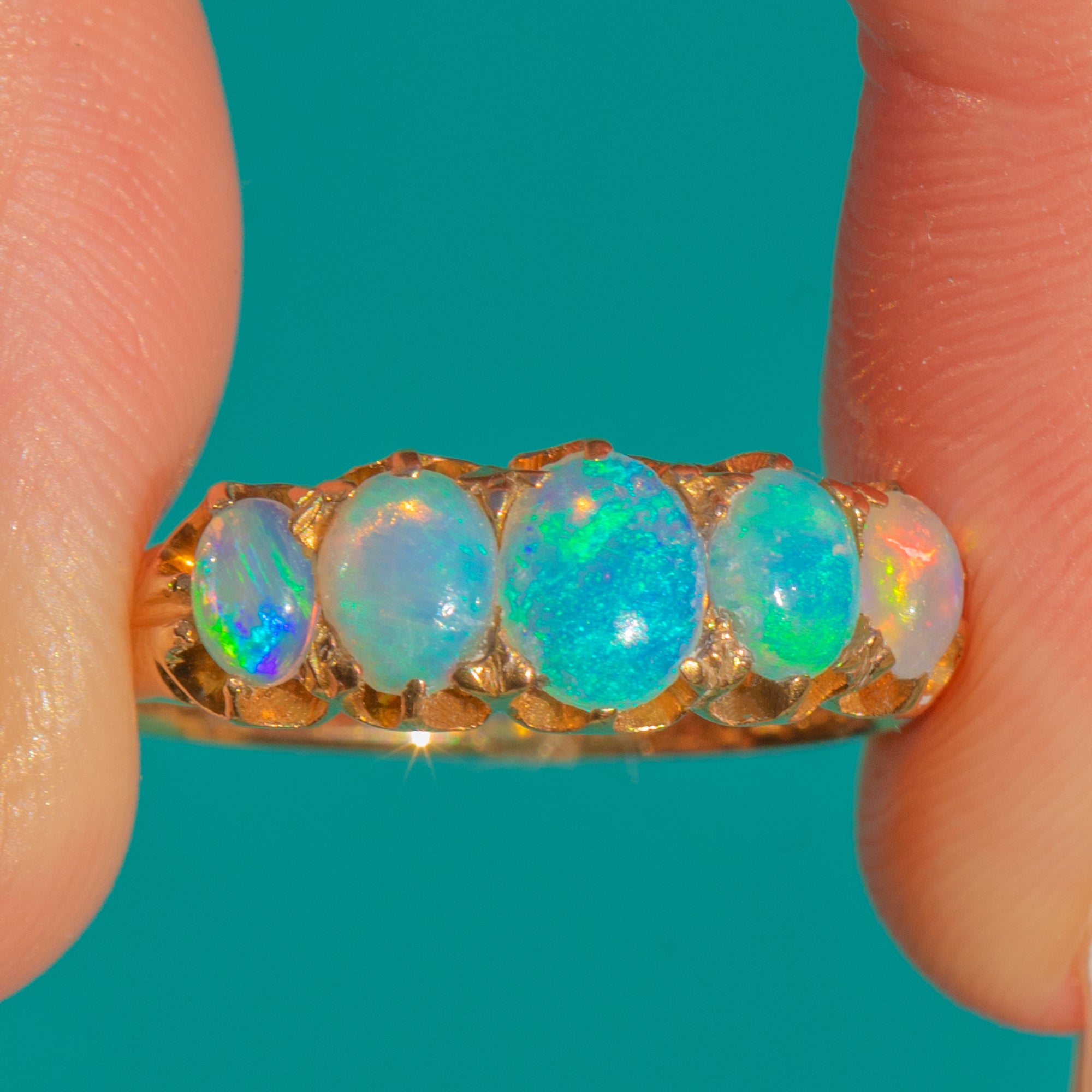 Antique 18ct Gold Opal Five Stone Ring
