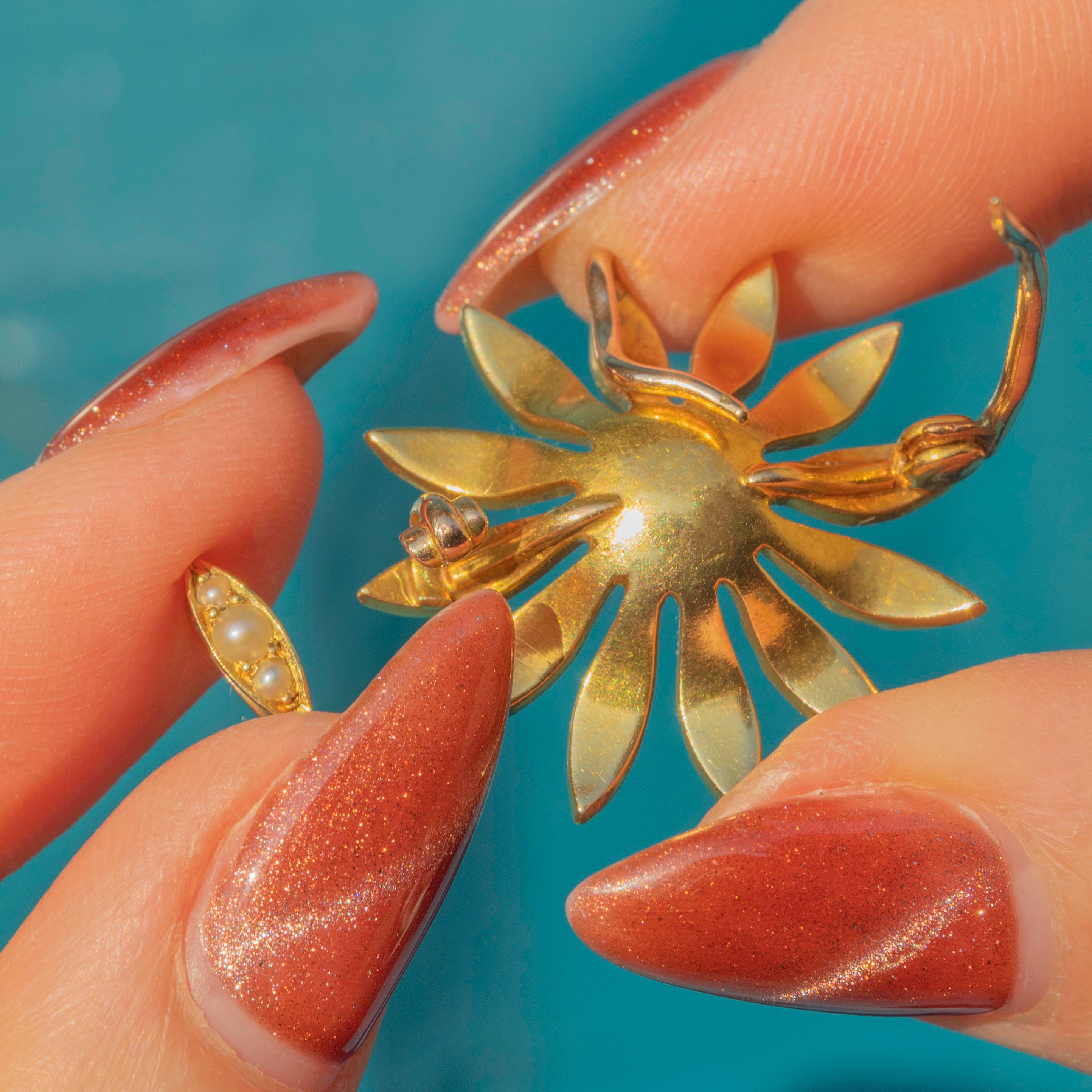 Antique 18ct Gold Pearl Daisy Flower Pendant, Brooch Fittings