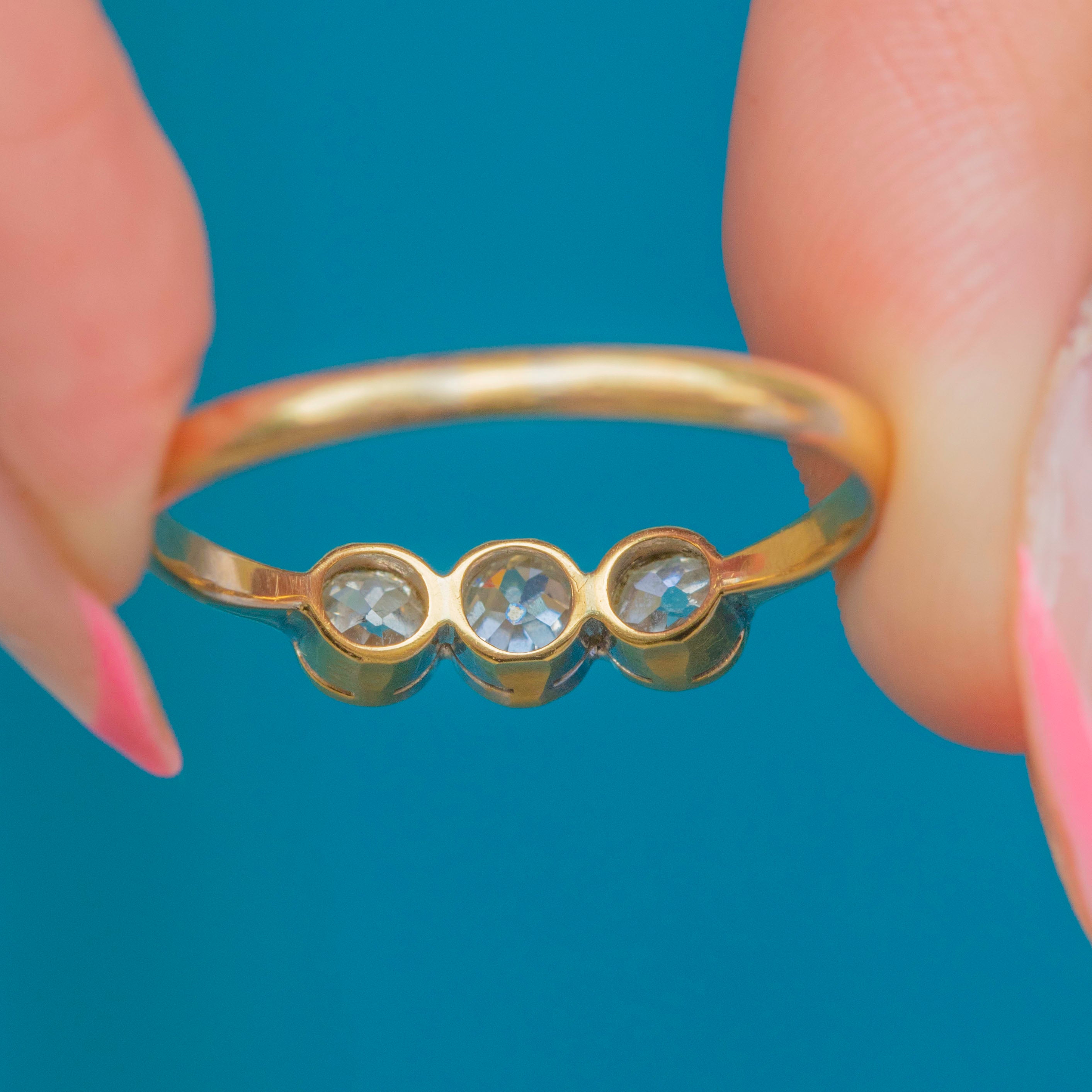 Antique 18ct Gold & Platinum Bezel-Set Old Mine Cut Diamond Trilogy Ring, 0.54ct Item added
