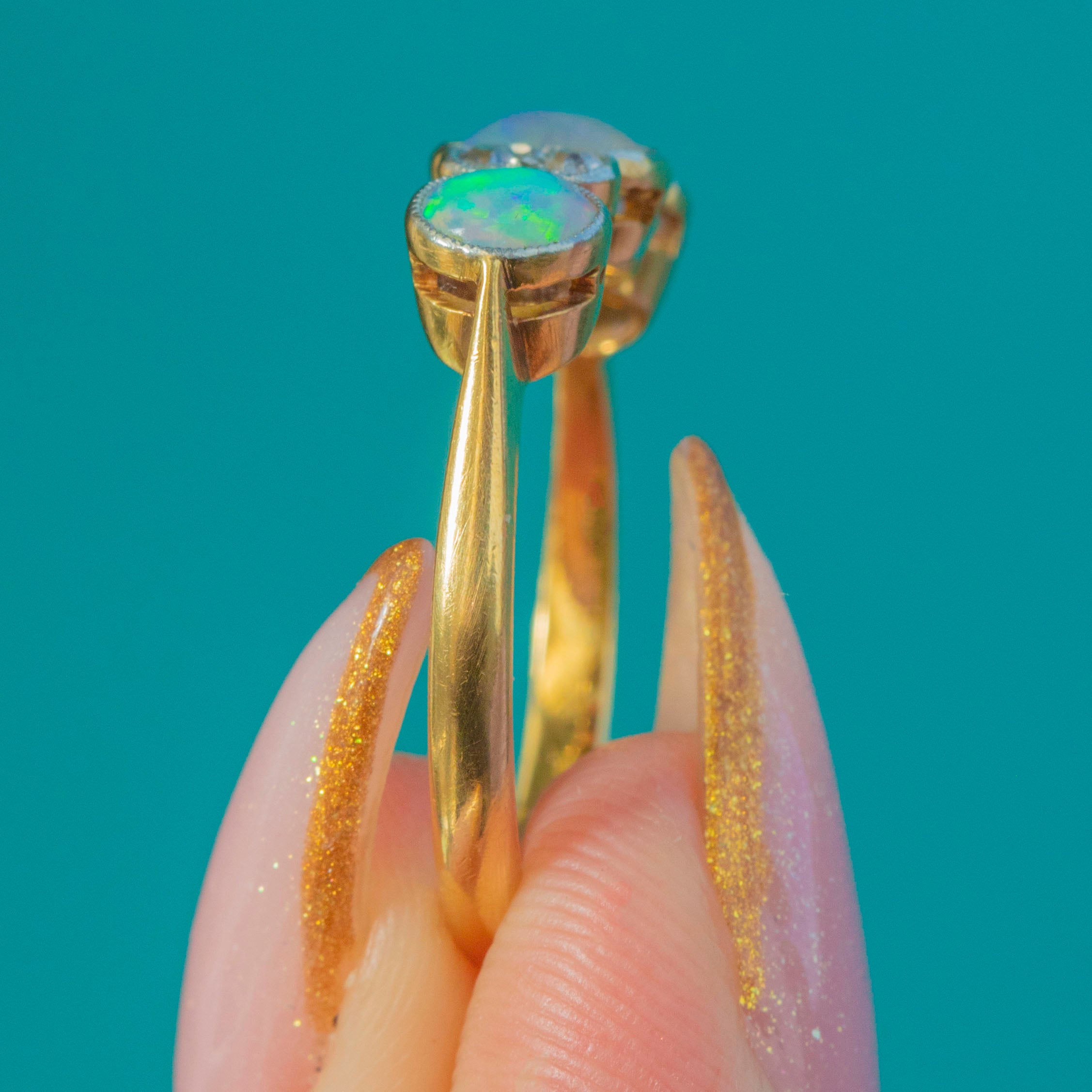 Antique 18ct Gold Platinum Opal Diamond Stacking Ring