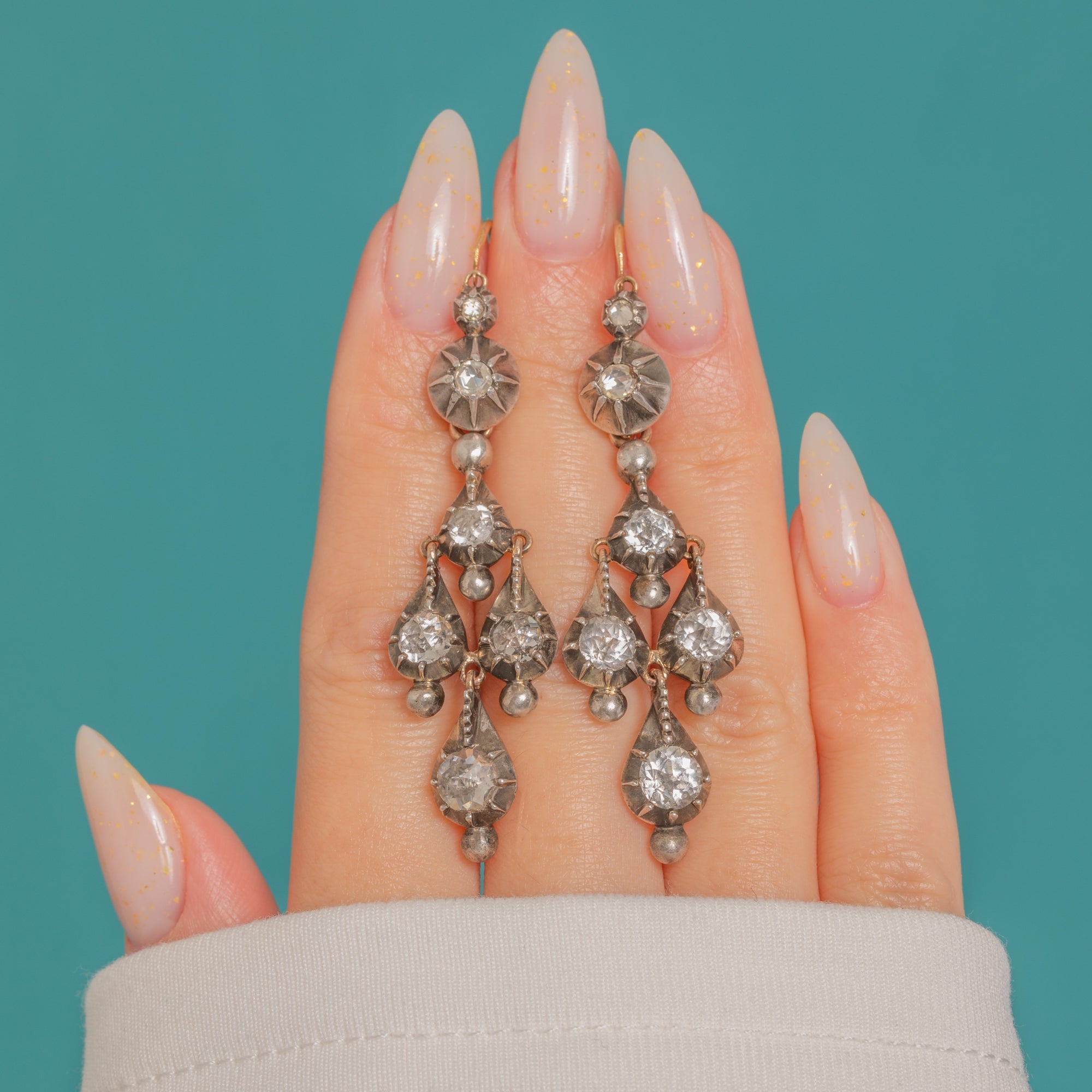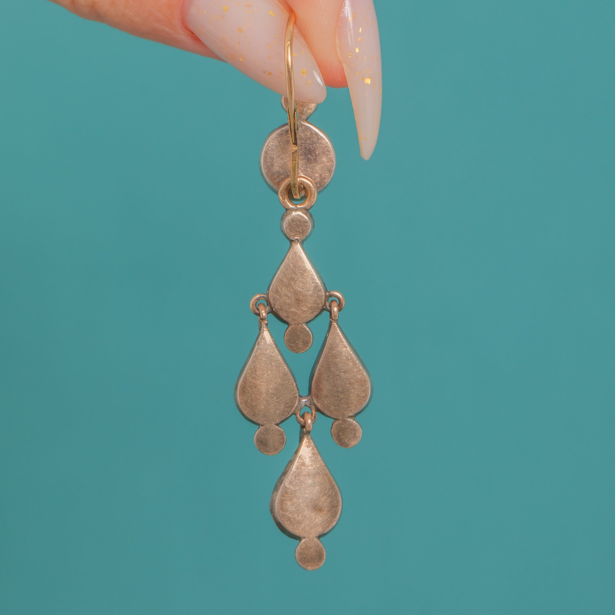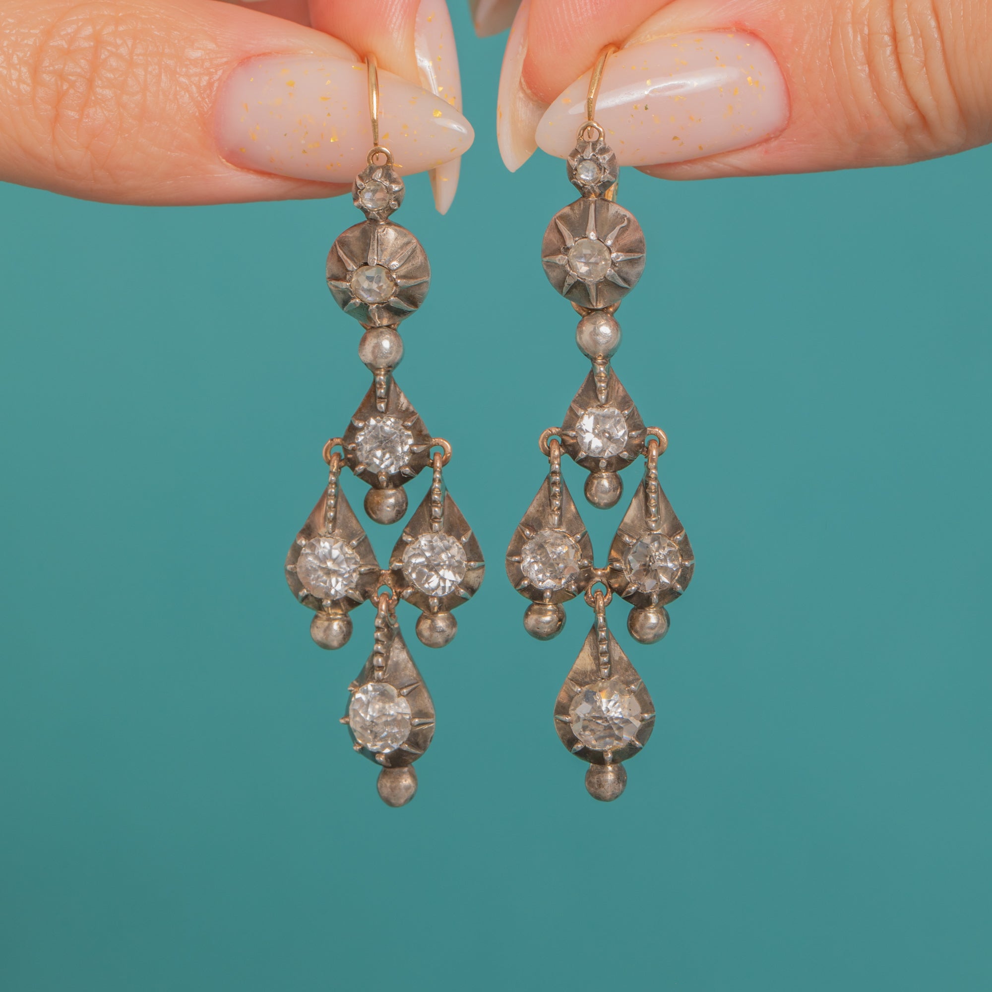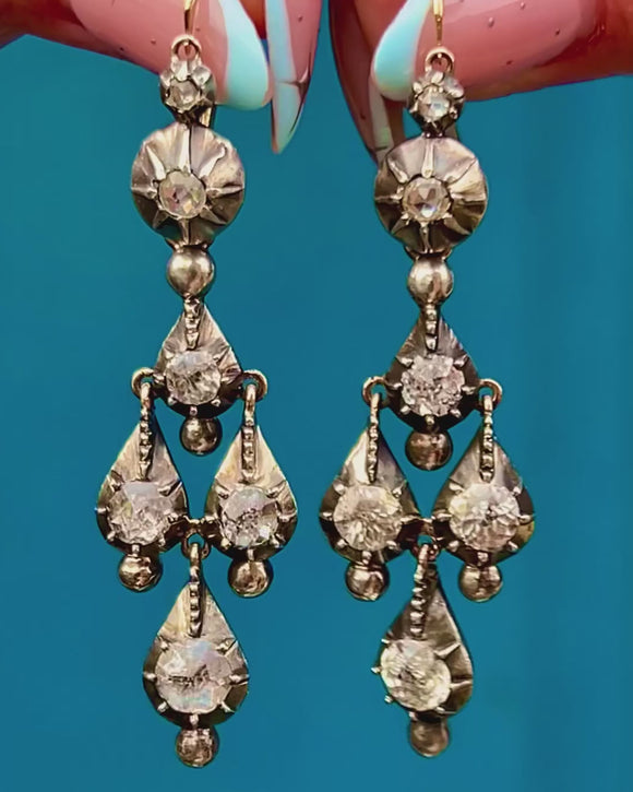 Antique 18ct Gold Rose-Cut Rock Crystal Day & Night Chandelier Earrings