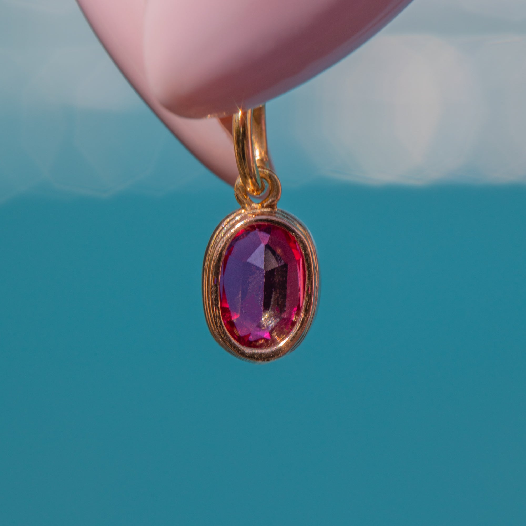 The 1.00ct Ruby charm carries a sense of power, as Rubies have long been associated with passion, protection, and wealth. This versatile piece of Victorian jewellery can be worn as a standalone piece, suspended from a delicate chain, or easily nestled in amongst your other favourite charms in a curated necklace stack!