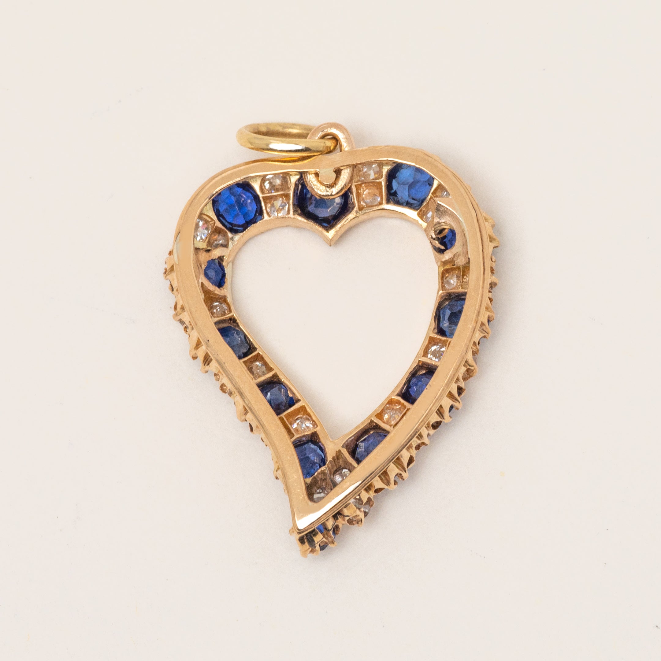 Antique 18ct Gold Sapphire Diamond Witches Heart Pendant