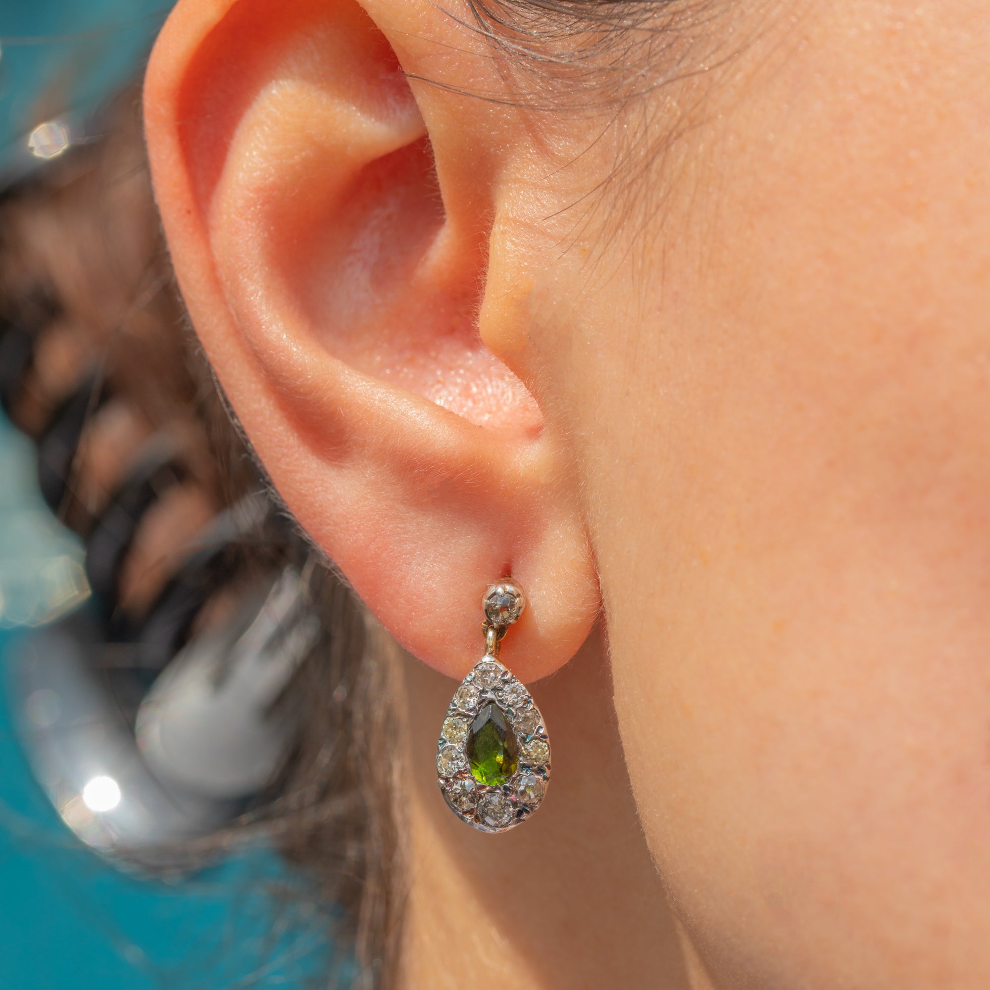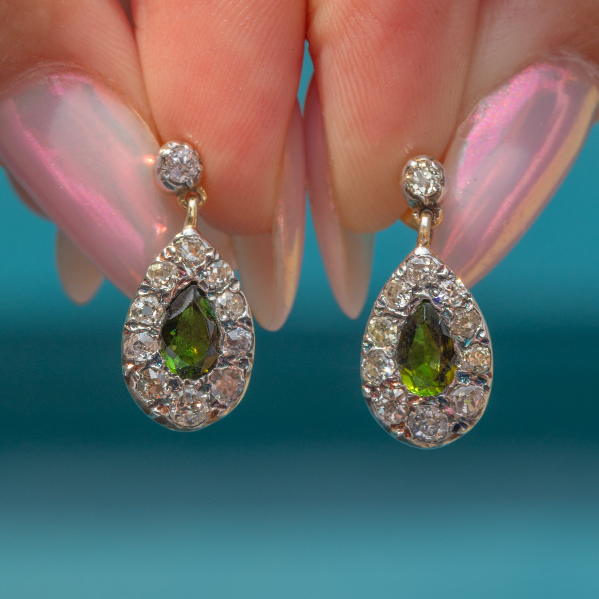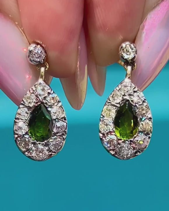 A sophisticated pair of antique 18ct Gold Tourmaline Diamond pear drop earrings!