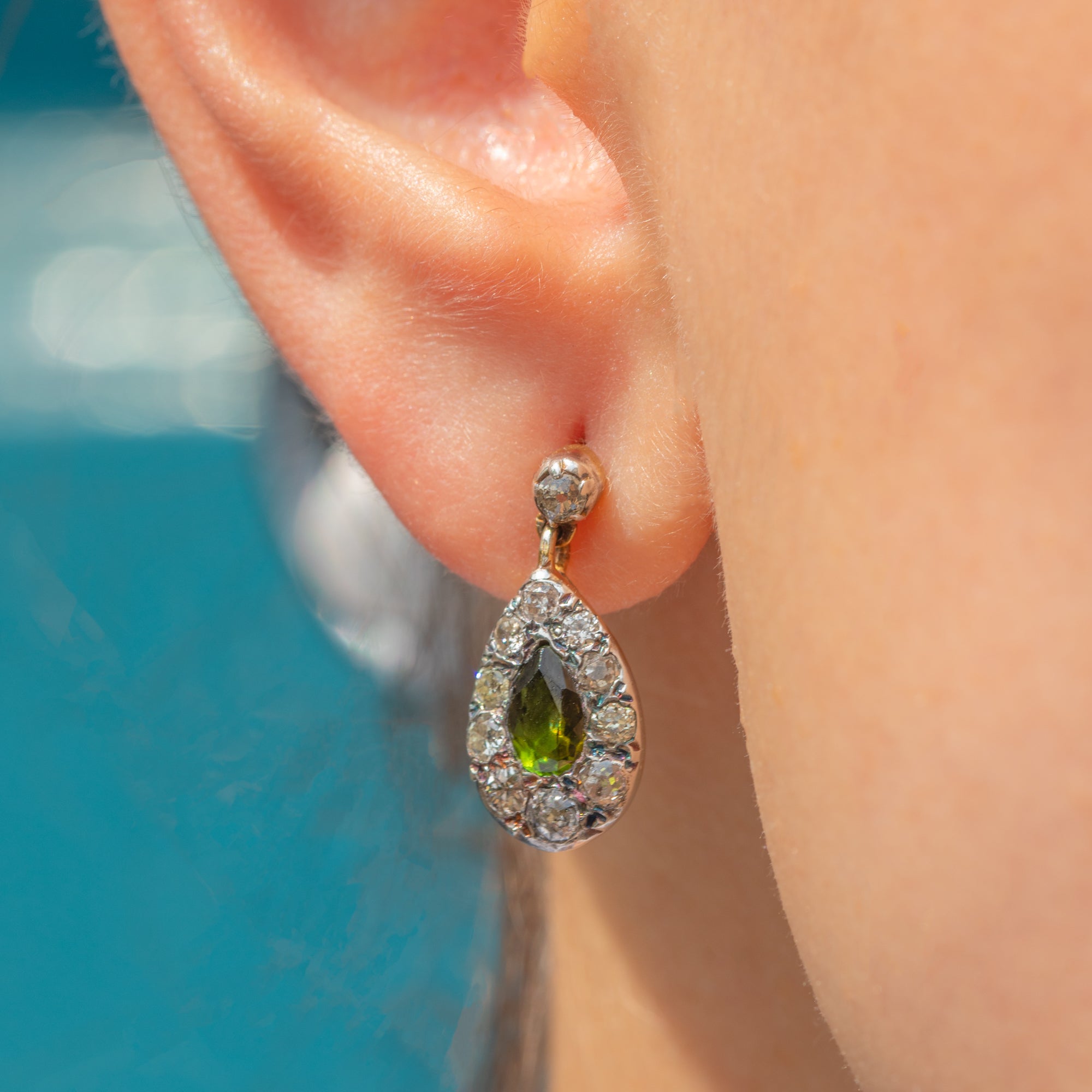 Antique 18ct Gold Tourmaline Diamond Pear Drop Earrings