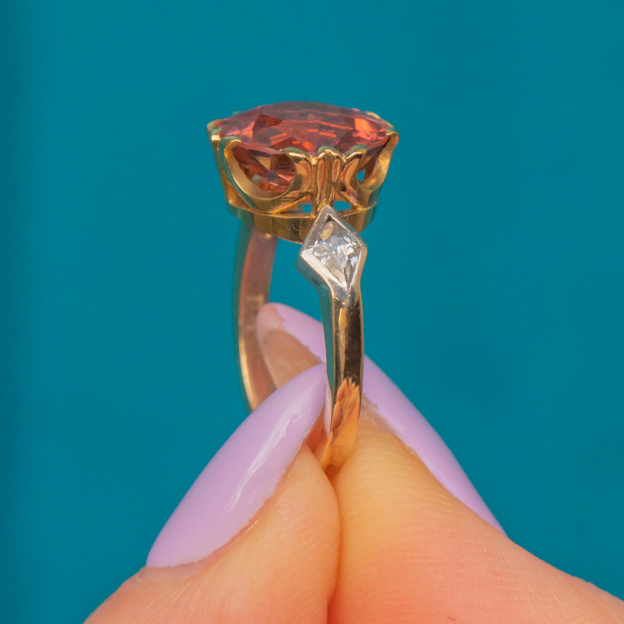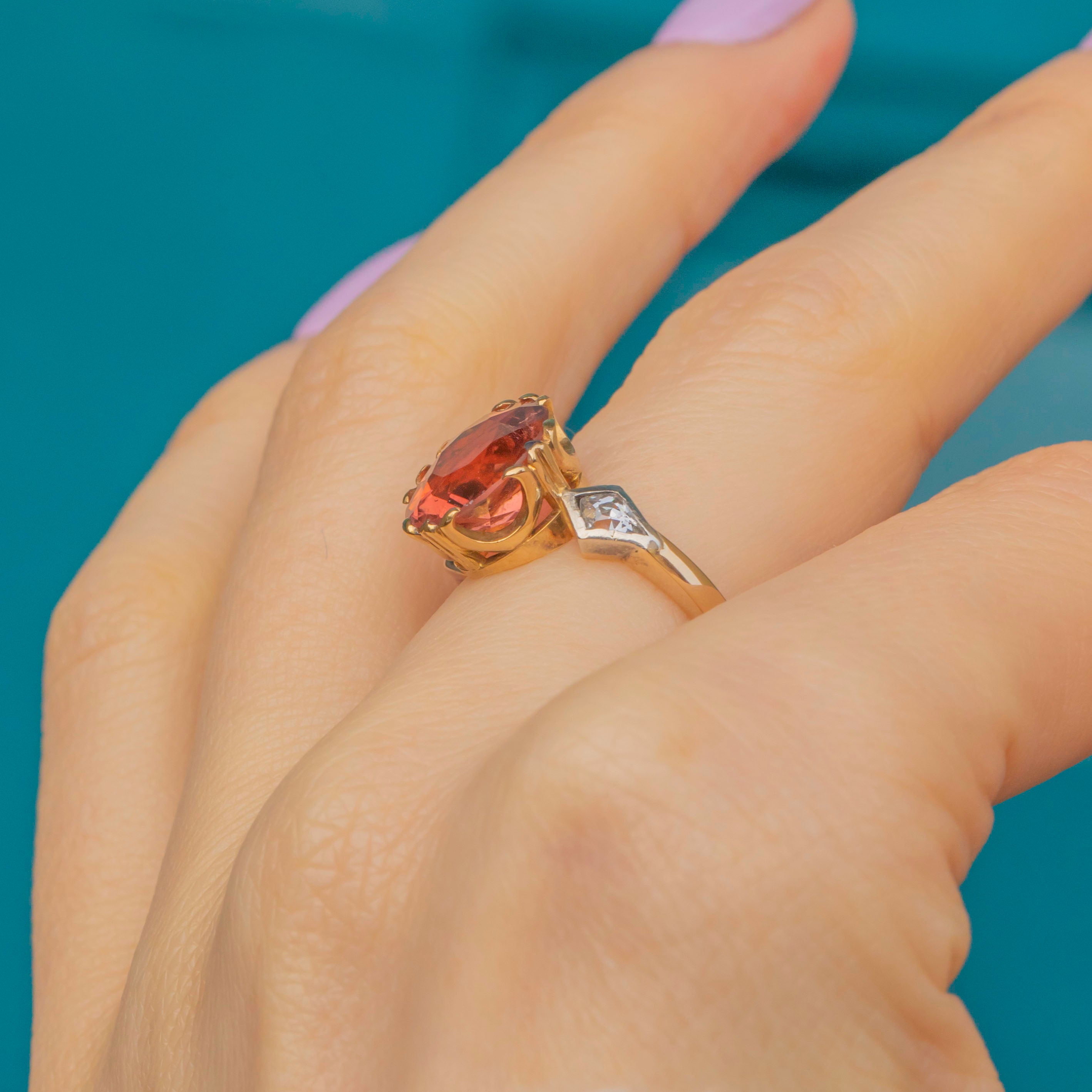 Every millimetre of this Victorian ring has been carefully considered and looking side-on, you will notice the exquisitely formed gallery with its ornate rococo design that holds the Tourmaline proudly from the finger, allowing the light to stream through its majestic profile.