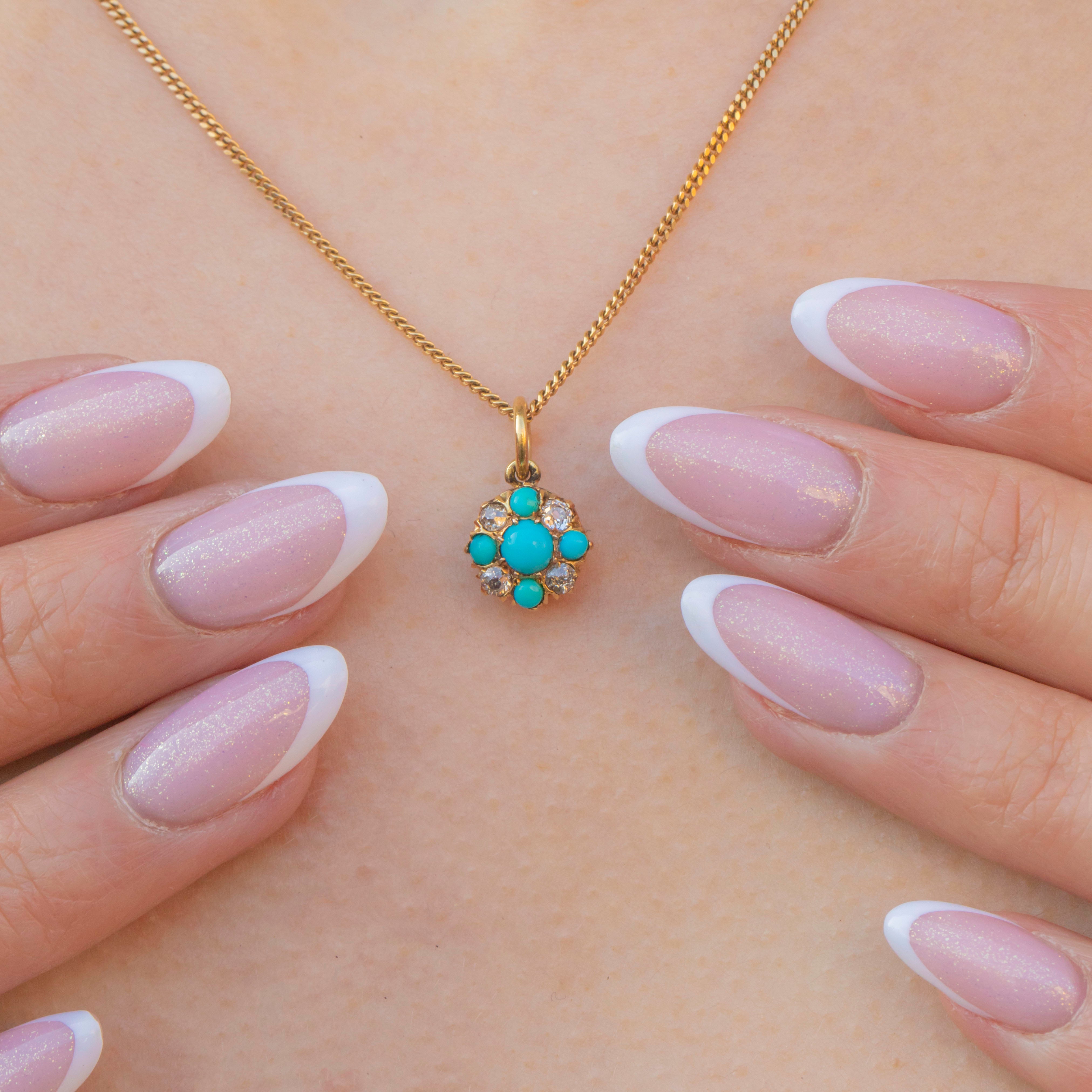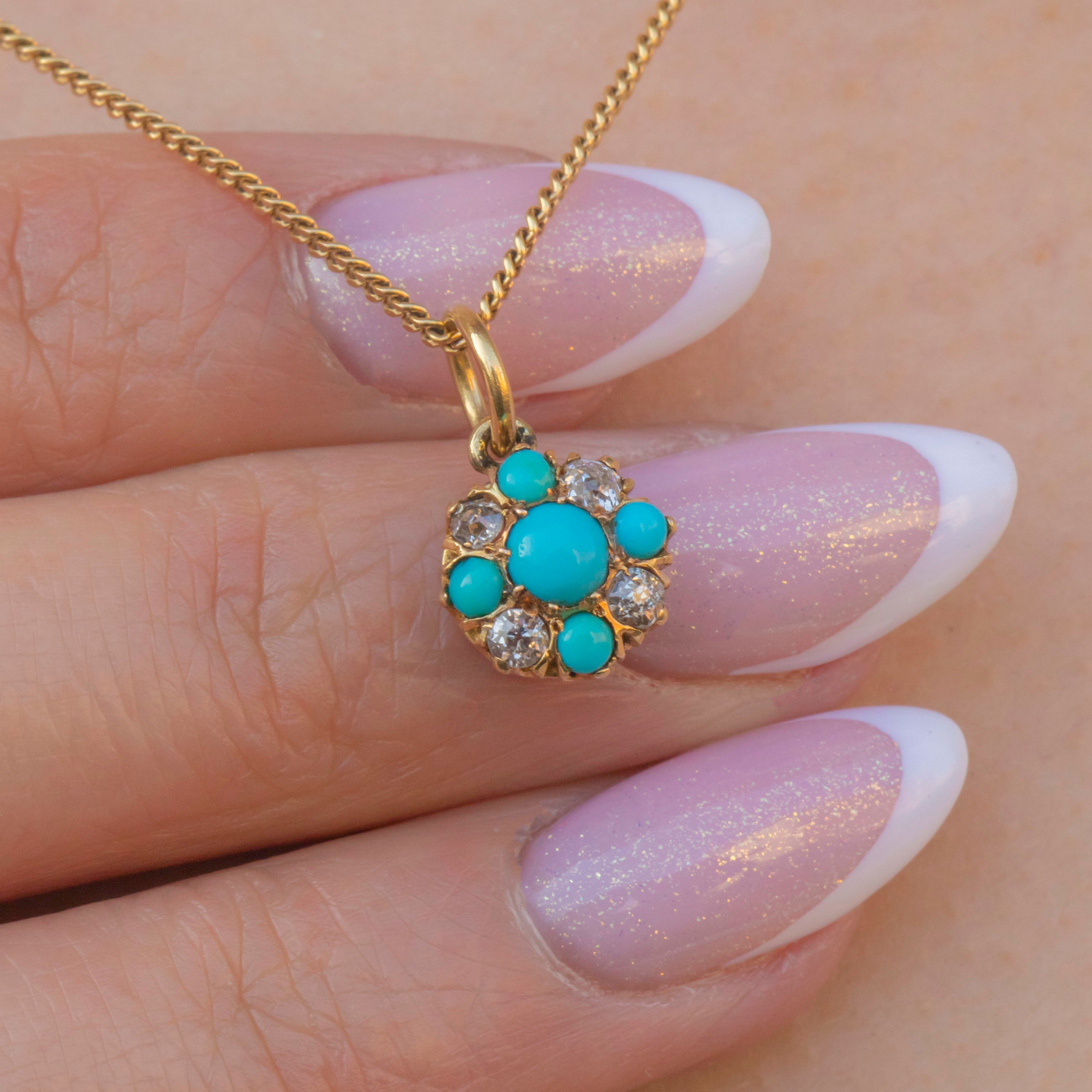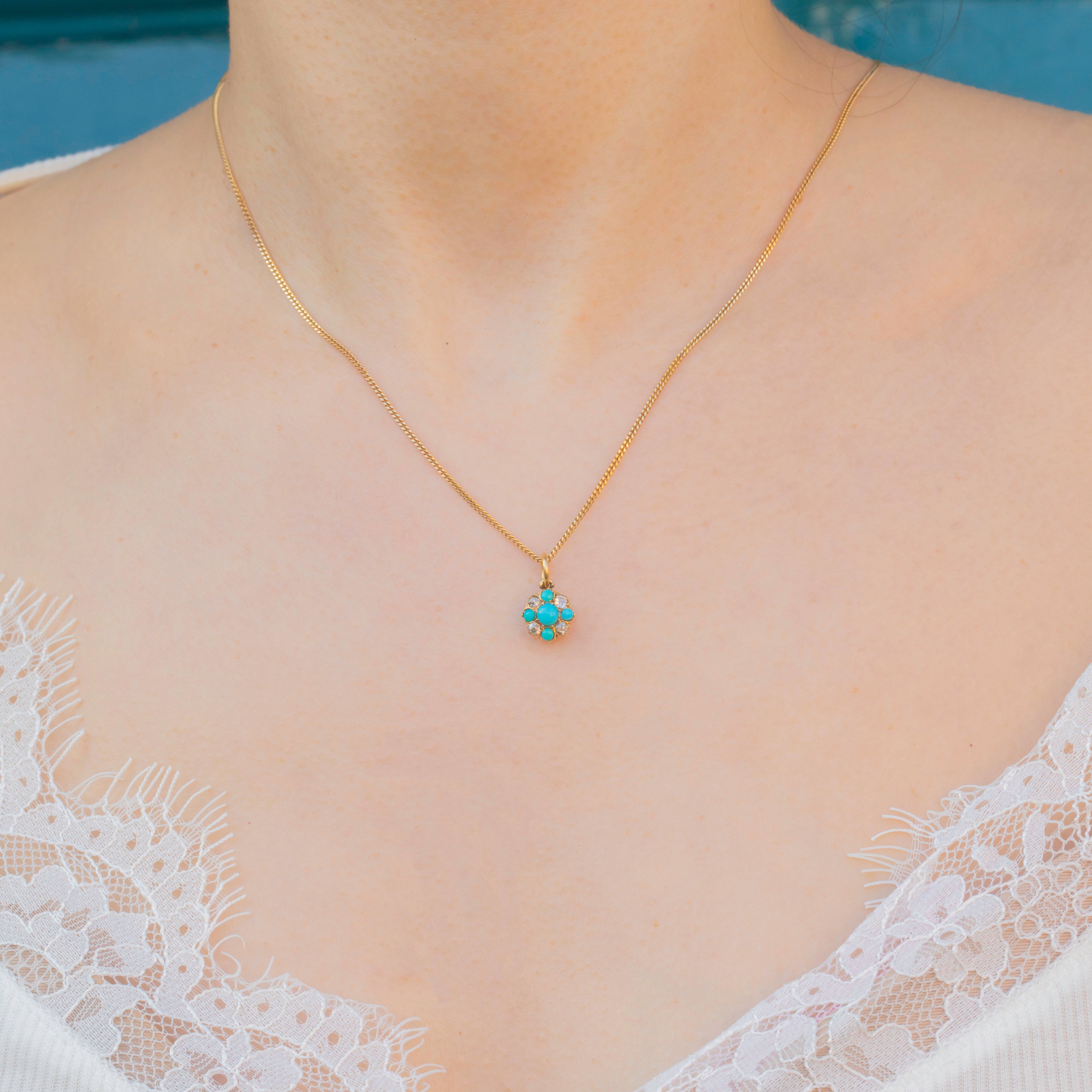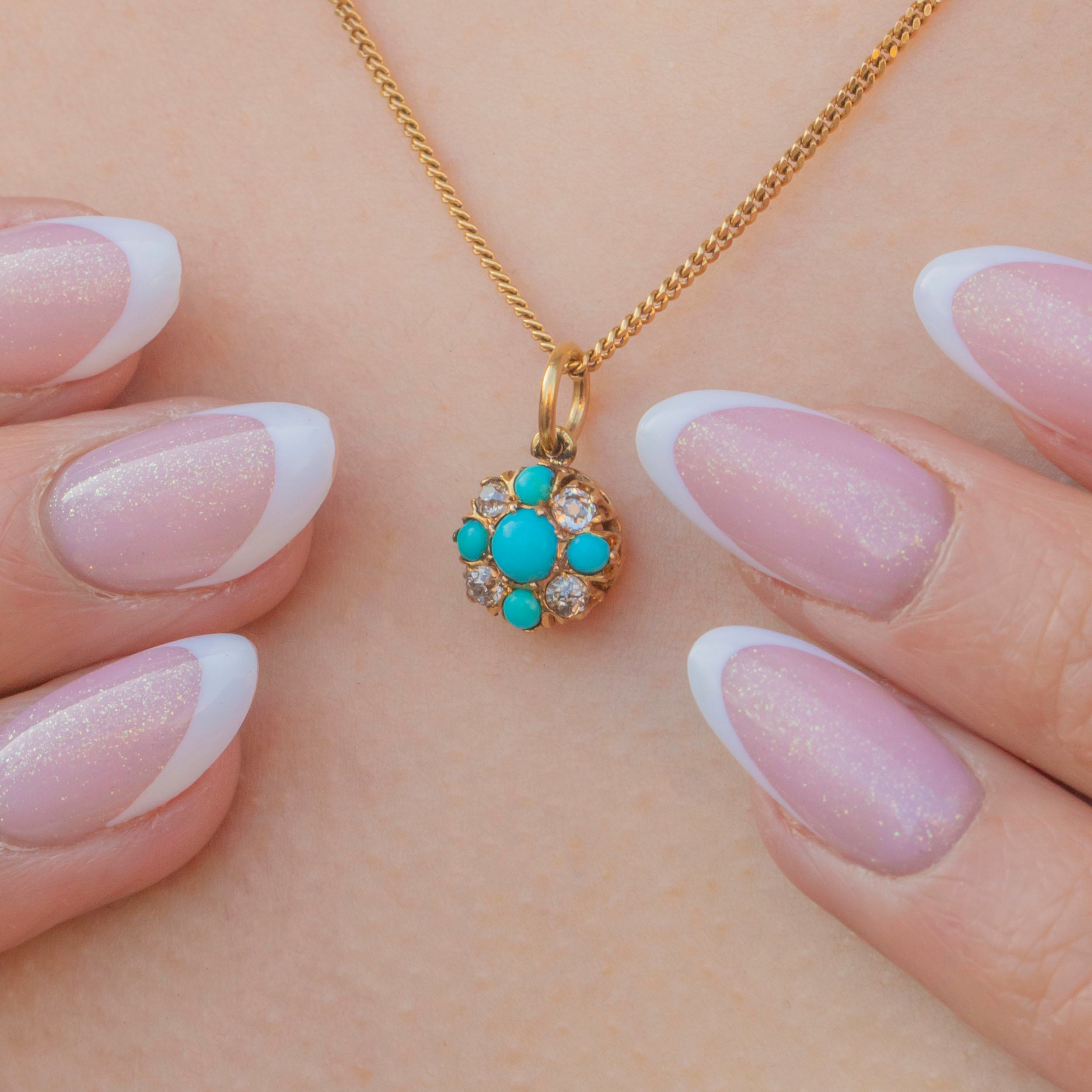 Crafted from saturated 18ct Gold, this petite Victorian Turquoise Diamond pendant is the perfect size for everyday wear, either worn as a standalone piece or stacked amongst your other favourite jewels!