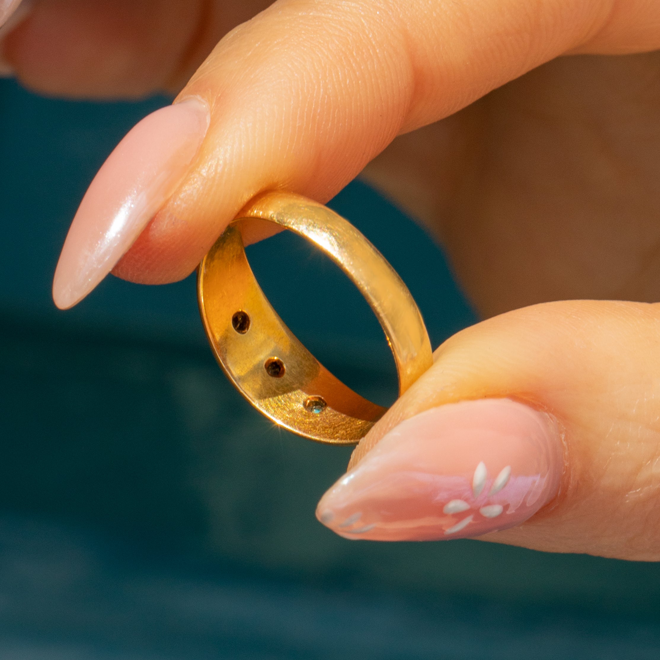 MEASUREMENTS: Ring band is 6.5mm wide at the front, tapering to 3.5mm wide at the back.