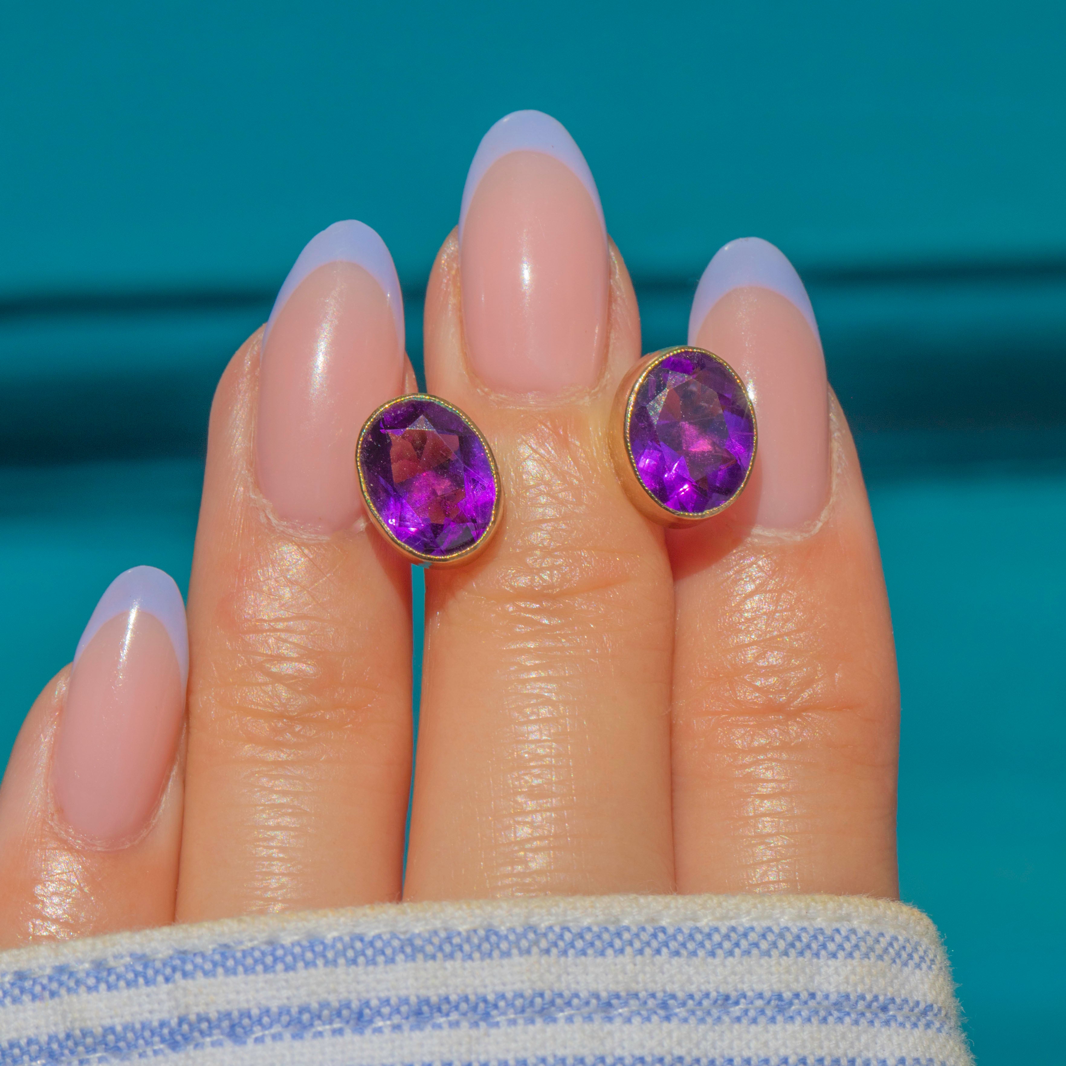 Amethysts are 8.5mm x 6.5mm, weighing approx. 1.68ct.