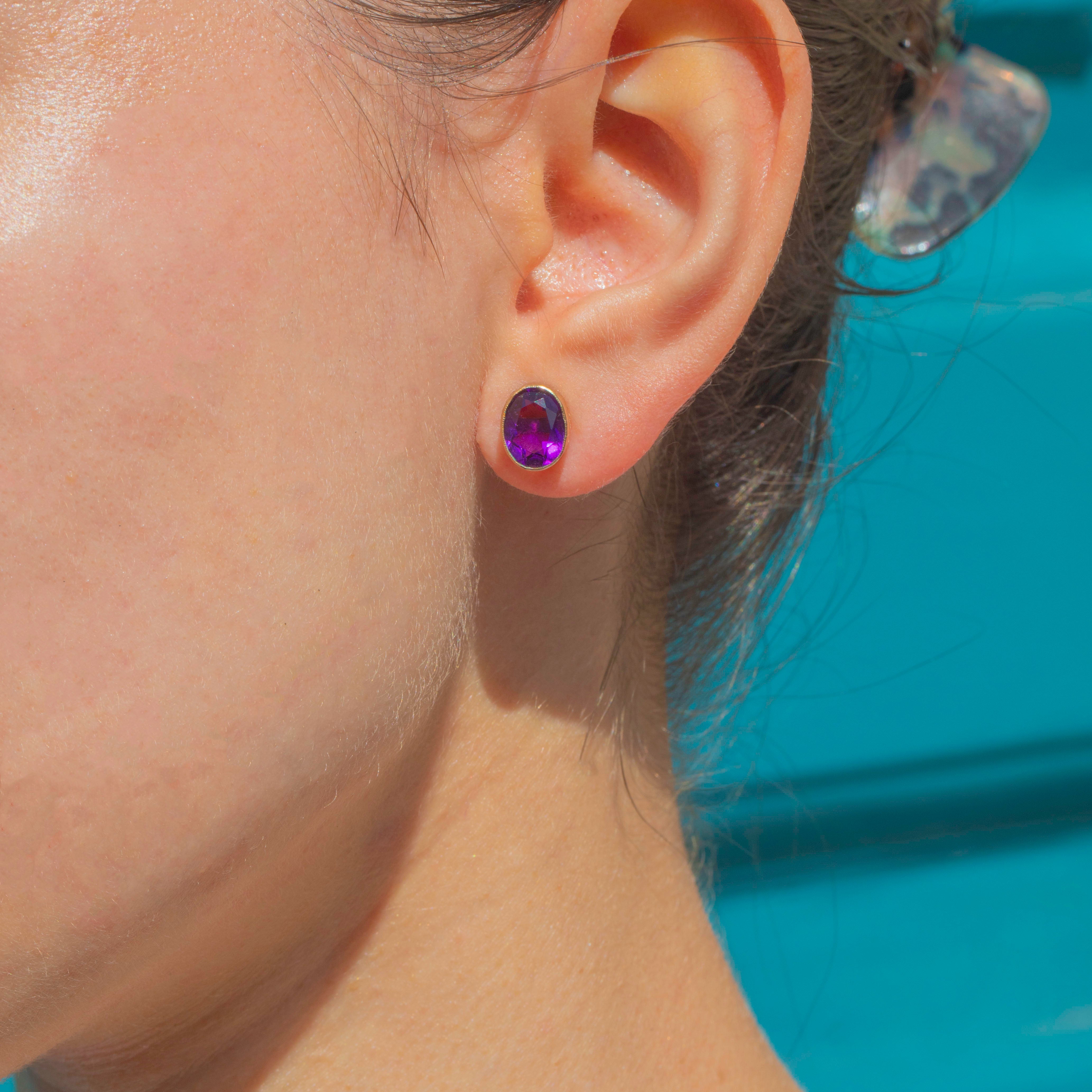 These antique 9ct Gold Amethyst bezel-set stud earrings will make an impact adorning your lobes! Boasting a combined weight of 1.68ct, each exquisitely cut Amethyst glows with royal purple hues as the light dances across its facets.