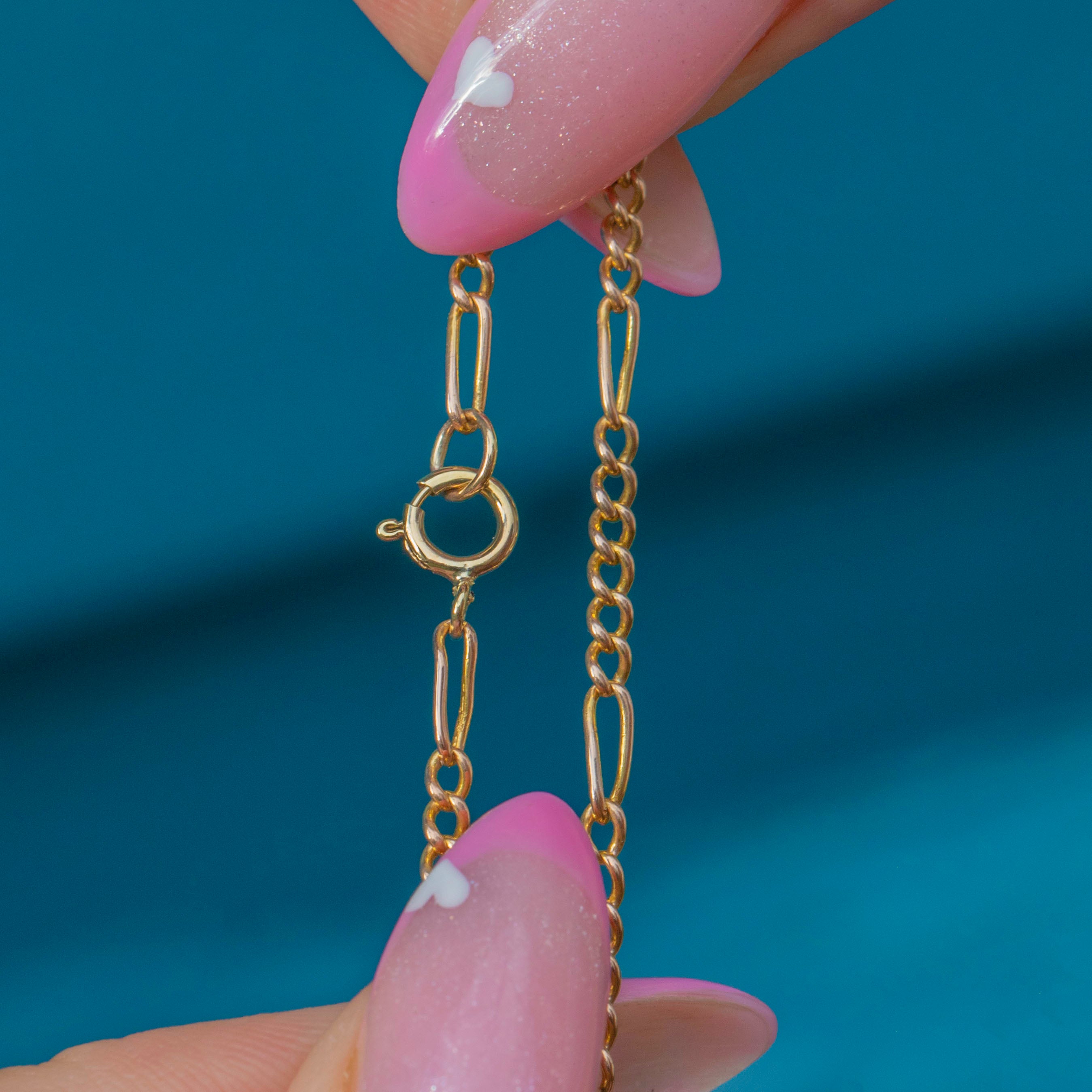 A pretty Victorian Figaro bracelet in 9ct Gold, set with a richly coloured 3.50ct Amethyst. The crisp figaro links give a delicate, elegant drape, while the glossy oval Amethyst adds a vibrant pop of purple for effortless everyday wear.