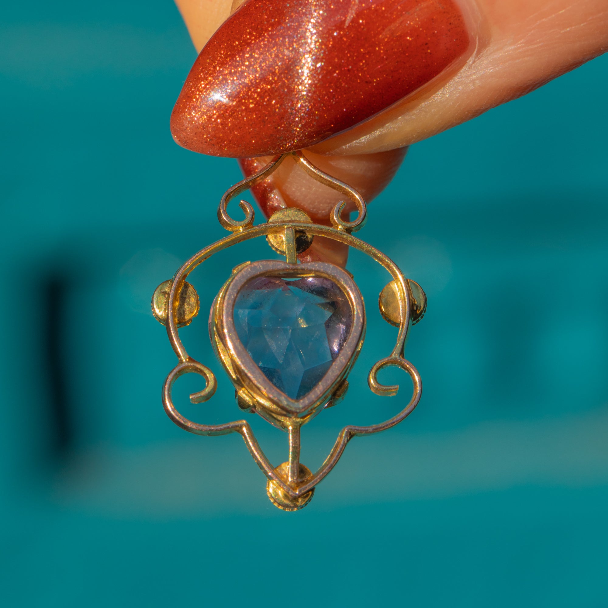 Antique 9ct Gold Amethyst Pearl Heart Necklace, 2.10ct