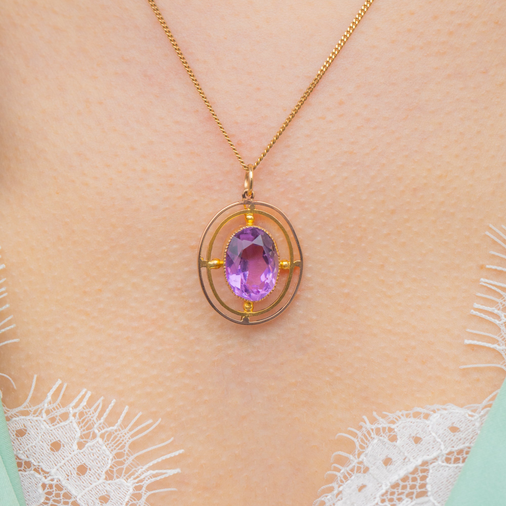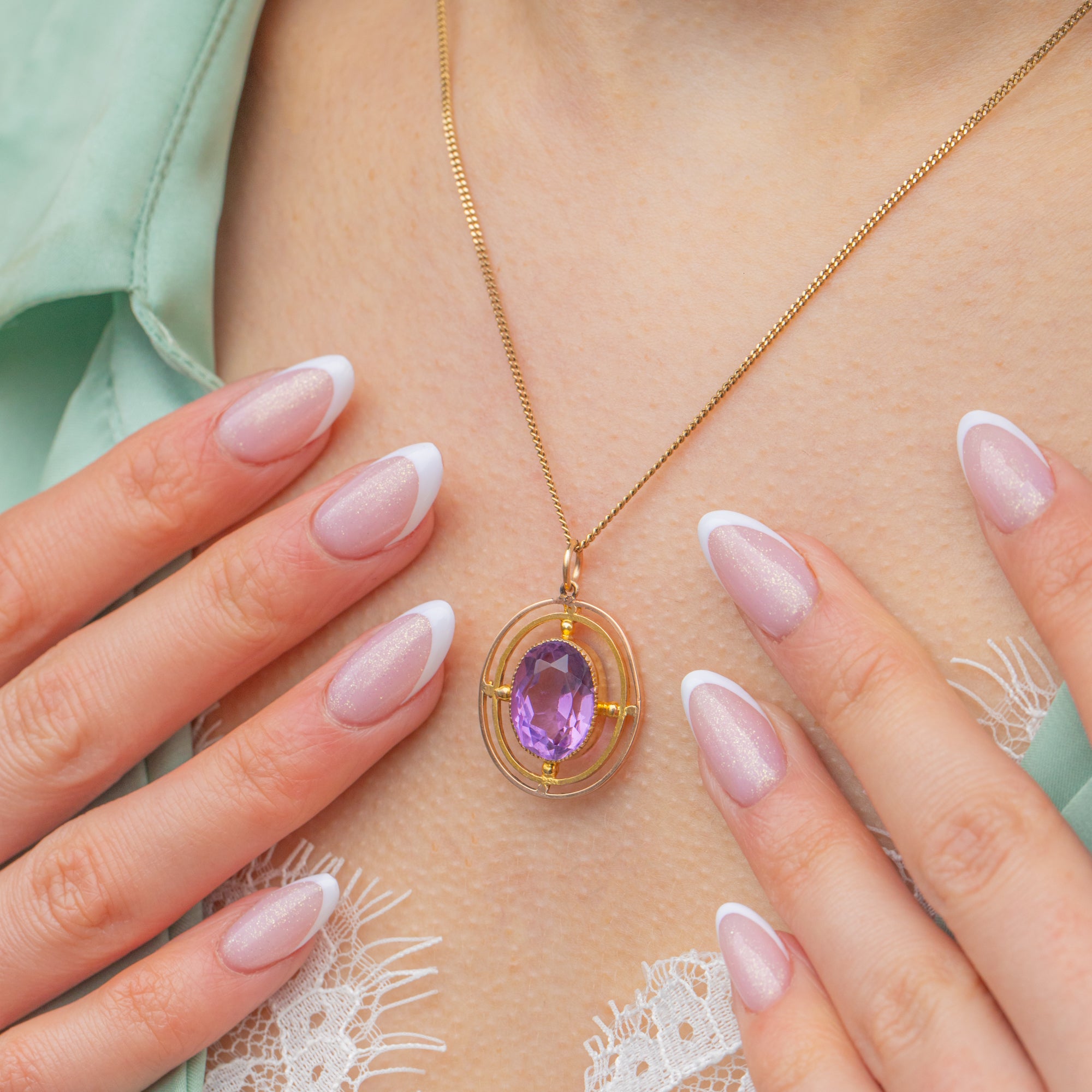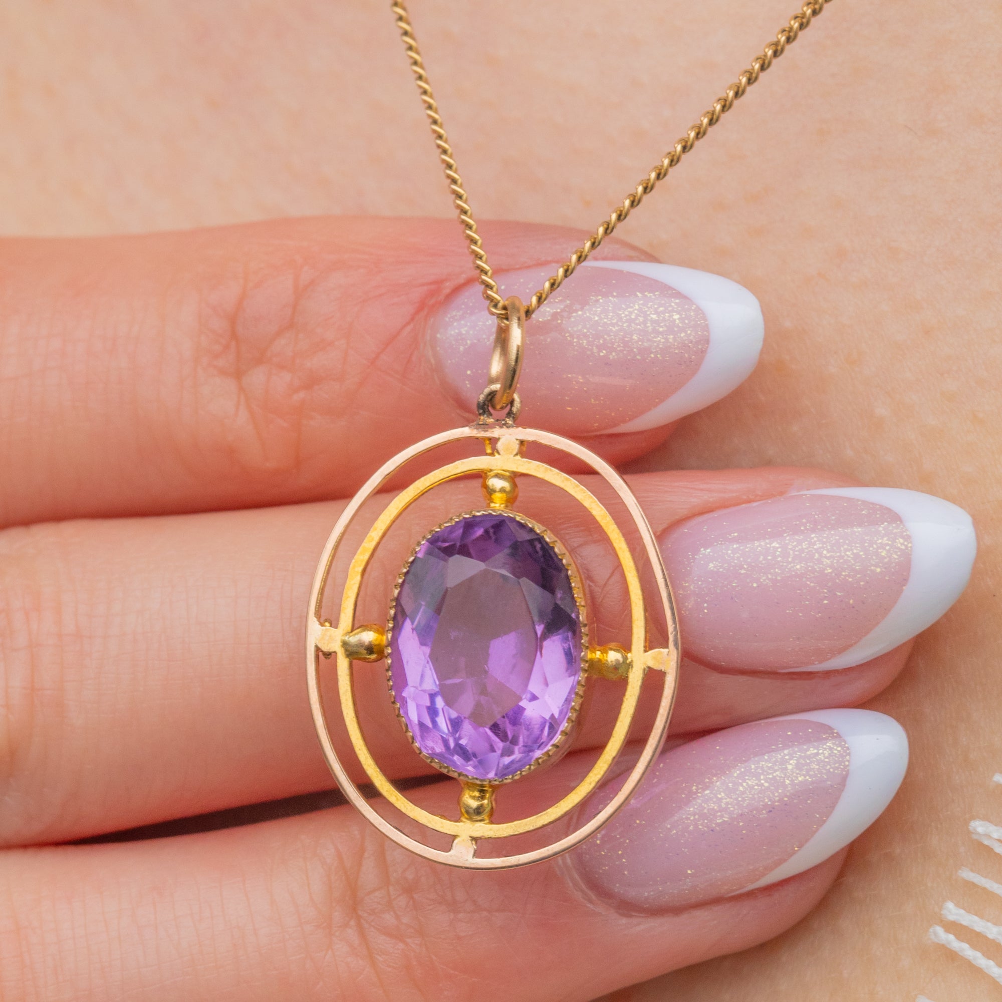 Add a pop of colour to your attire with this antique 9ct Gold Amethyst pendant!