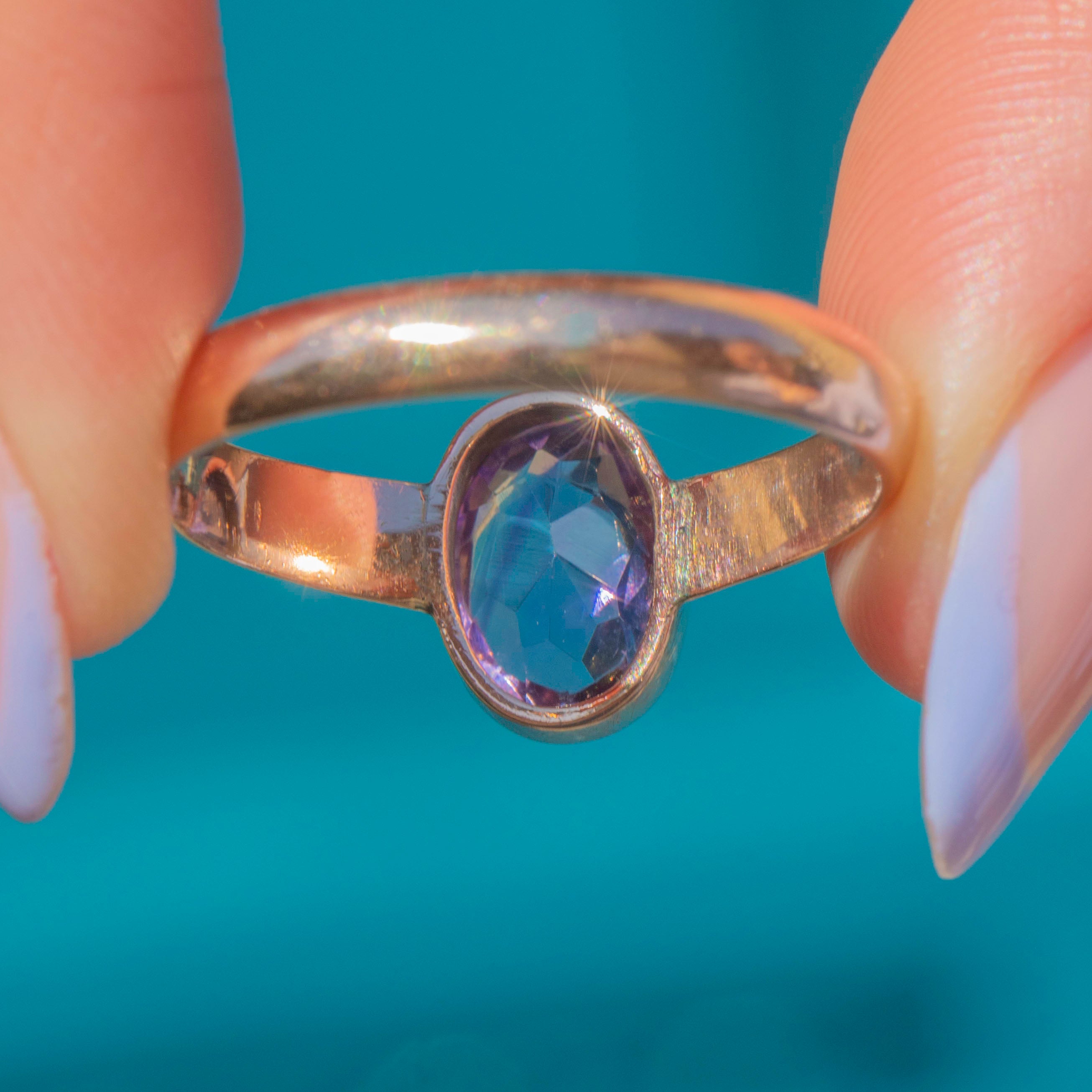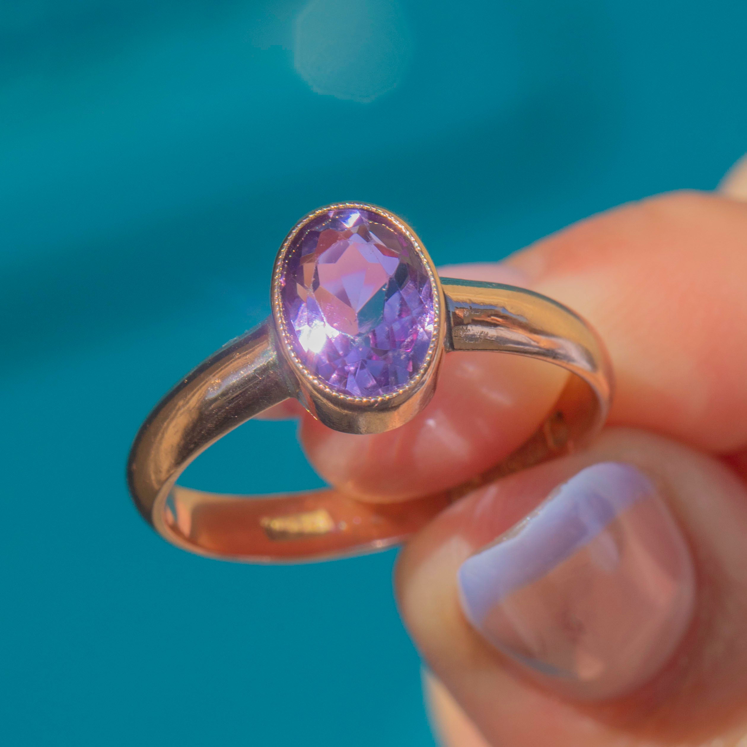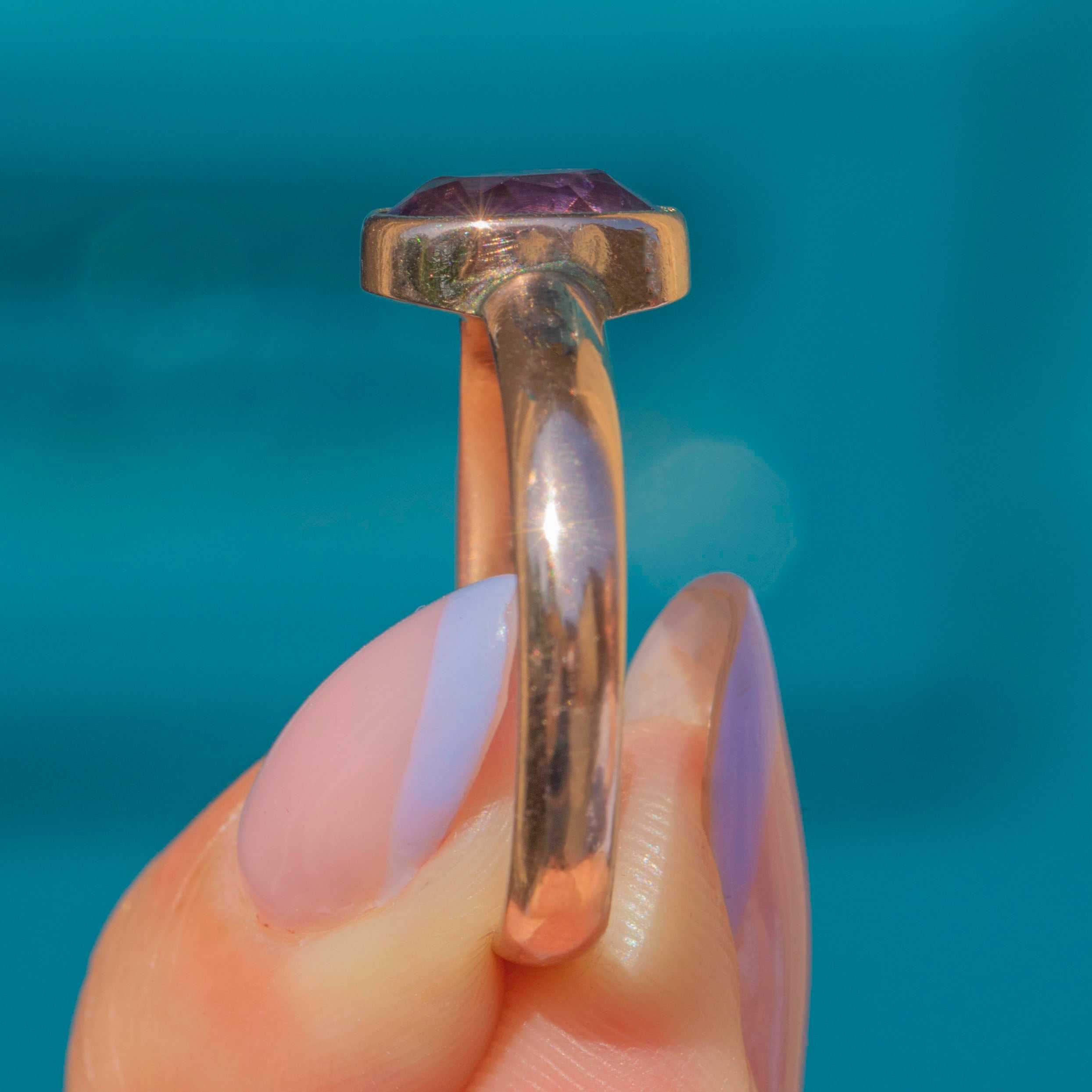 This antique 9ct Gold Amethyst solitaire ring is bursting with mystical charm!