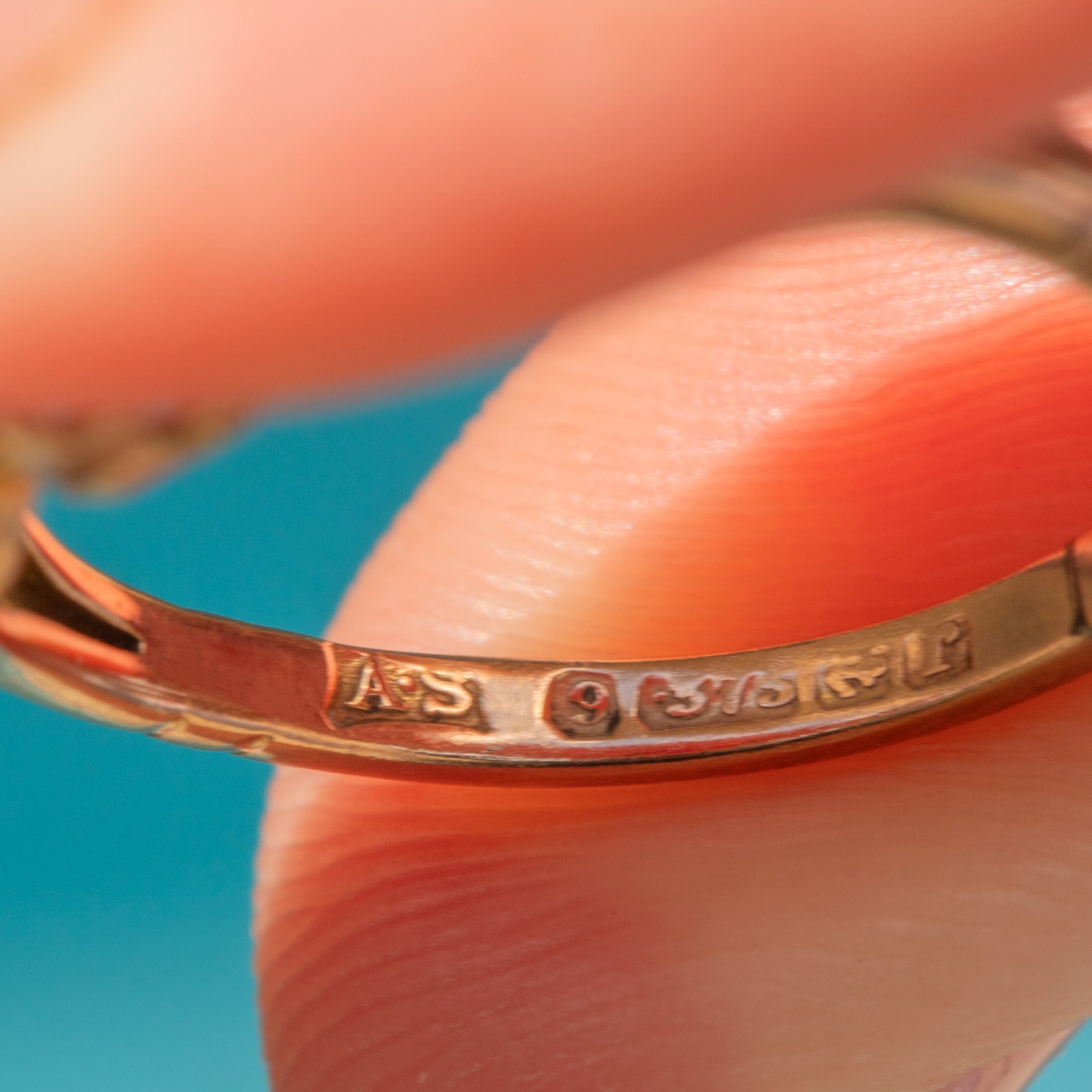 AS Makers mark, 9, .375, Birmingham Anchor, Date letter r for the year 1916.