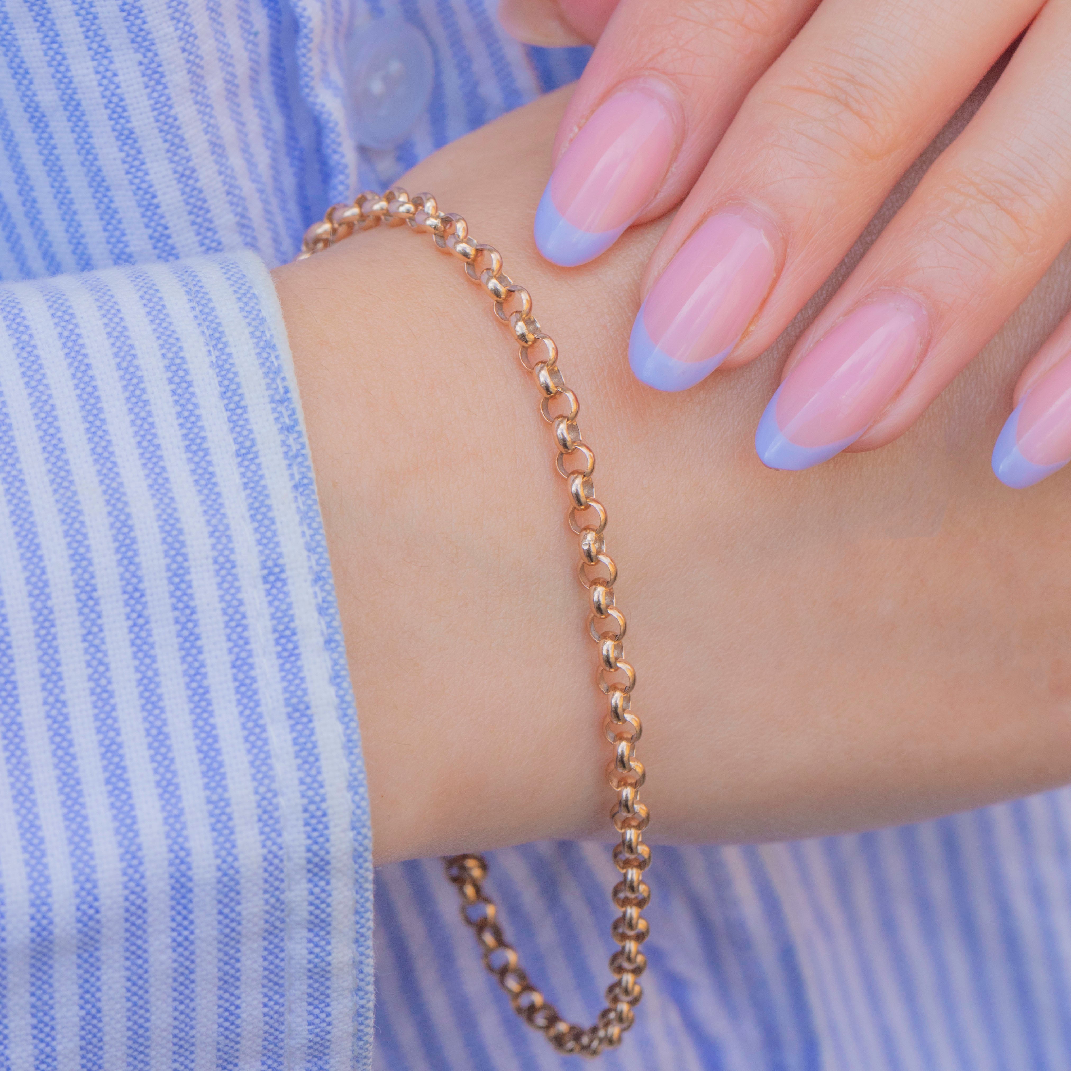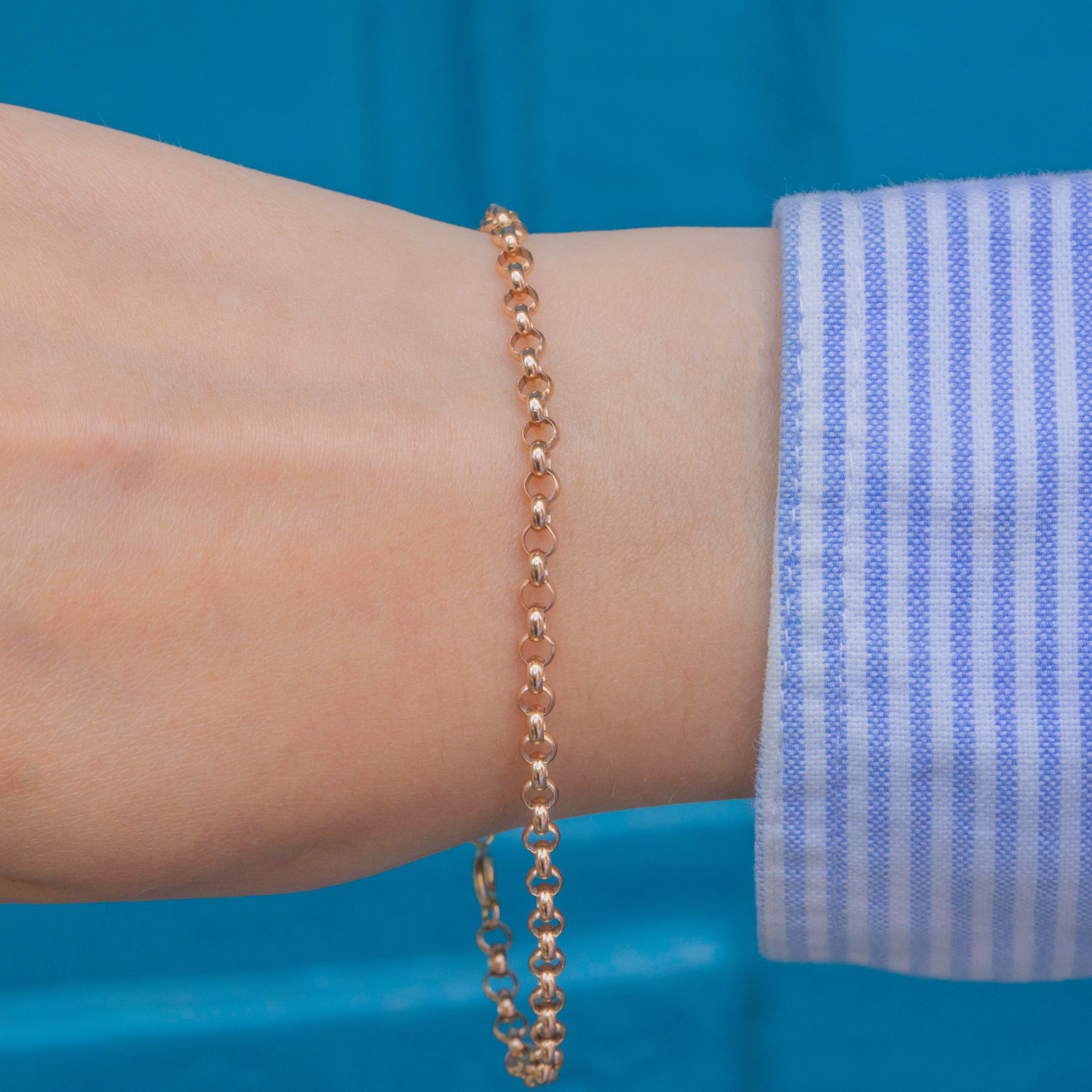 Crafted entirely from rosy 9ct Gold, this glossy bracelet drapes delicately around your wrist like liquid Gold. As with most Victorian chains, she is highly versatile, with her chunky belcher links making this piece ideal for everyday wear, whether worn alone or stacked with your other favourite bracelets!