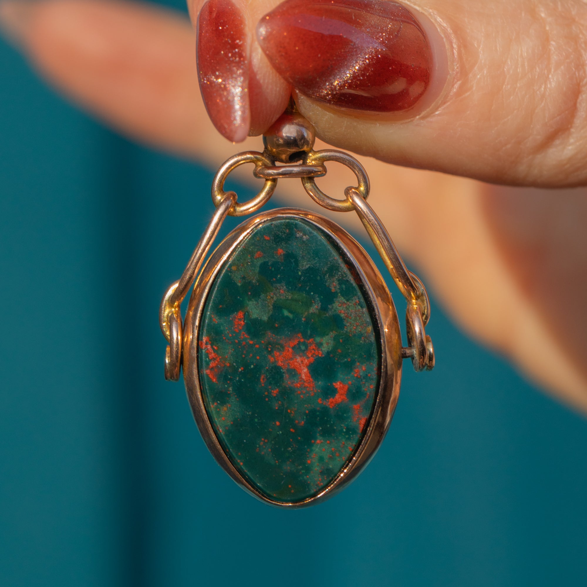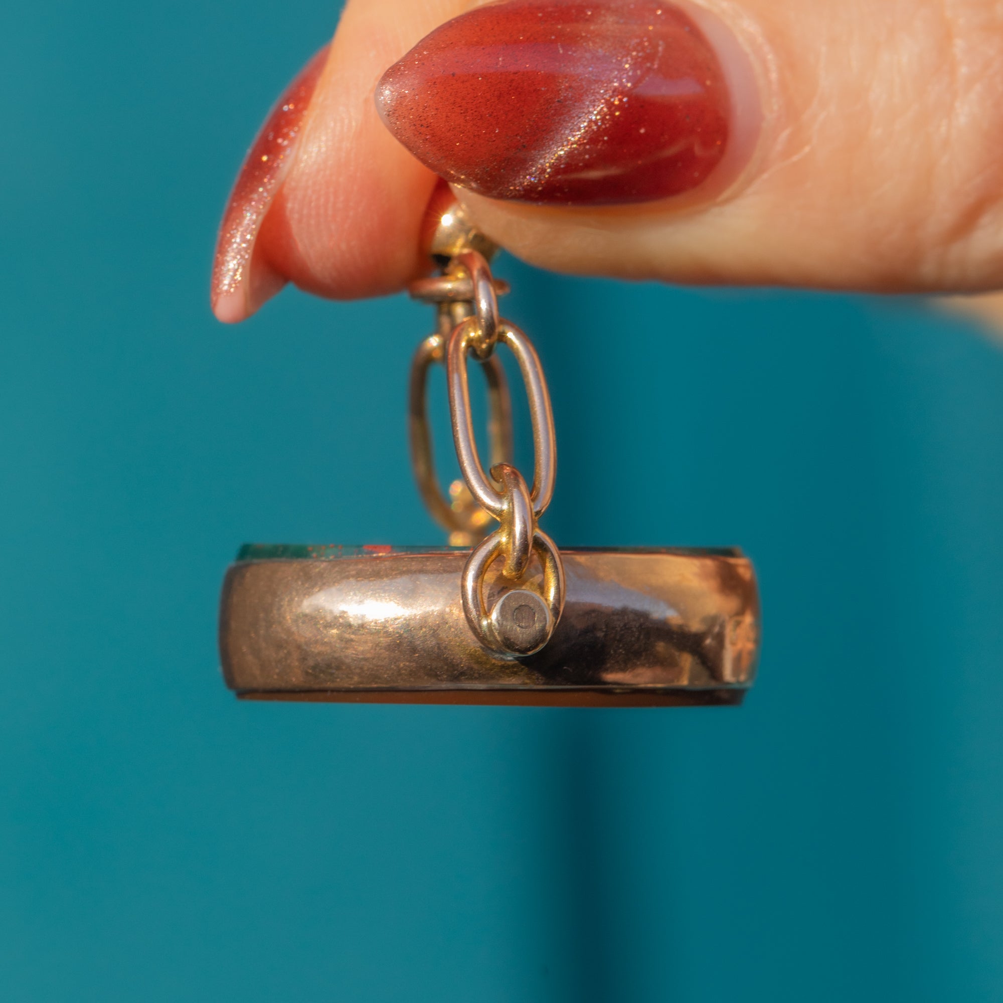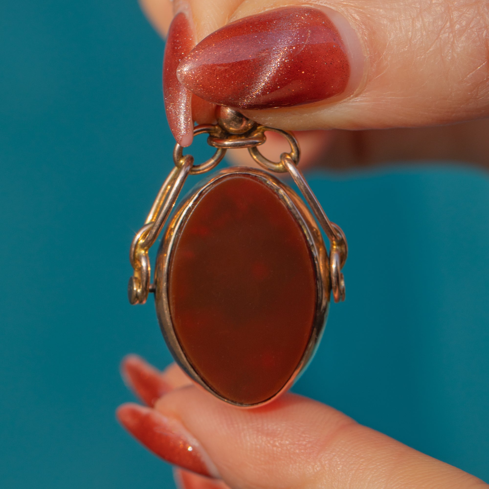 Antique 9ct Gold Bloodstone Carnelian Spinner Fob Pendant, c.1912