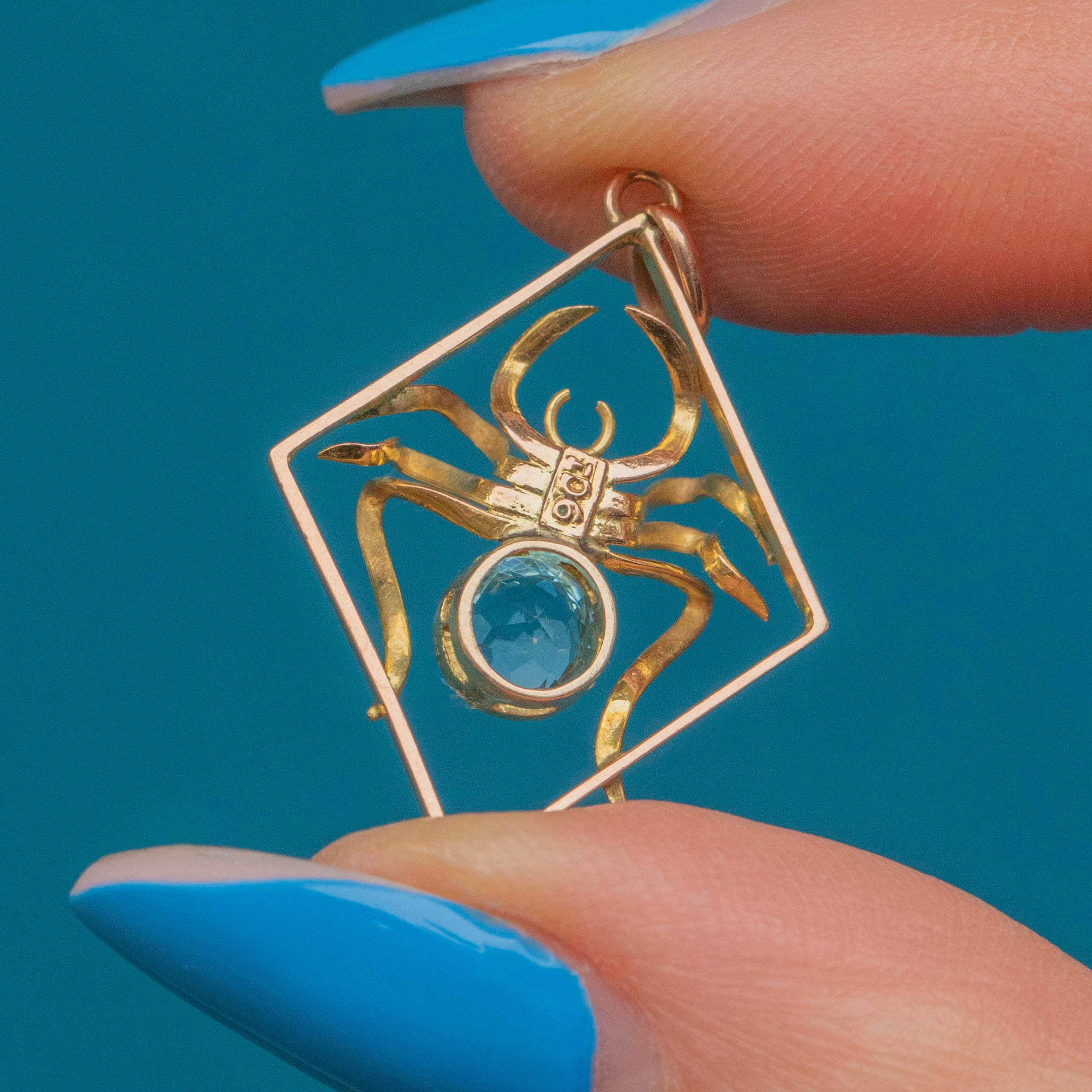 Antique 9ct Gold Blue Paste Spider Pendant