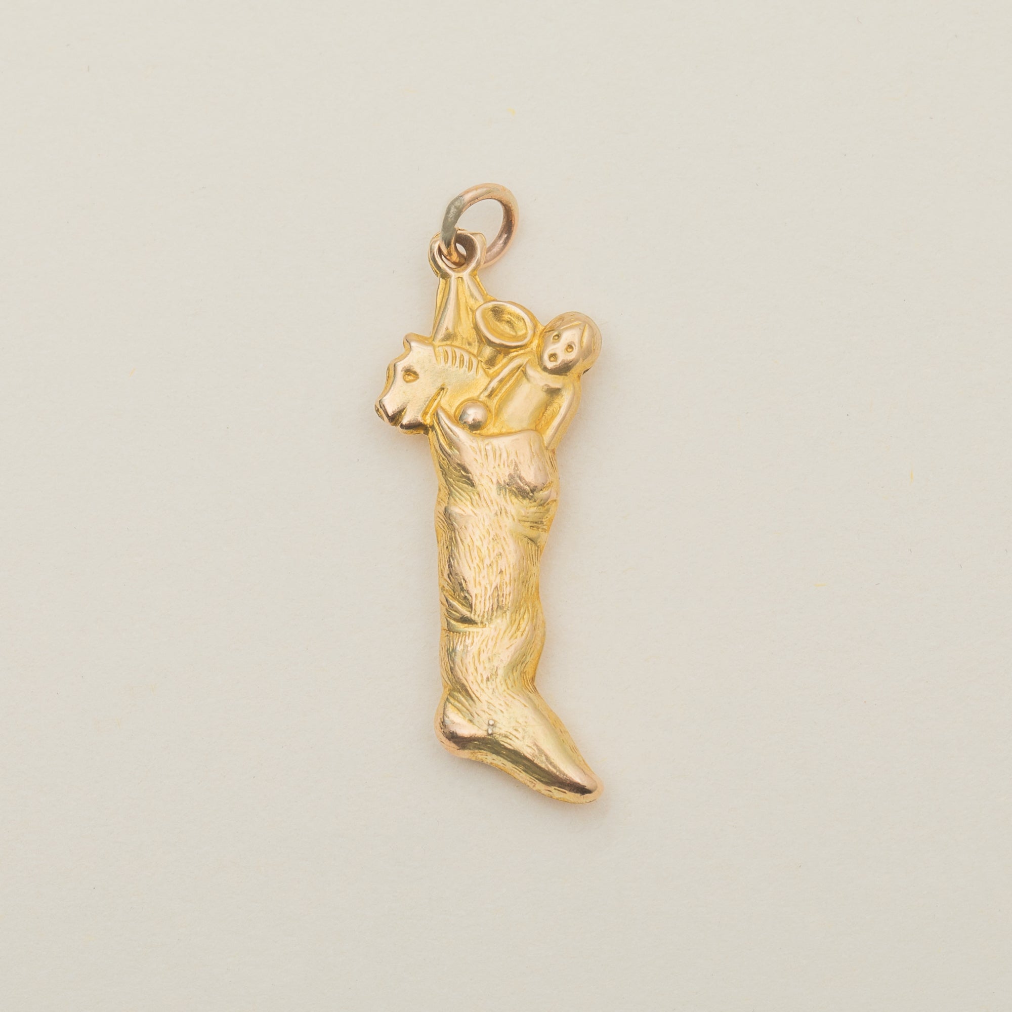 EXCELLENT. This antique 9ct Gold Christmas stocking charm is in perfect condition. Bright and smooth with no damage!