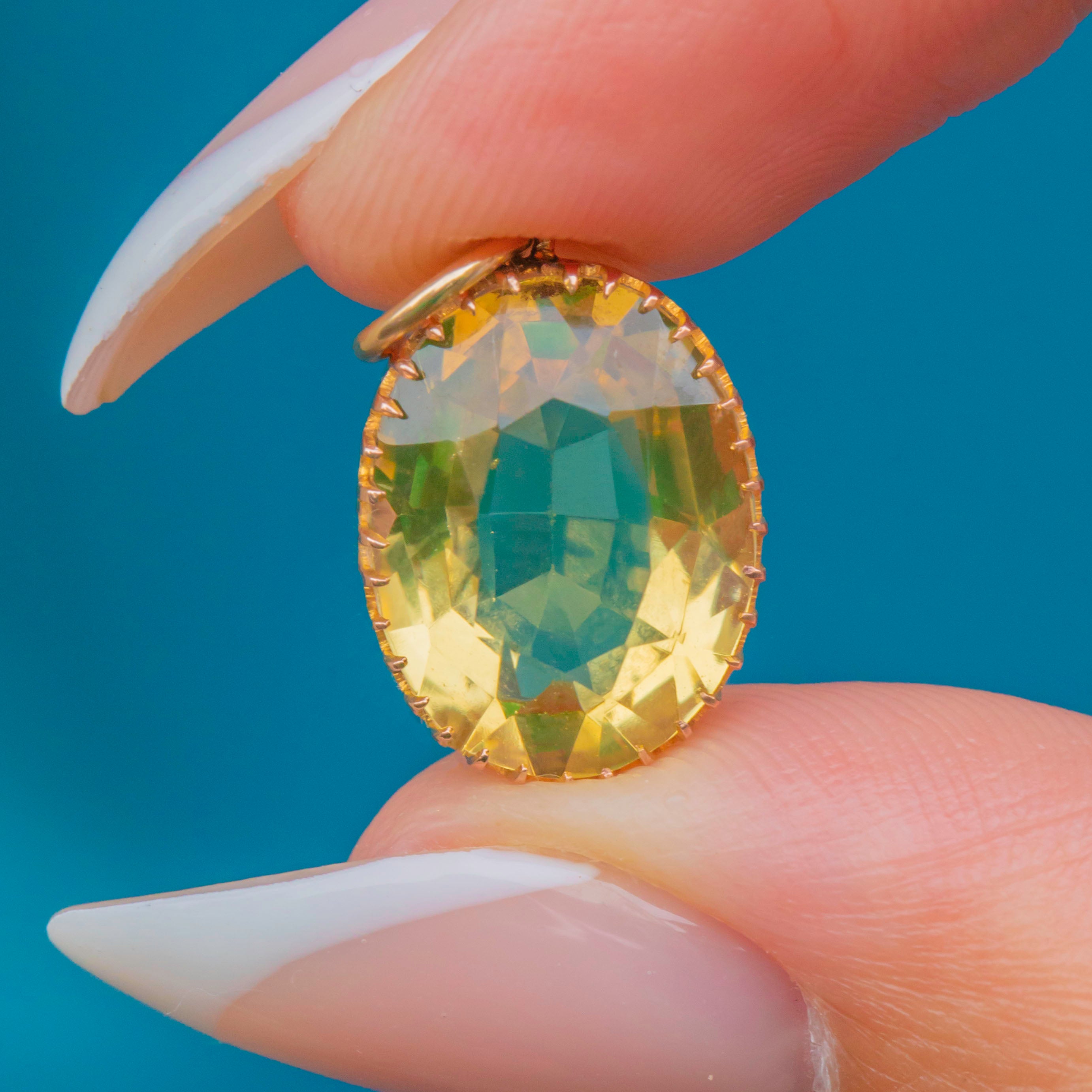 This antique 9ct Gold Citrine charm is a joyful little treasure! Sure to warm up the darkest of days, the wonderful 4.20ct Citrine shimmers with bright lemony hues as its crisp-cut facets dance in the light.