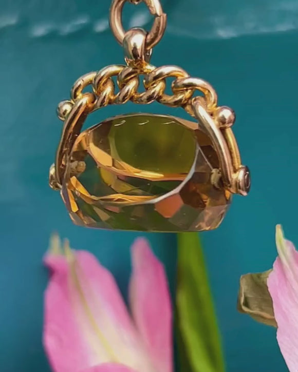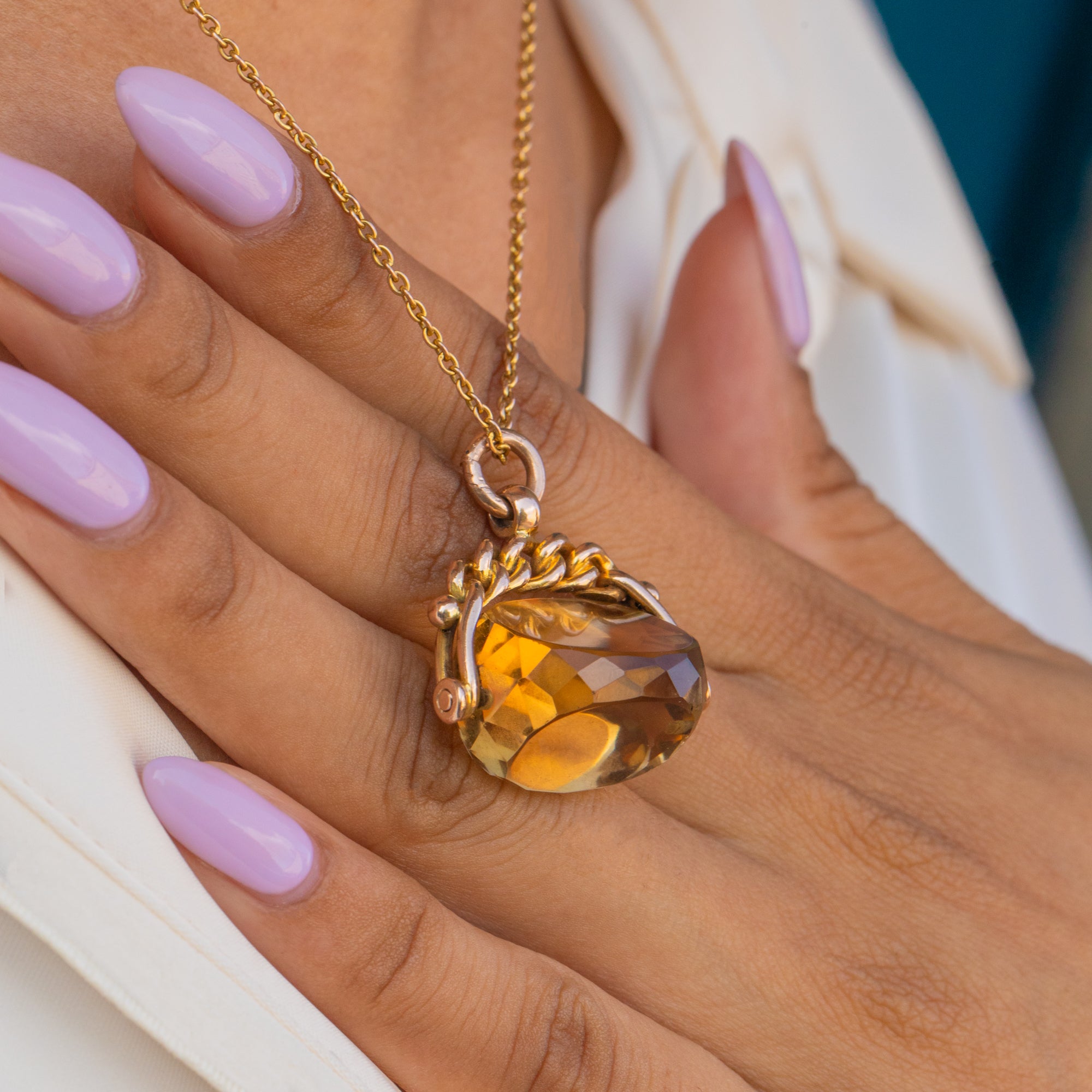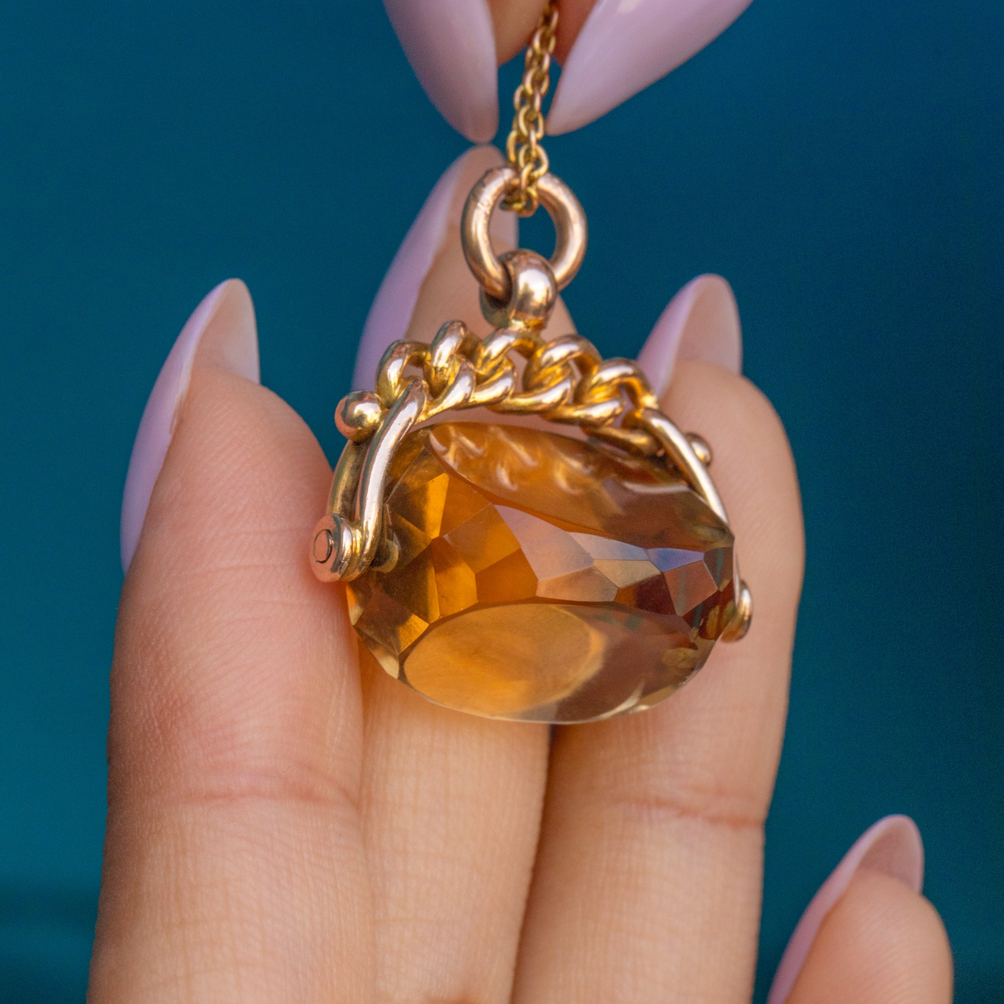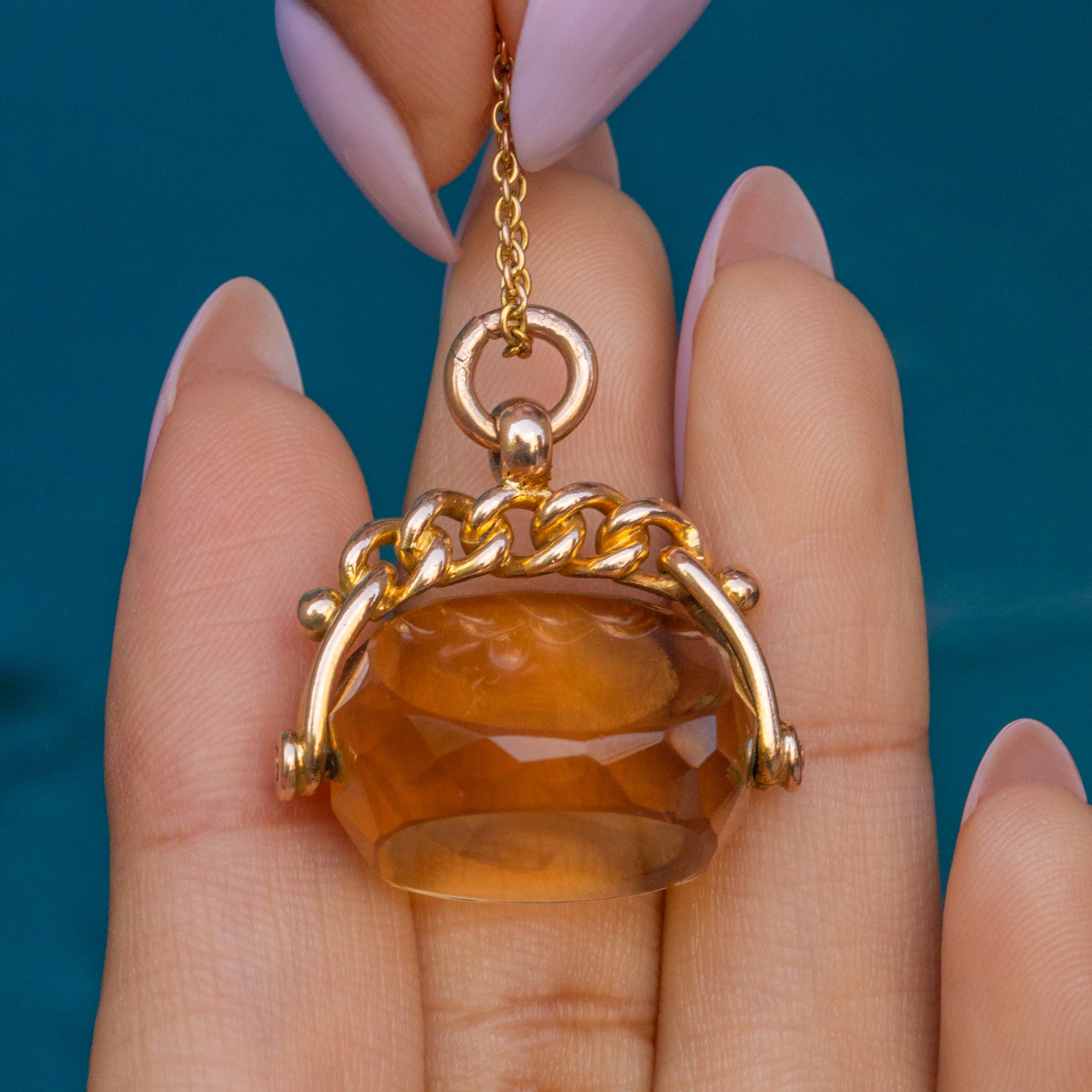 Antique 9ct Gold Citrine Spinner Fob Pendant, 12.76ct