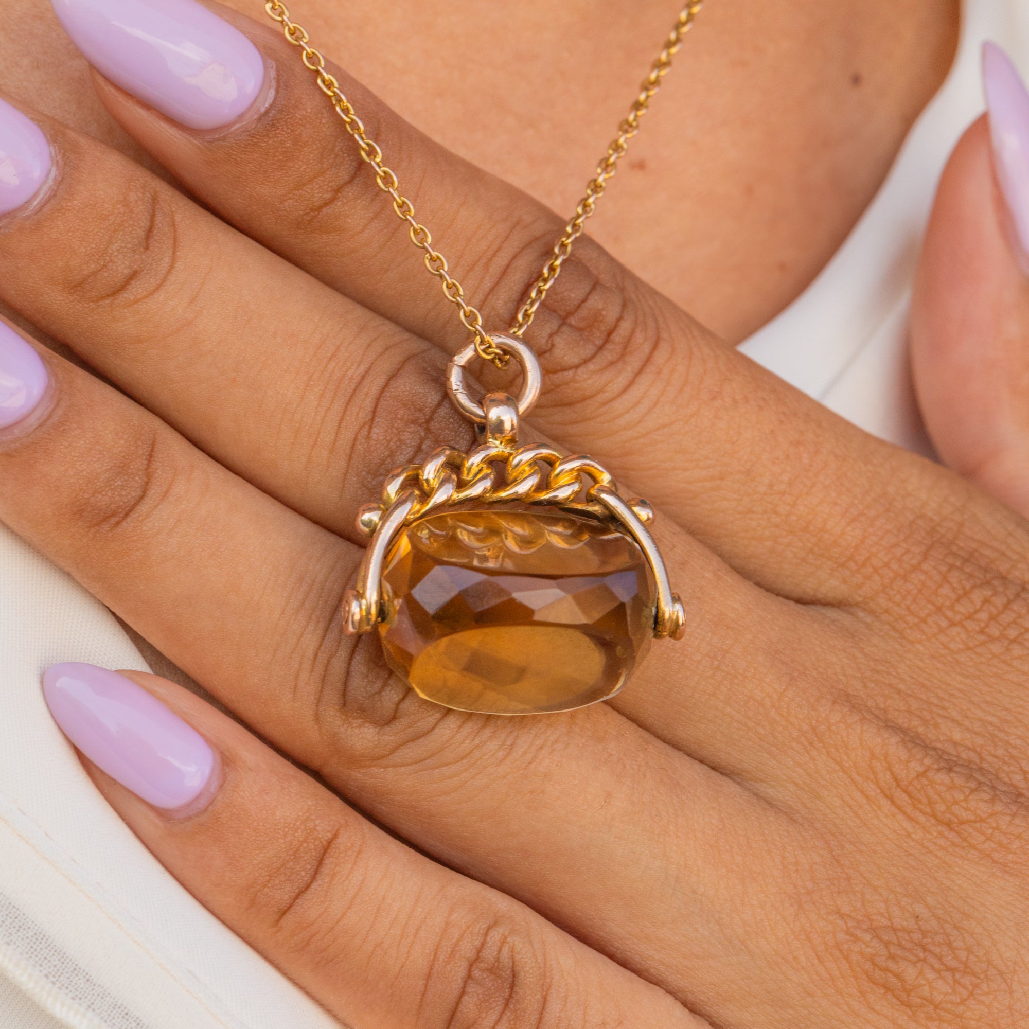 This antique spinner pendant will hang beautifully from a Gold chain, with her Citrine sitting smooth against your skin and the facets glittering under the light! The swivelling feature adds an extra playful touch, ensuring you never get bored of wearing her!