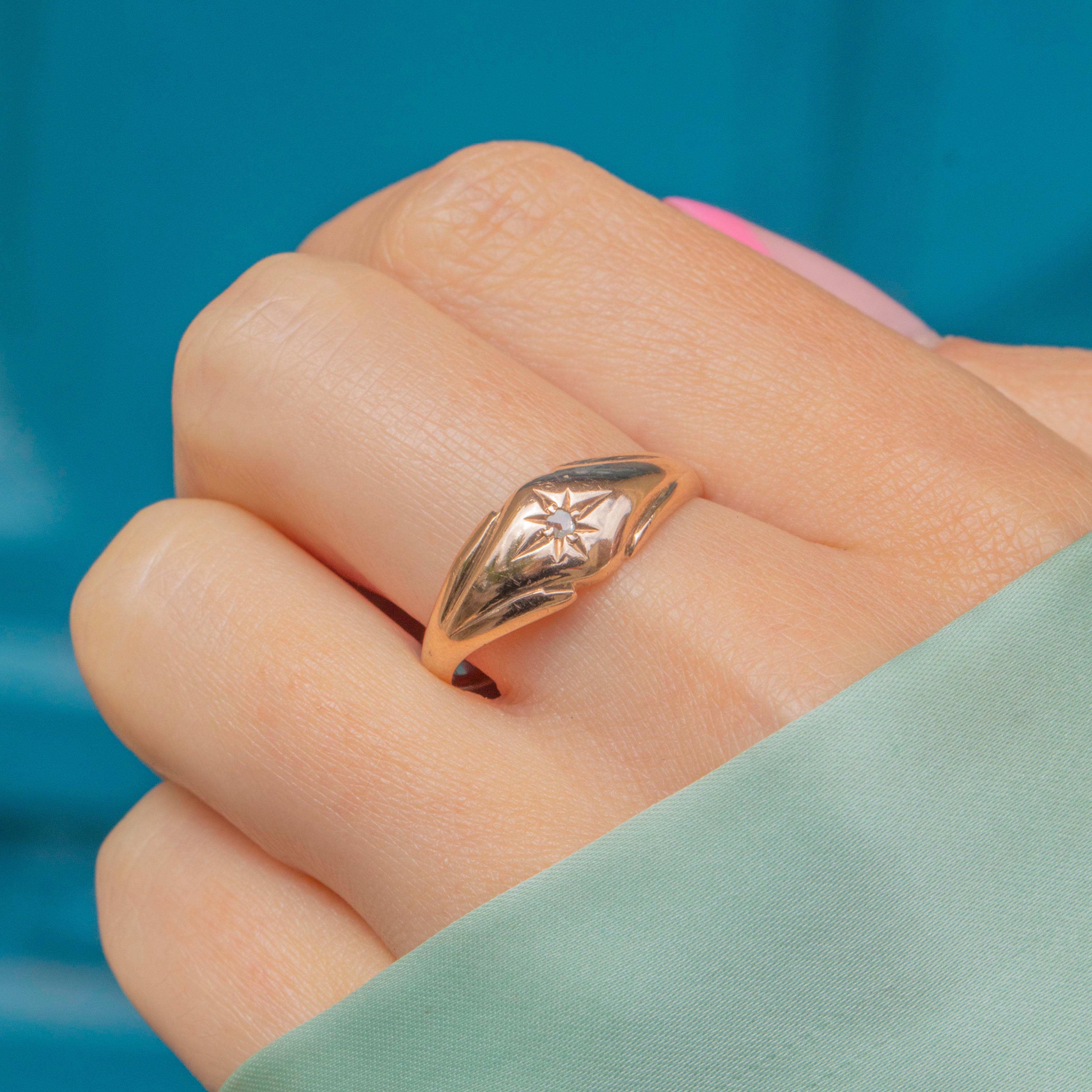 Dated to 1913, this 9ct Gold Diamond star set gypsy ring radiates antique allure!
