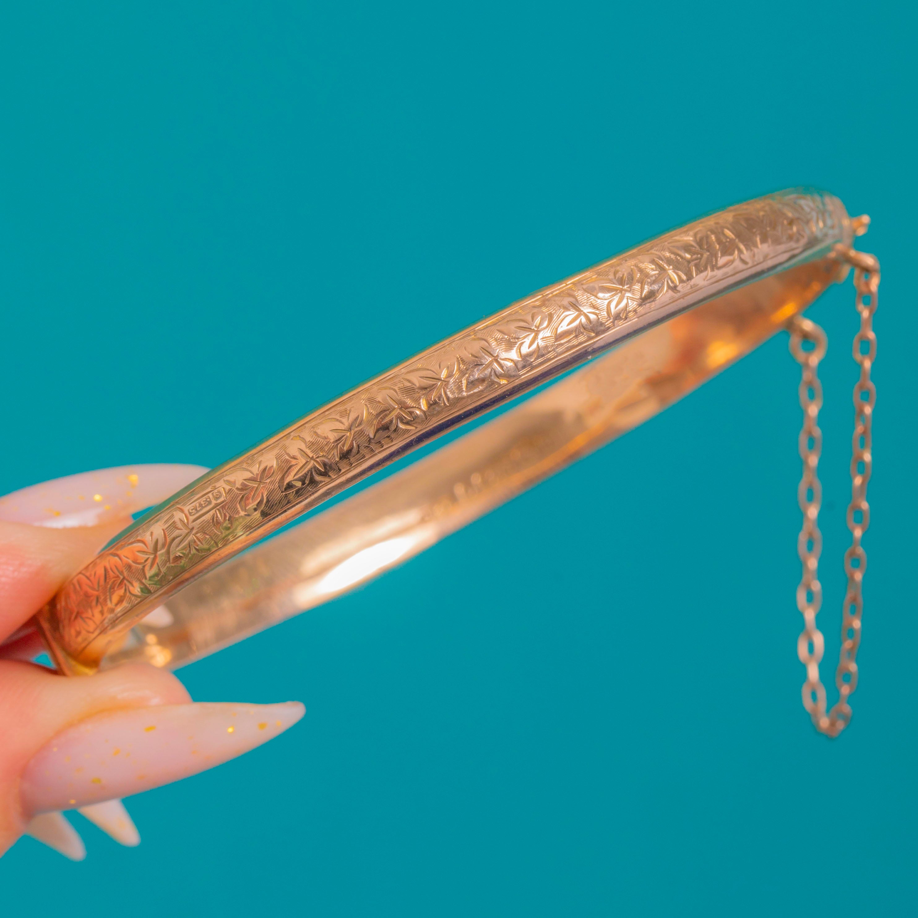 Antique 9ct Gold Engraved Bangle c.1912