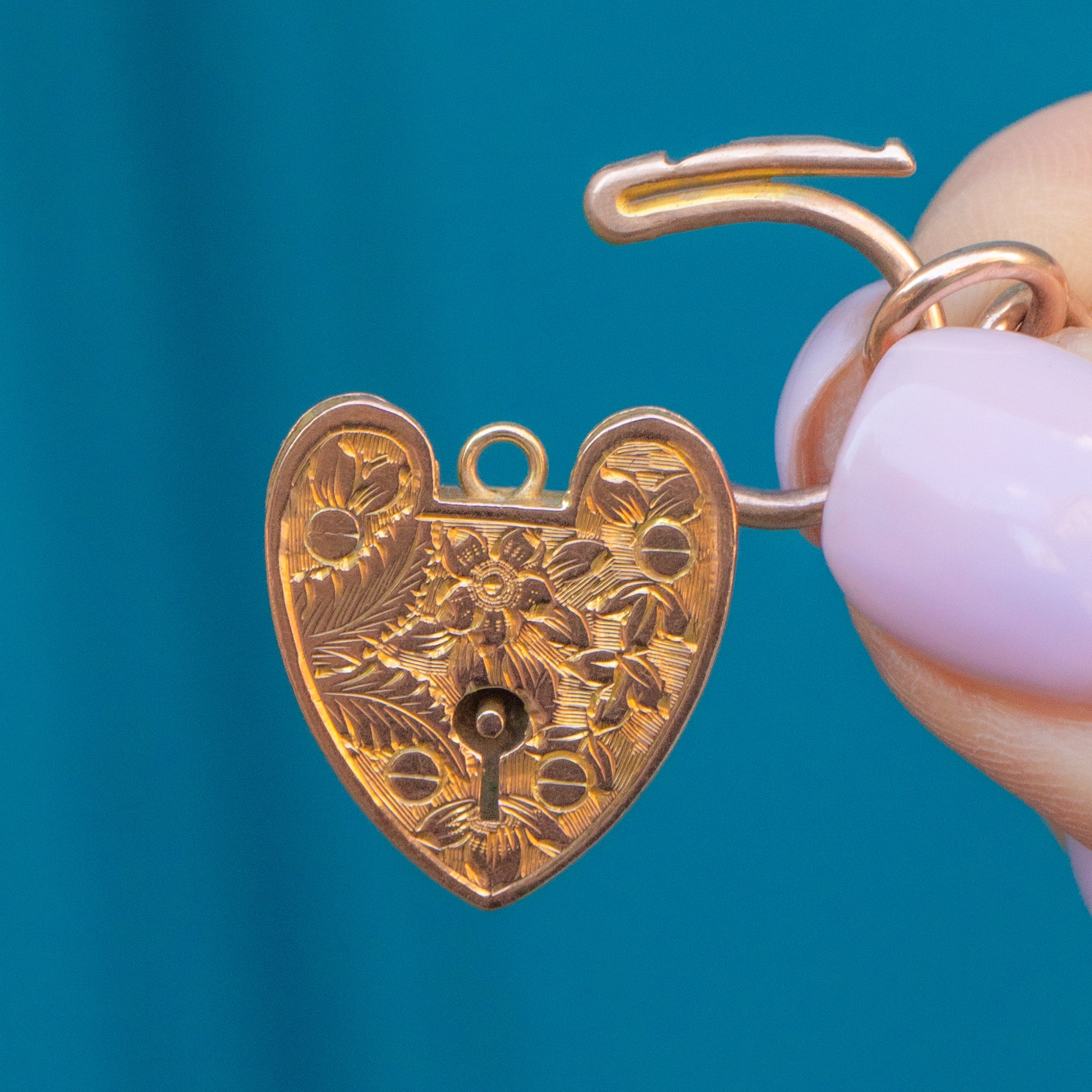 Antique 9ct Gold Engraved Gate Bracelet, Heart Padlock