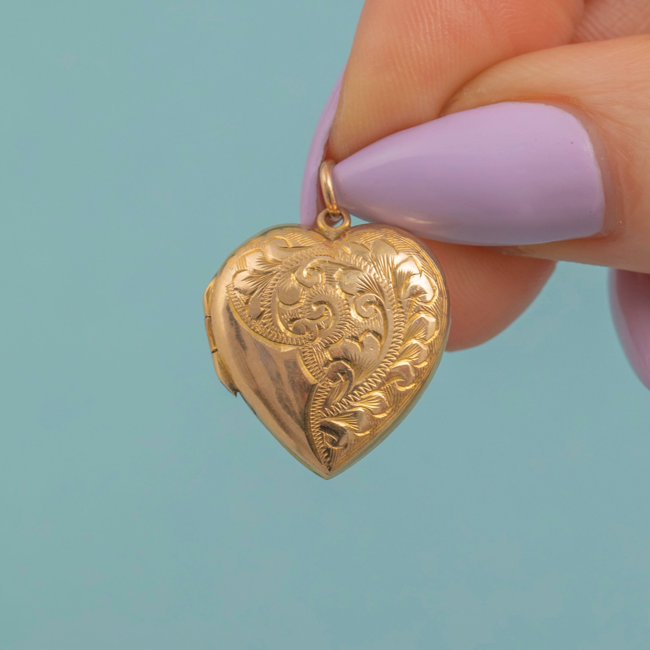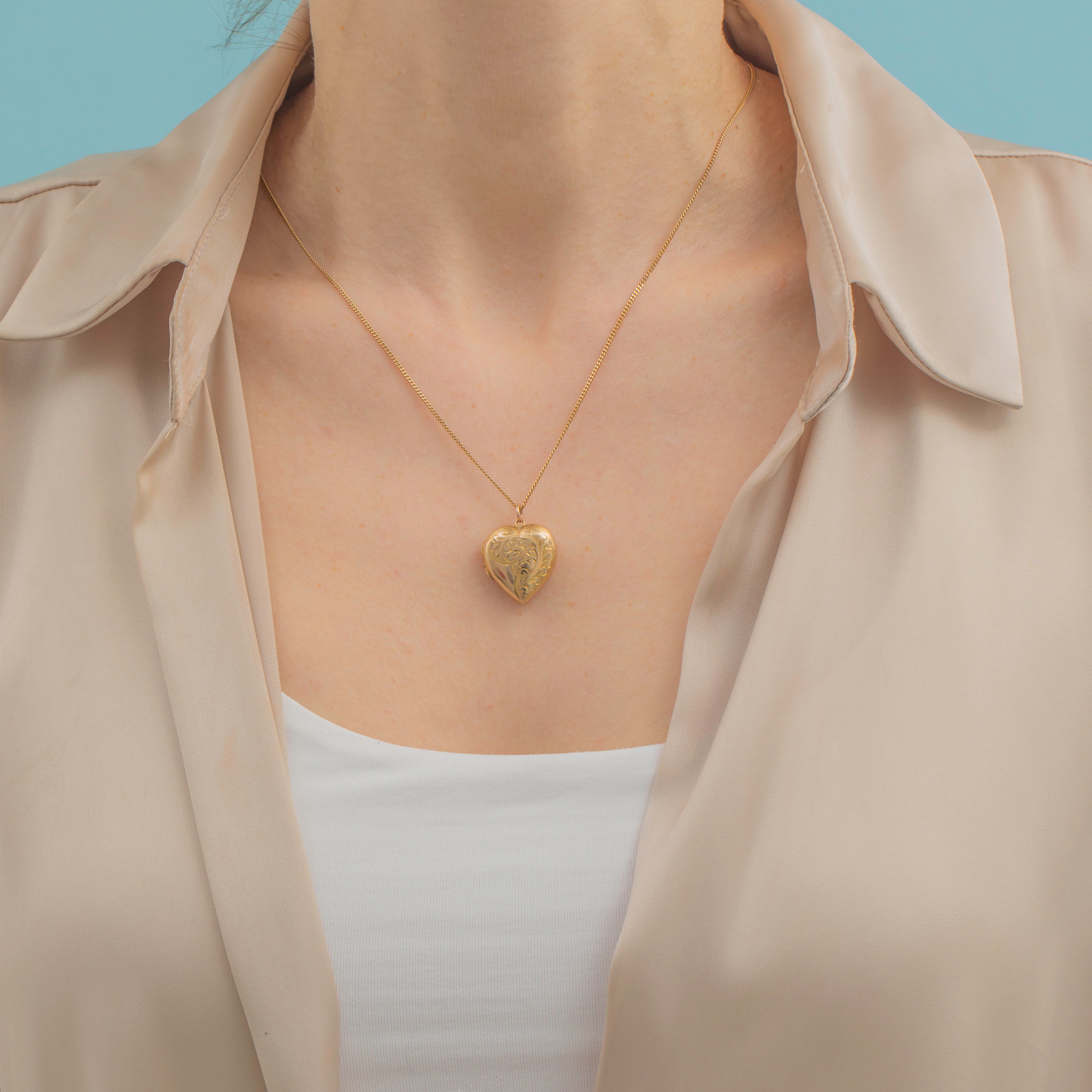Antique 9ct Gold Engraved Heart Locket