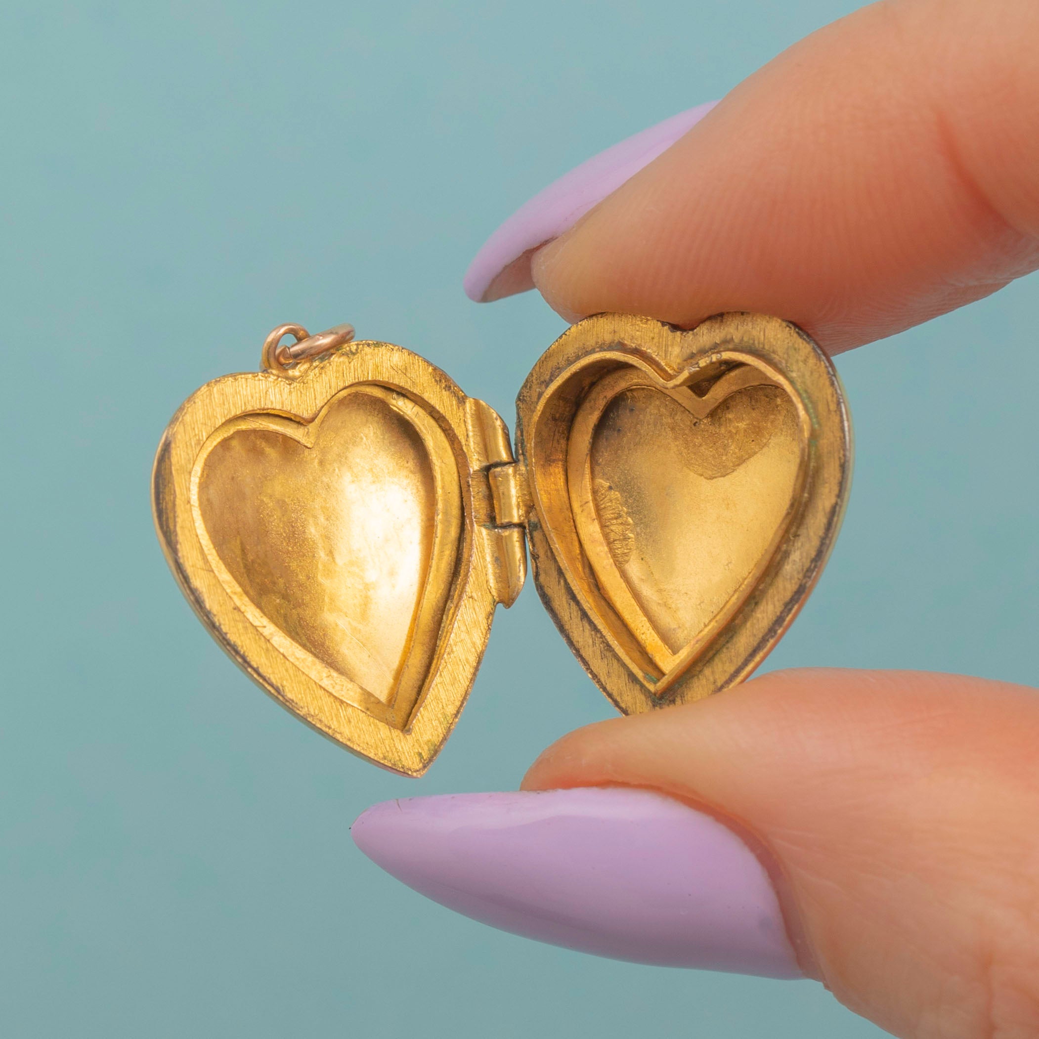 A piece that'll bring joy time and time again, this dainty, buttery bright Yellow Gold antique locket boasts two heart-shaped frames, ready for you to insert your most precious photographs!