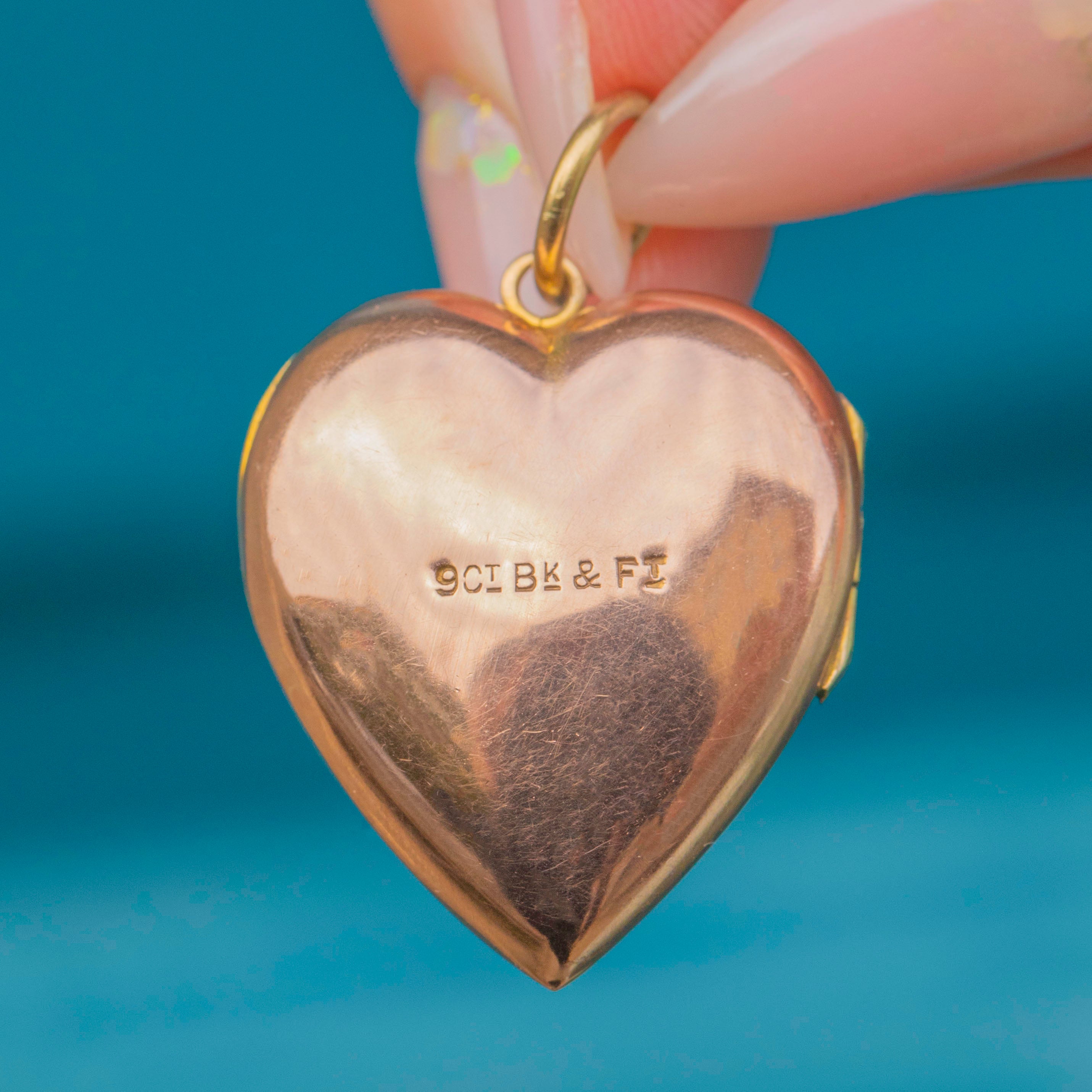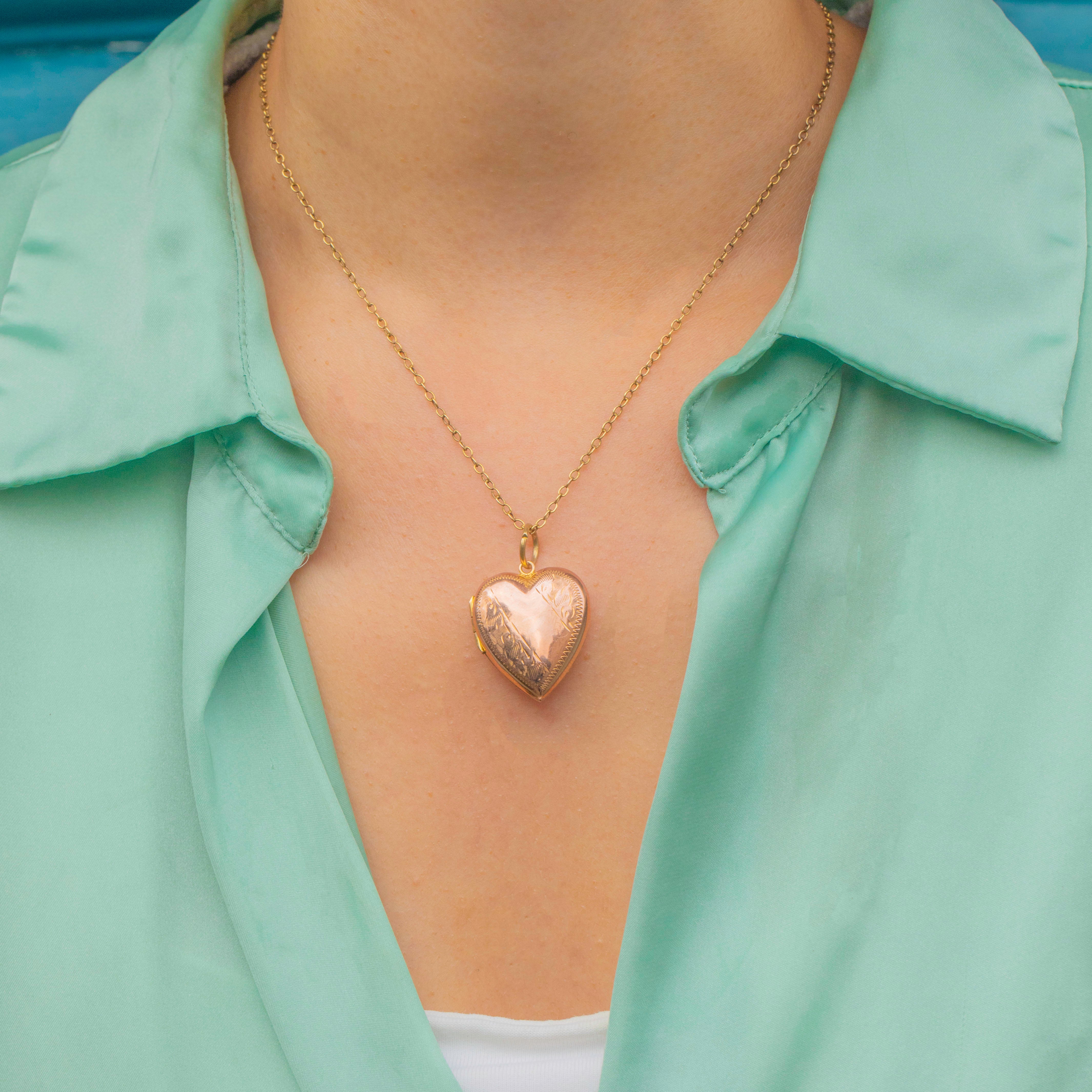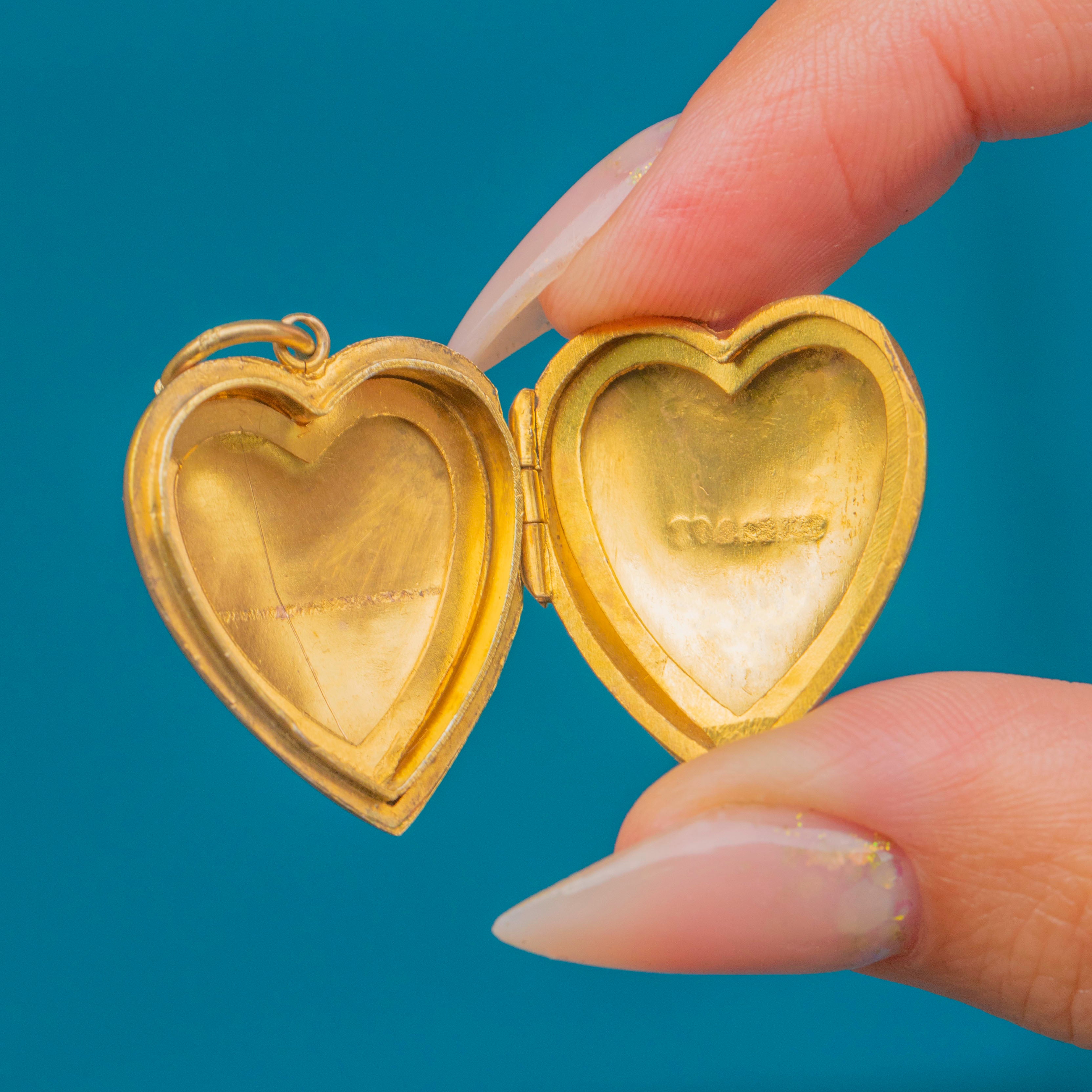 Antique 9ct Gold Engraved Heart Locket