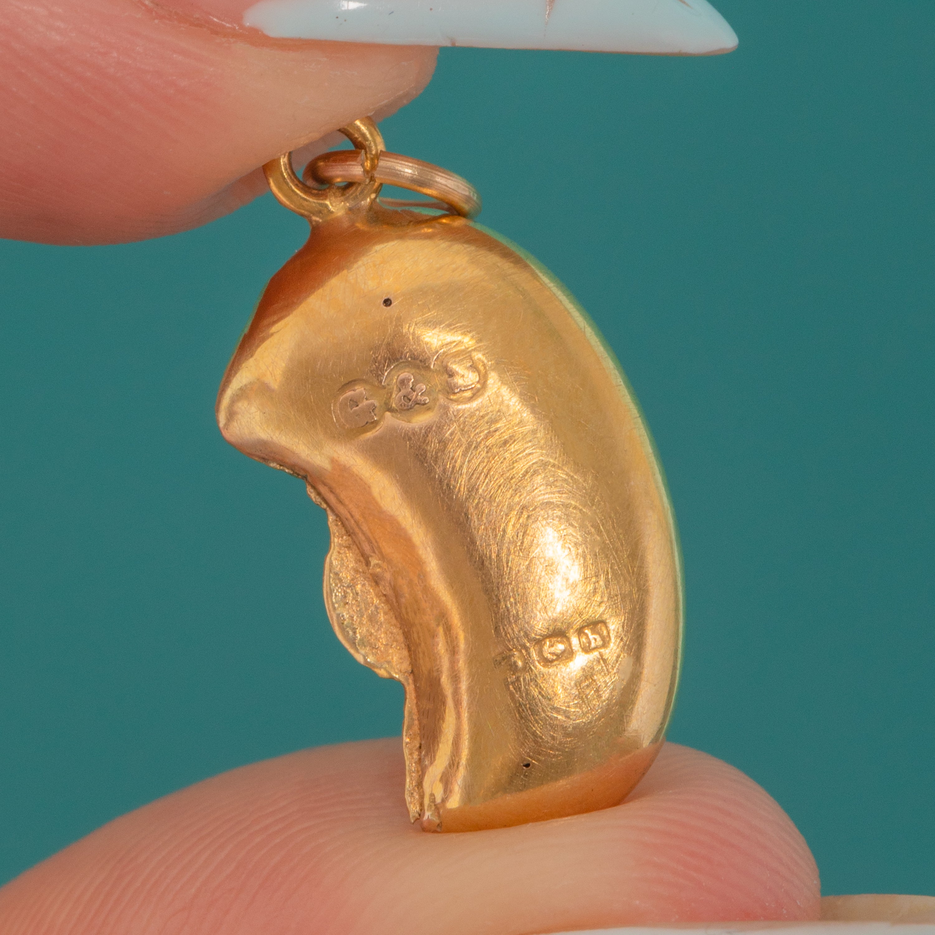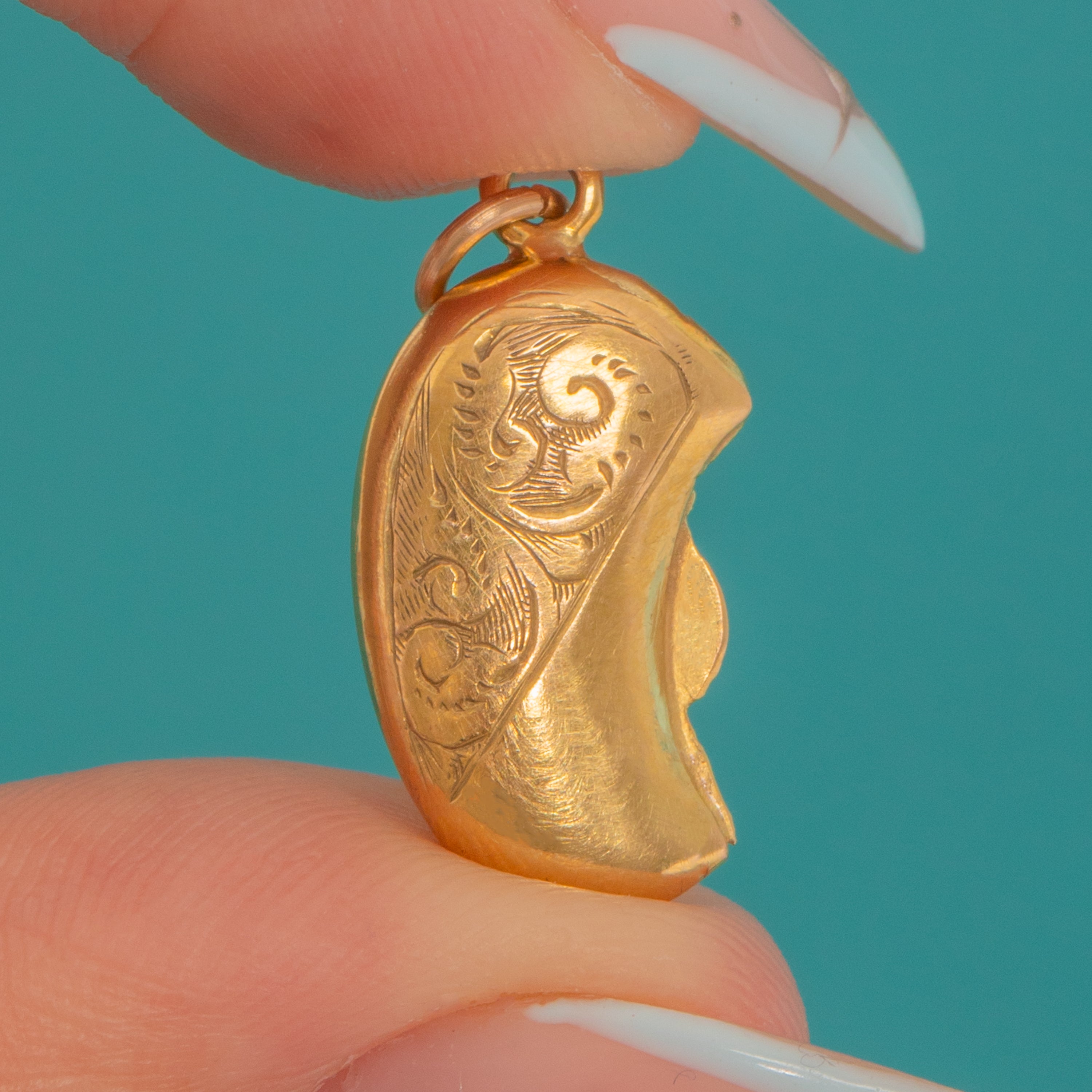 Antique 9ct Gold Engraved Lucky Bean Charm c.1907