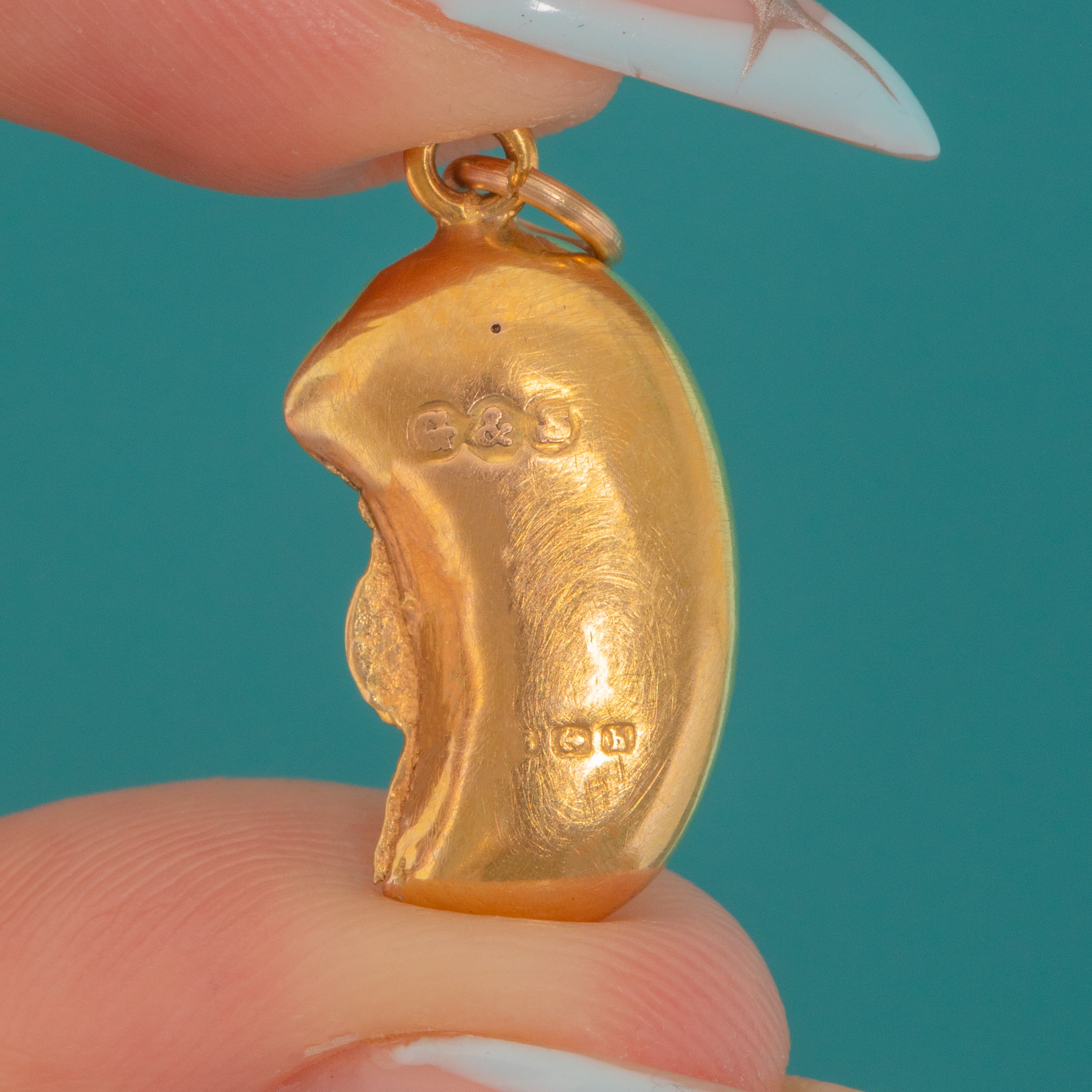 Antique 9ct Gold Engraved Lucky Bean Charm c.1907