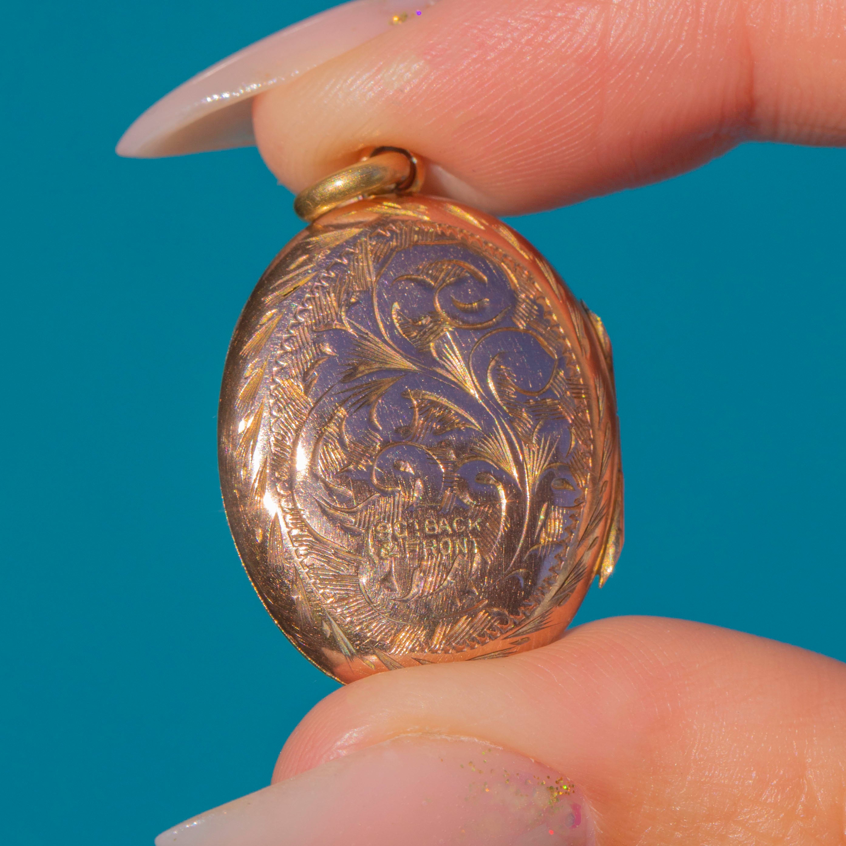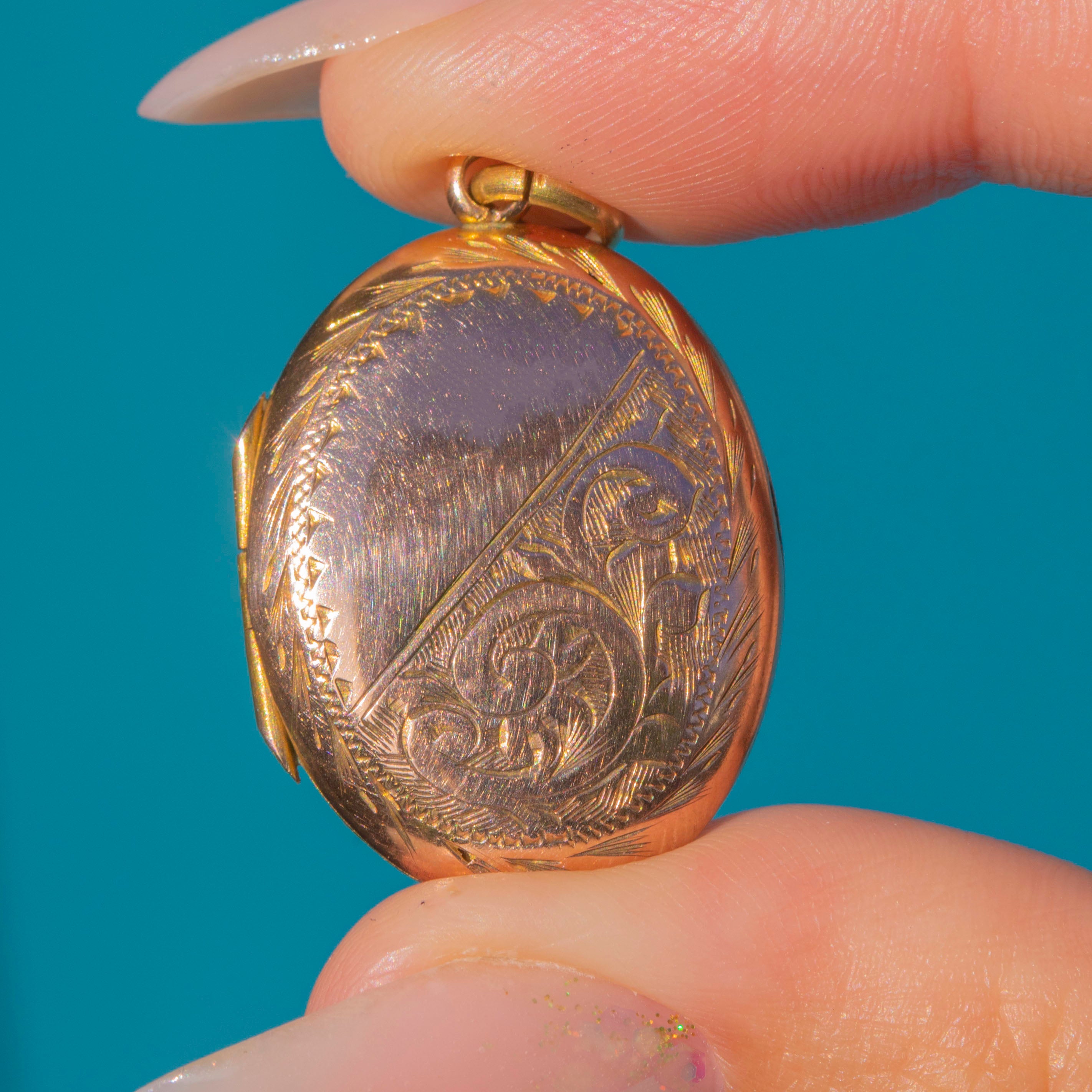 EXCELLENT: The engraving is crisp and clear, with the Gold retaining a lovely antique glow. The locket closes securely and shows no dents or damage, a fine Edwardian keepsake.