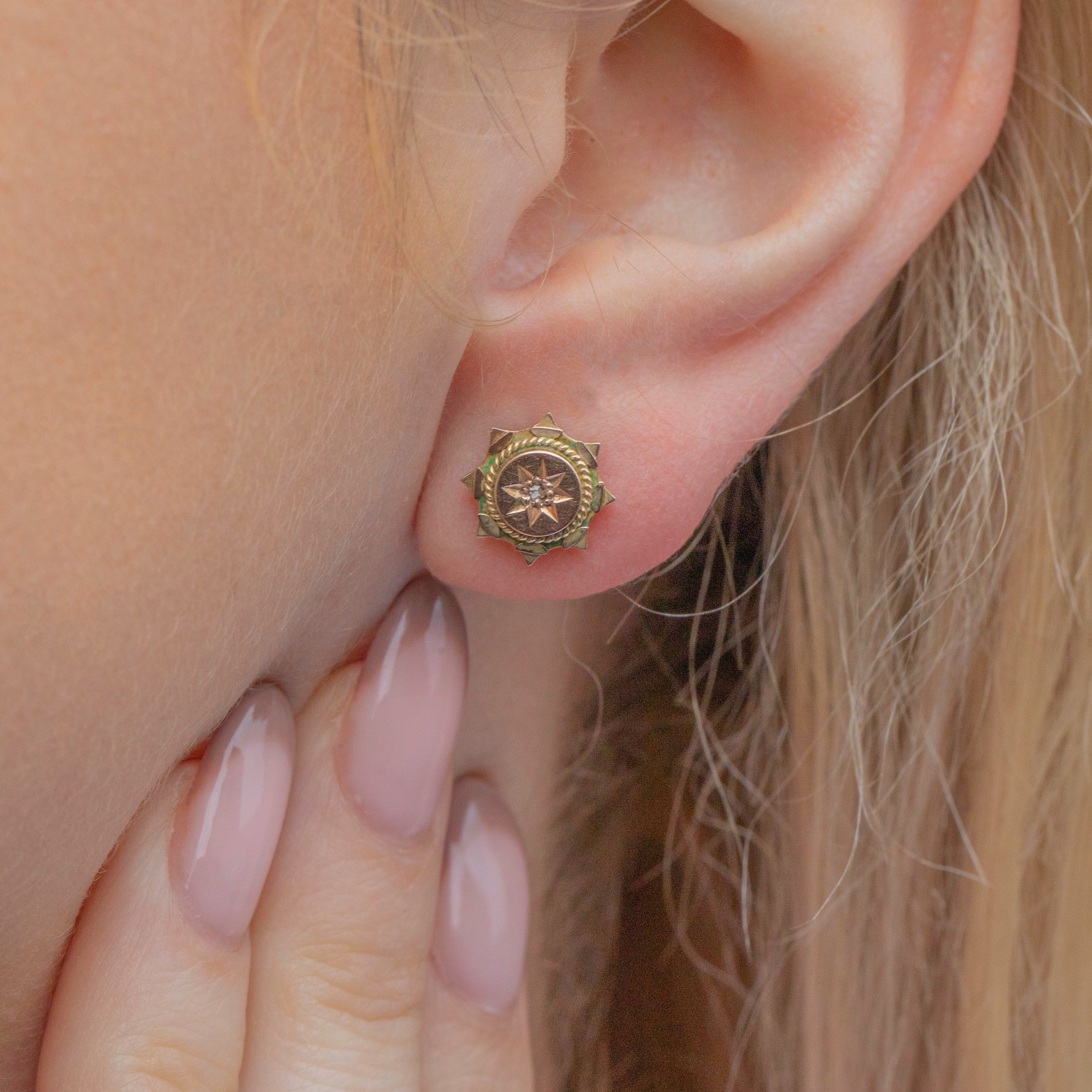 Bring sunshine to your lobes with these gorgeous and oh-so-bright antique 9ct Gold Etruscan Diamond stud earrings!