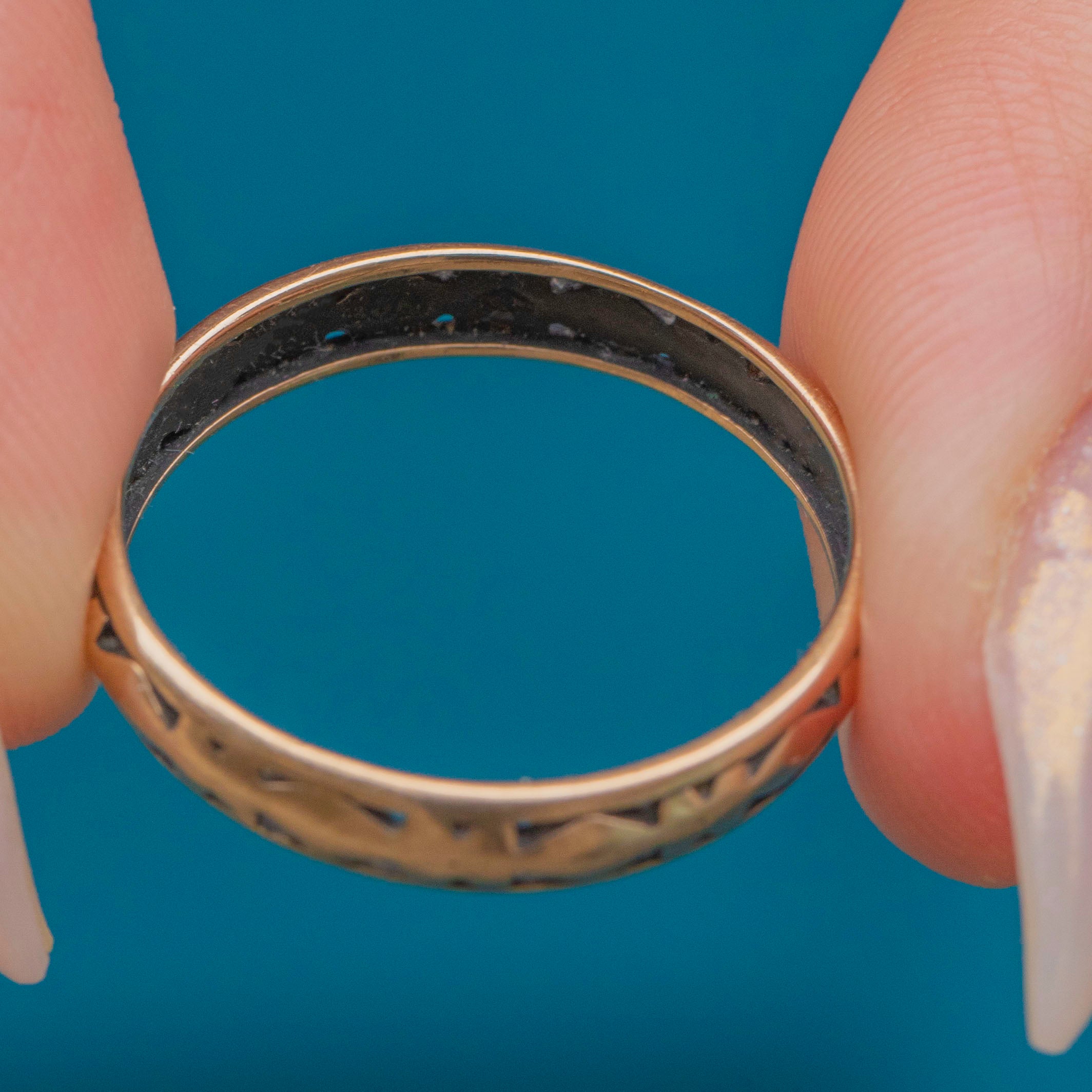 EXCELLENT: This band is beautifully preserved with no visible wear. The pierced detailing is crisp and intact, and the 9ct Gold shows a warm, polished glow. A superb example of Victorian craftsmanship, ready to wear immediately.