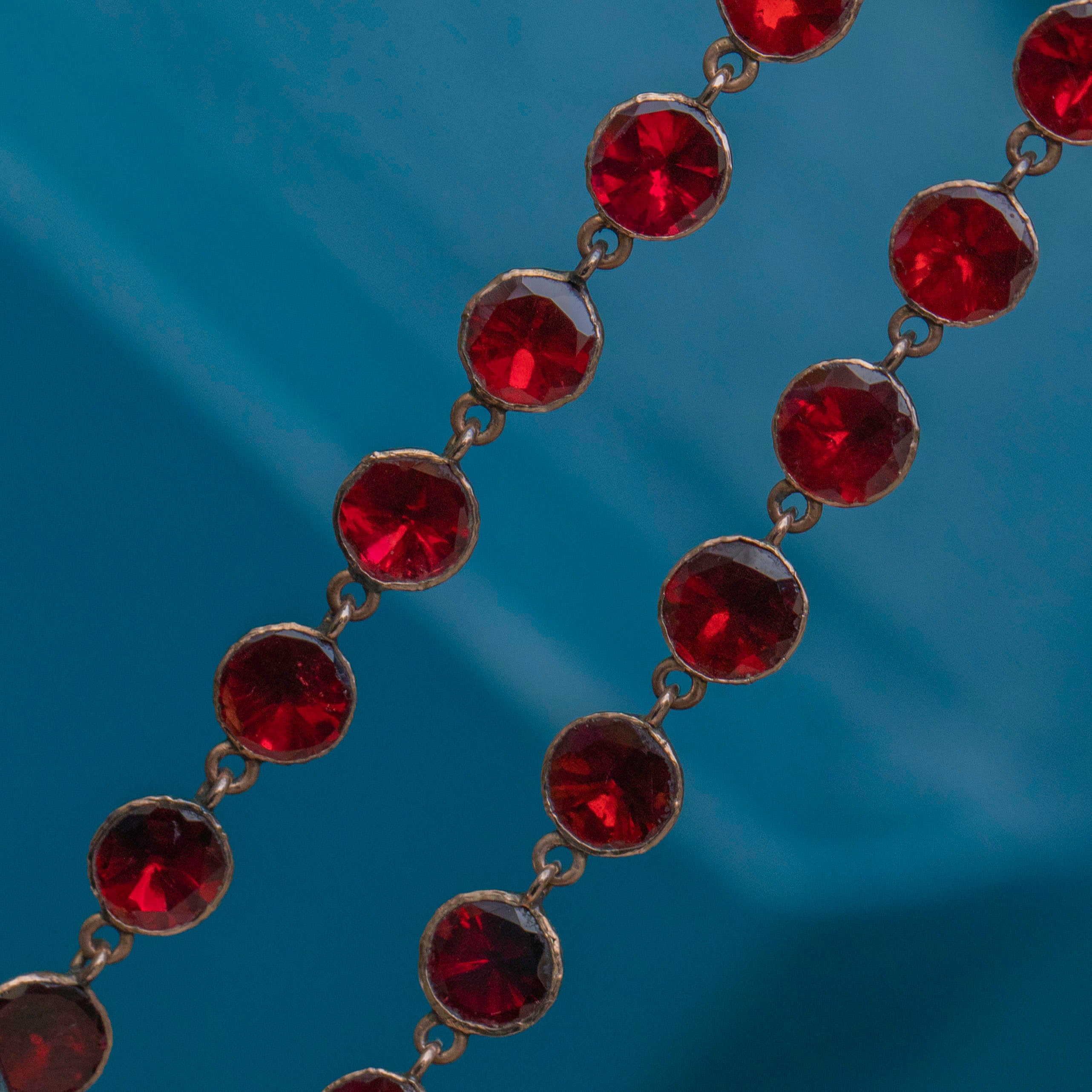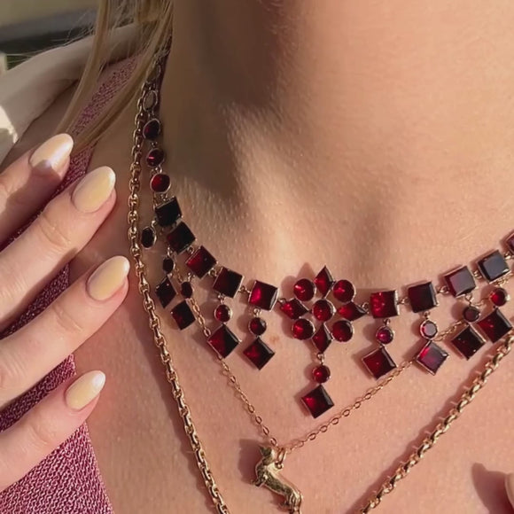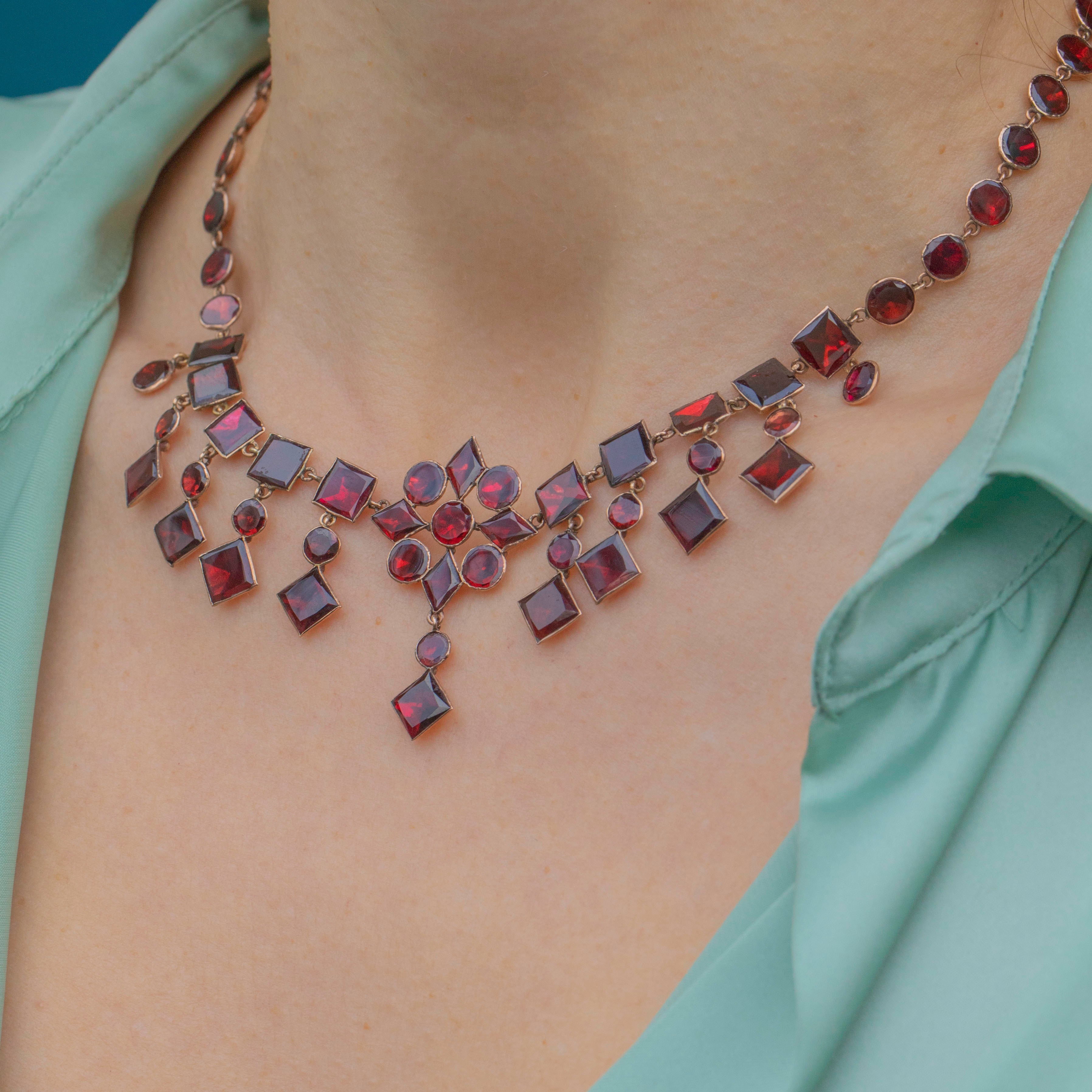 Antique 9ct Gold Flat-Cut Garnet Fringe Necklace, 28.00ct
