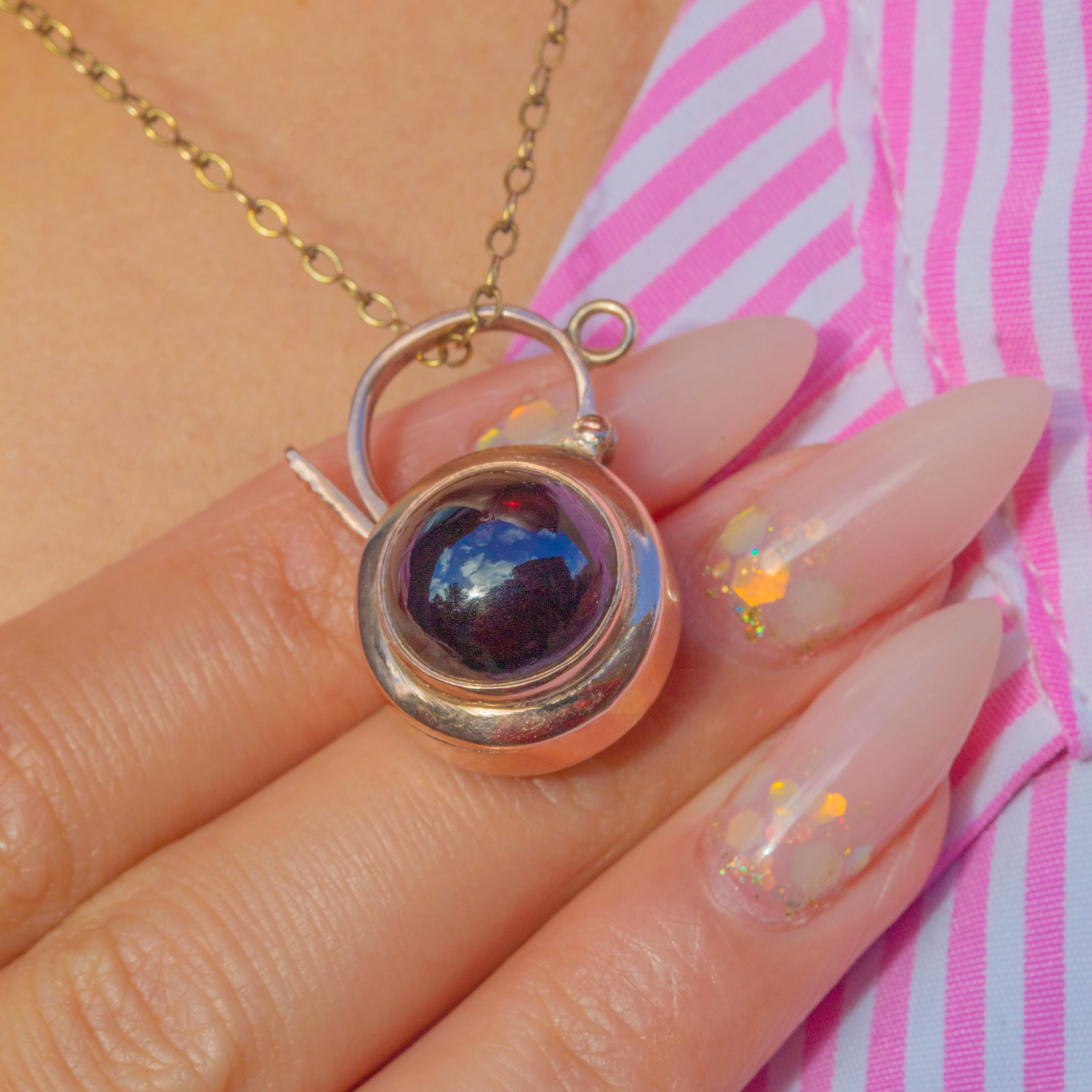 Antique 9ct Gold Garnet Cabochon Padlock Charm- 5.70ct Garnet