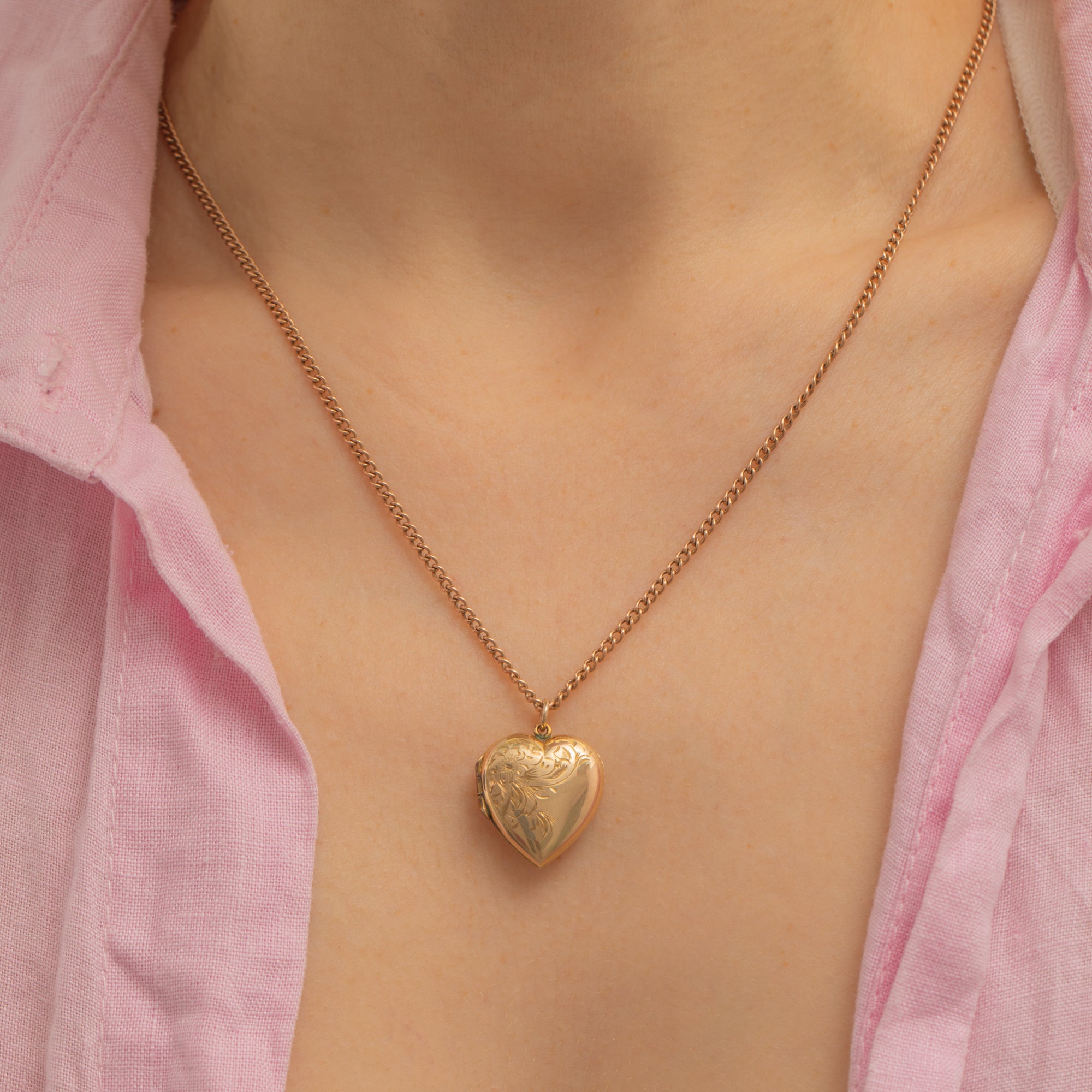 Antique 9ct Gold Half Engraved Forget-Me-Not Heart Locket