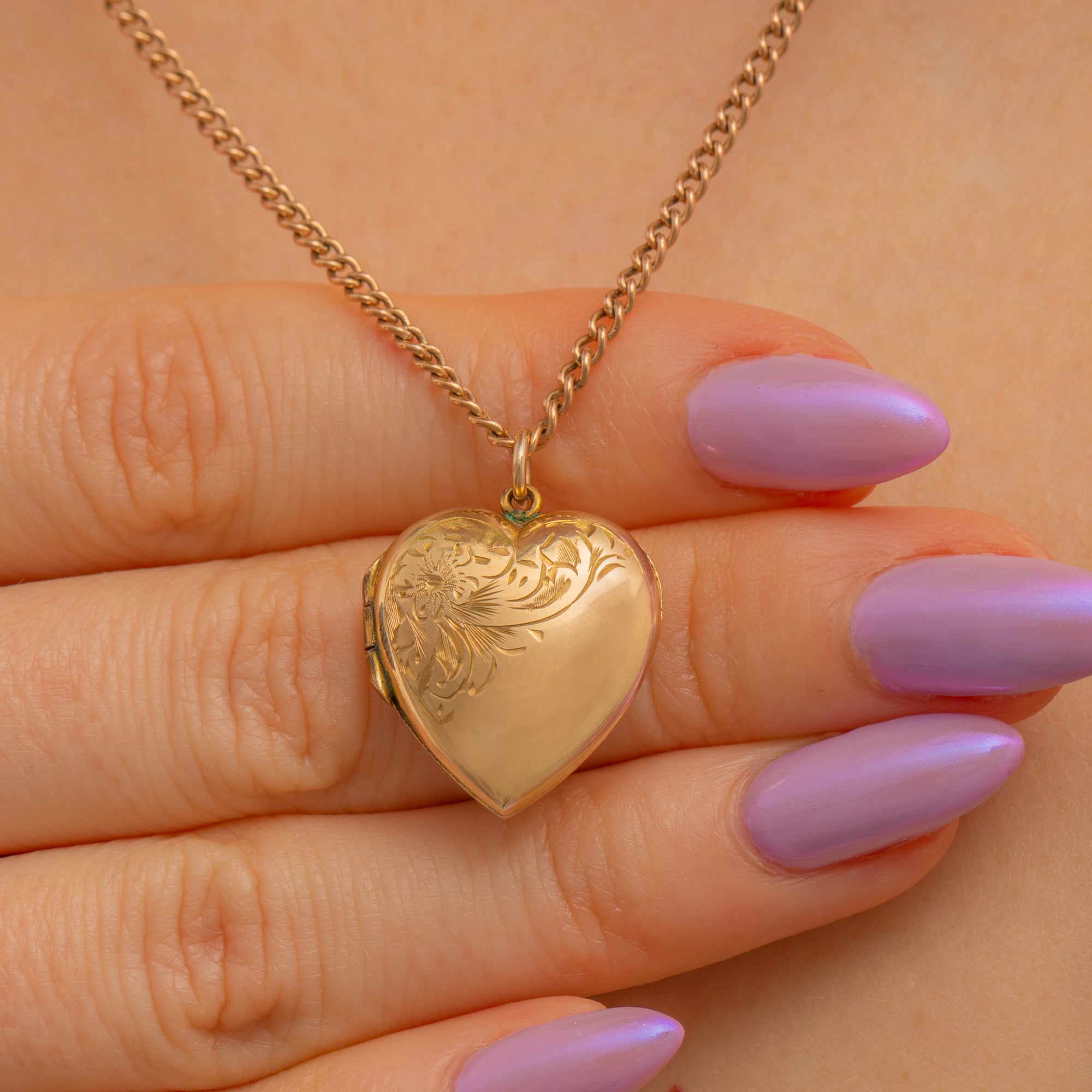 EXCELLENT. This antique 9ct Gold half engraved forget-me-not heart locke is in excellent condition, showing only mild wear consistent with its age. She opens and closes securely with a satisfying "click", with no visible damage or issues, making her a beautiful addition to your collection!