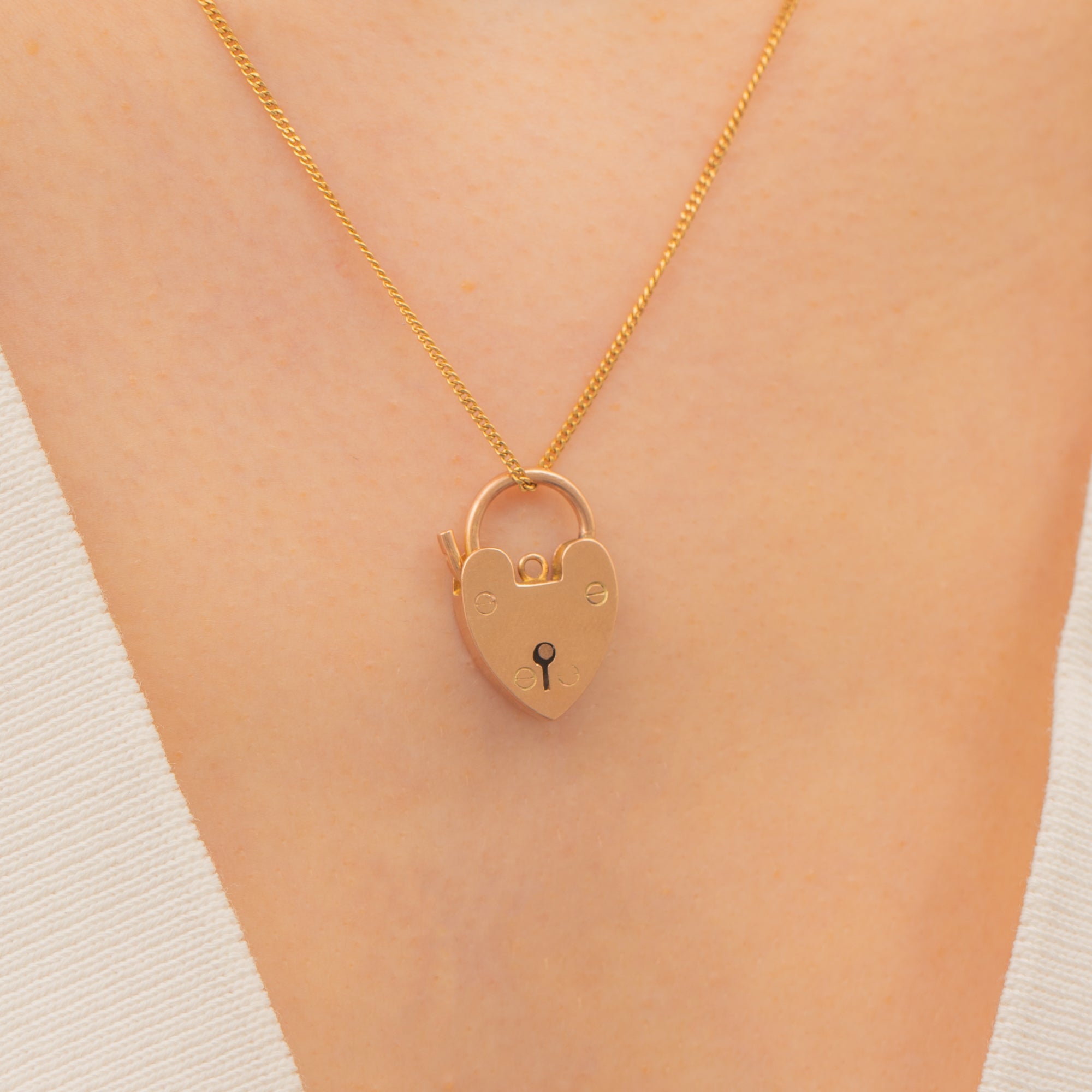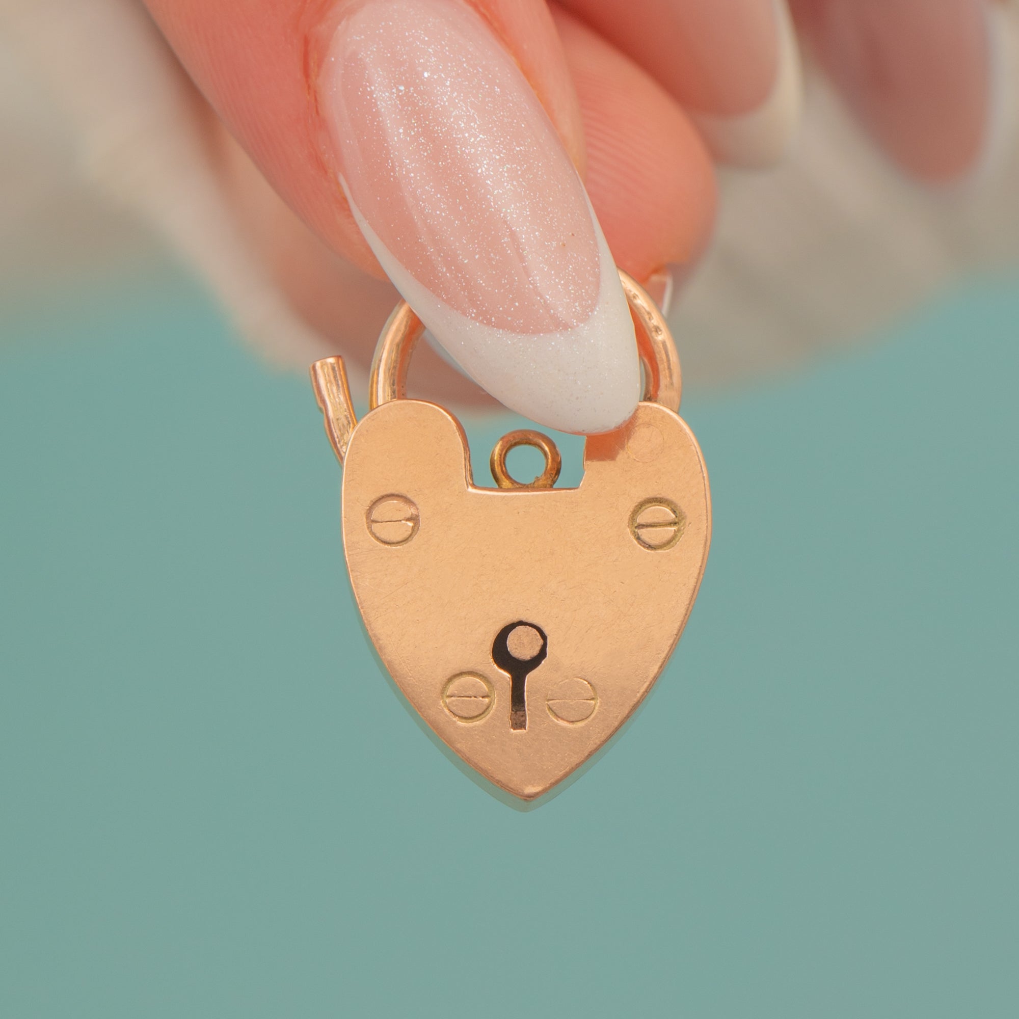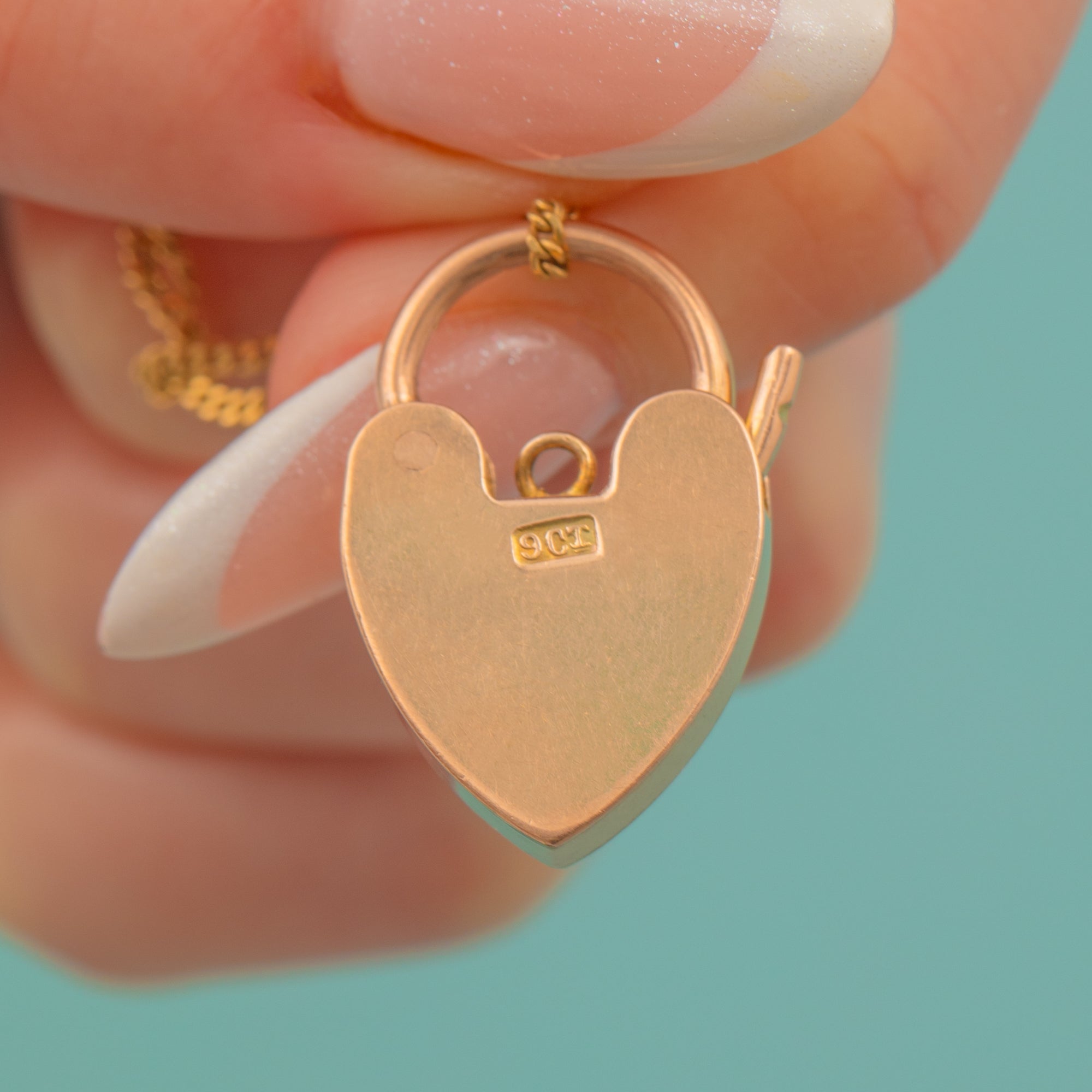 VERY GOOD-EXCELLENT: This antique 9ct Gold heart padlock pendant is in lovely condition. The padlock is well-crafted with a functioning lever. There is some minor surface wear present which is to be expected with age. In great condition, she is a must-have piece!