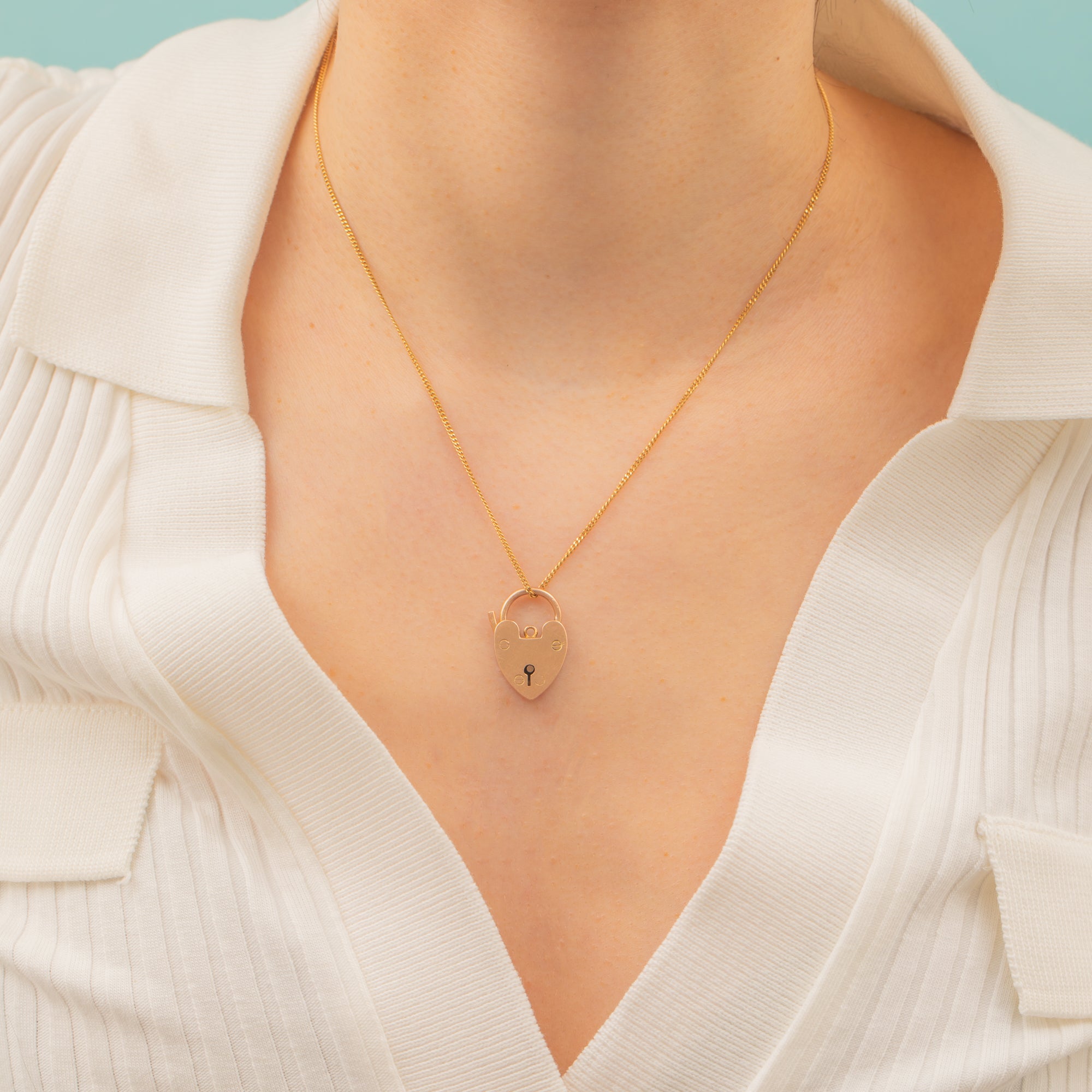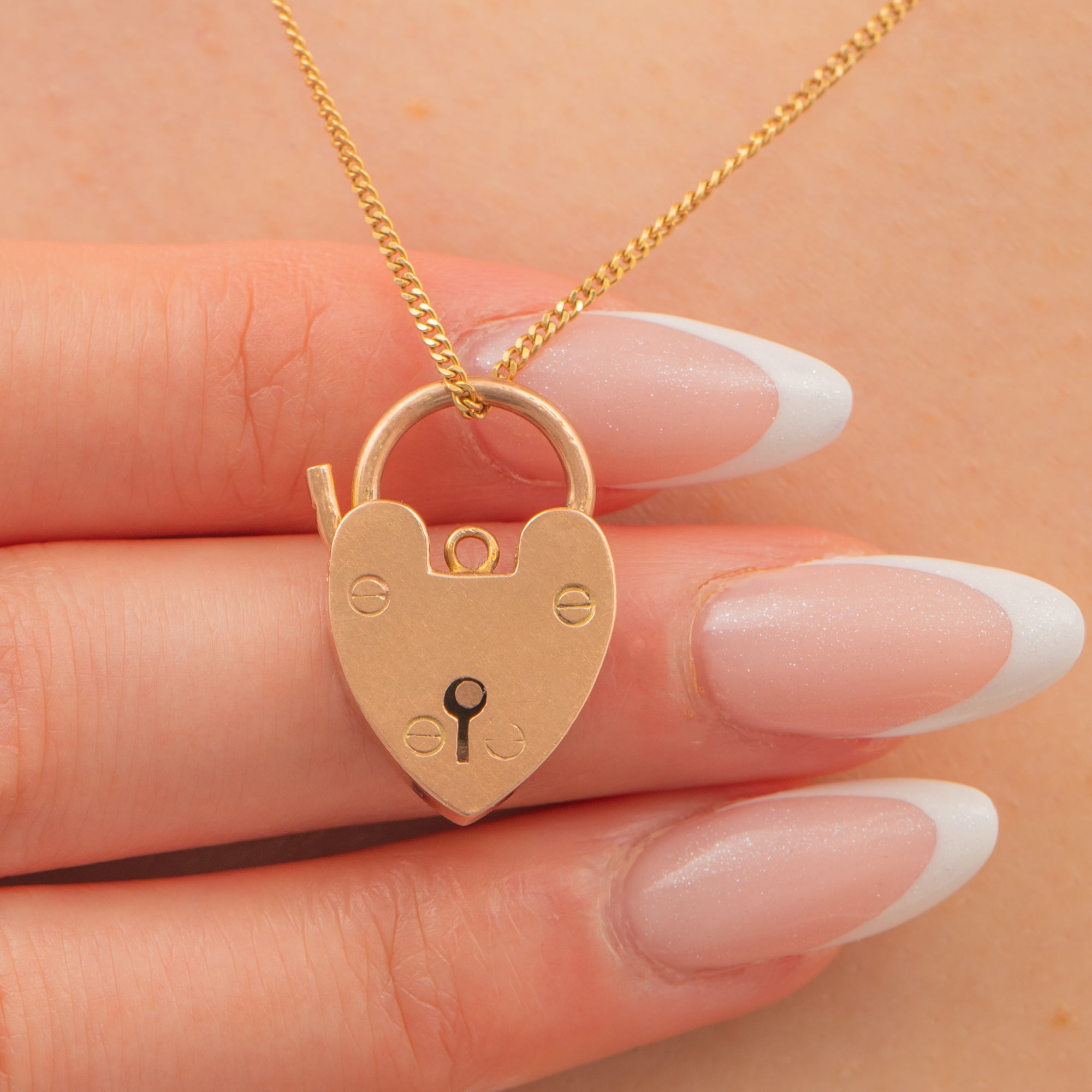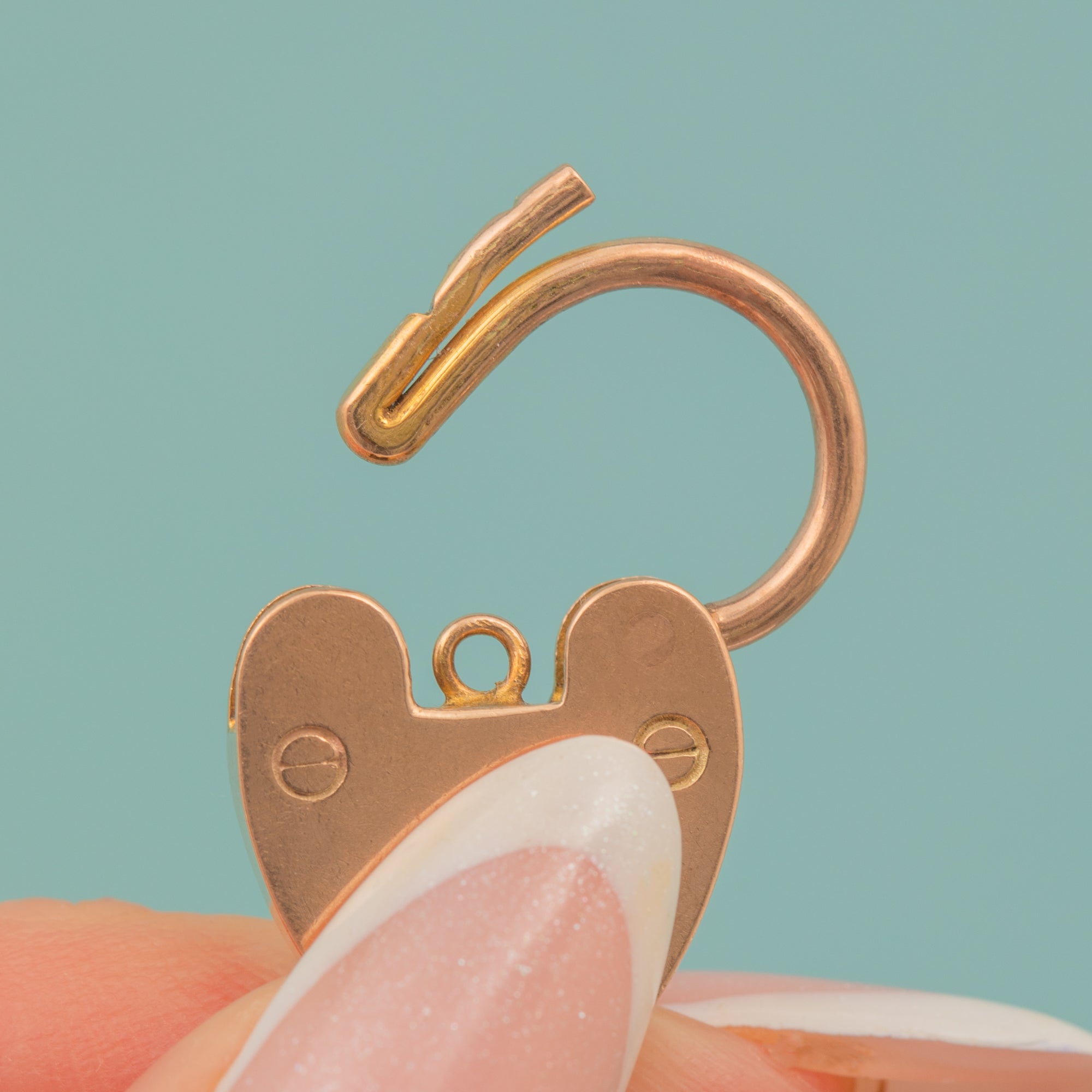 VERY GOOD-EXCELLENT: This antique 9ct Gold heart padlock pendant is in lovely condition. The padlock is well-crafted with a functioning lever. There is some minor surface wear present which is to be expected with age. In great condition, she is a must-have piece!