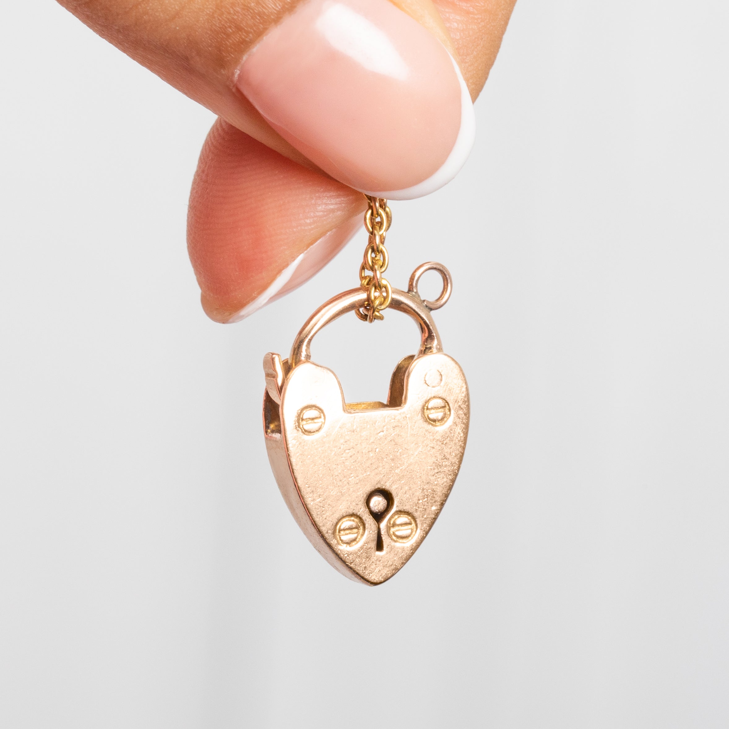 VERY GOOD: This sweet antique 9ct Gold heart padlock pendant is in very good condition. The heart form has remained intact with only minimal scratches as dings commensurate with age. The Gold is buttery and the locking mechanism is in fine working order allowing you to wear this antique pendant with confidence.