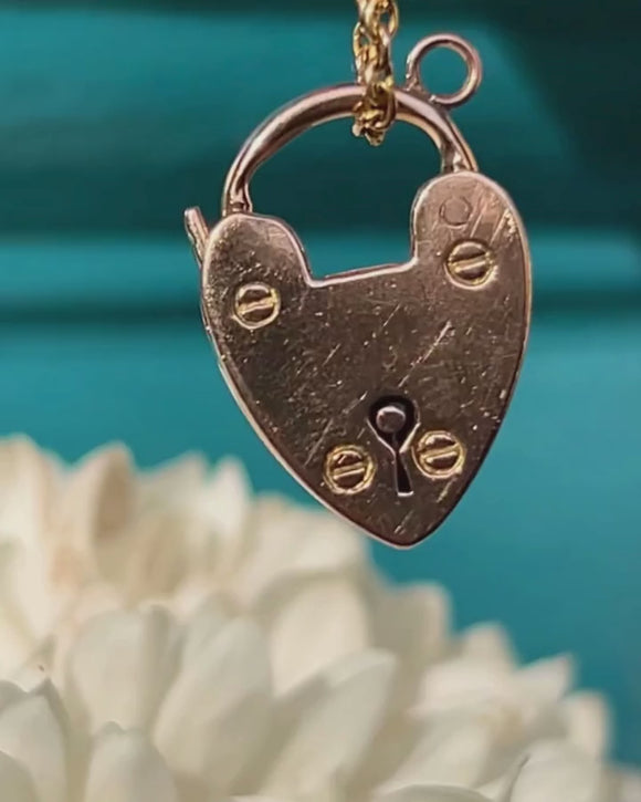 Immerse yourself in the elegance of the Victorian era with this exquisite antique 9ct Gold heart padlock pendant! The delicate heart-shaped design symbolises enduring love and commitment, while the padlock motif evokes notions of security and devotion.
