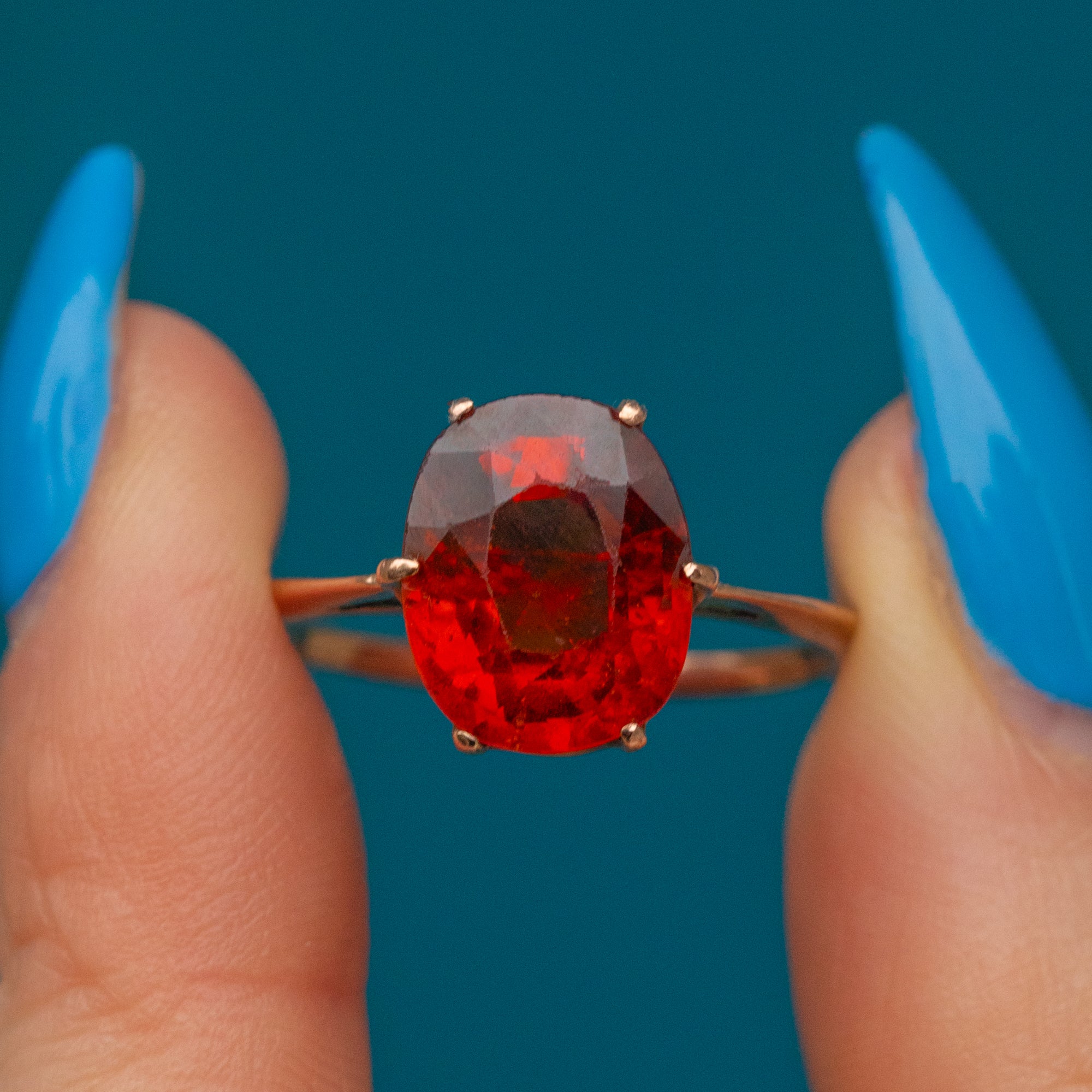Antique 9ct Gold Hessonite Garnet Solitaire Ring, 4.70ct