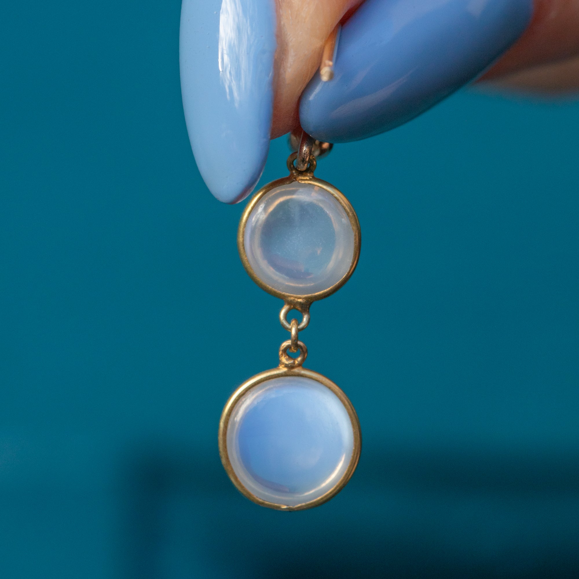 Antique 9ct Gold Moonstone Drop Earrings, 5.30ct
